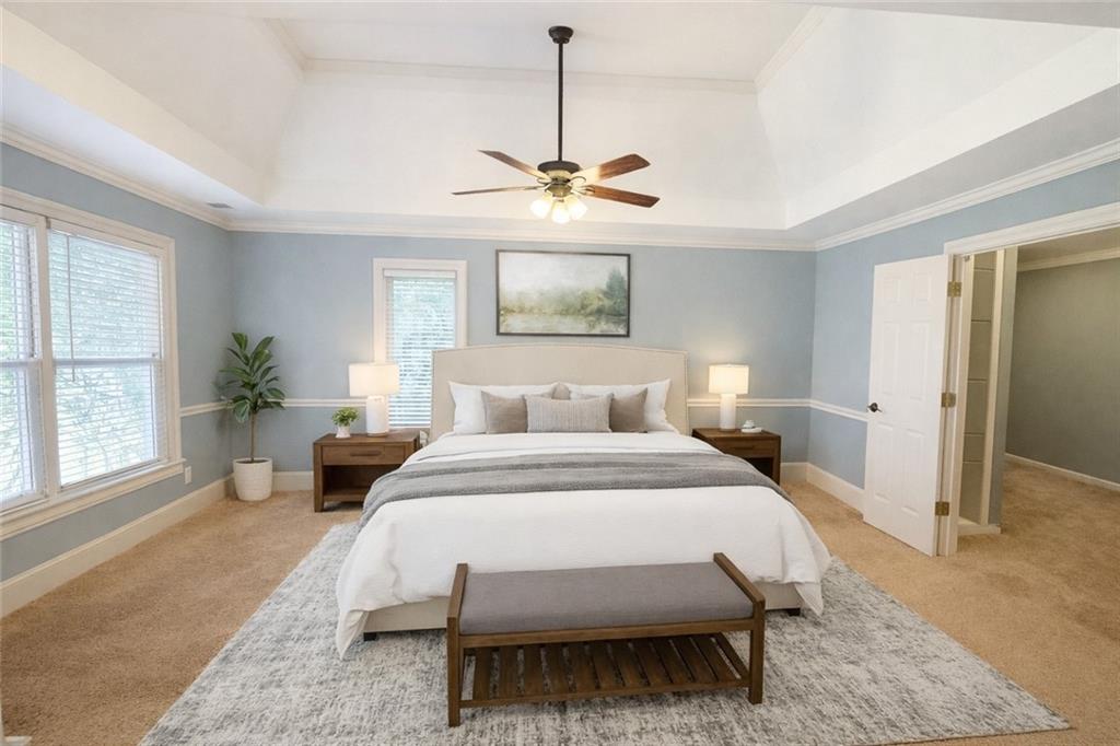 Stately 6-bedroom, 5-bath executive home built by award-winning builder John Wieland Homes — a name synonymous with luxury, premium materials, and quality craftsmanship. Situated on a desirable north-facing homesite in the prestigious Woodmont Golf & Country Club, this 3-sided brick residence offers main-level guest/bedroom with full bath, side-entry garage, and sophisticated design throughout. The oversized kitchen features granite countertops, double ovens, gas cooktop and center island that opens to the vaulted-ceiling family room anchored by a wood-burning fireplace — all hallmarks of John Wieland's signature attention to finish and flow. The fully finished terrace level includes a media room, game room, deluxe wet-bar/kitchenette, full bath and bedroom — plus a large unfinished area ready for home gym, studio or storage. Outdoor living takes center stage with expansive decking, private cabana, built-in hot tub and fire-pit, overlooking a fully fenced backyard. Coupled with the rocking-chair front porch, the home blends elegance with lifestyle. Located in one of Cherokee County's most sought-after school districts and within a vibrant club-community offering championship golf, lighted tennis courts, resort-style pool with water slide and country-club amenities. More than a home — it's a John Wieland home crafted for the luxury lifestyle you deserve.