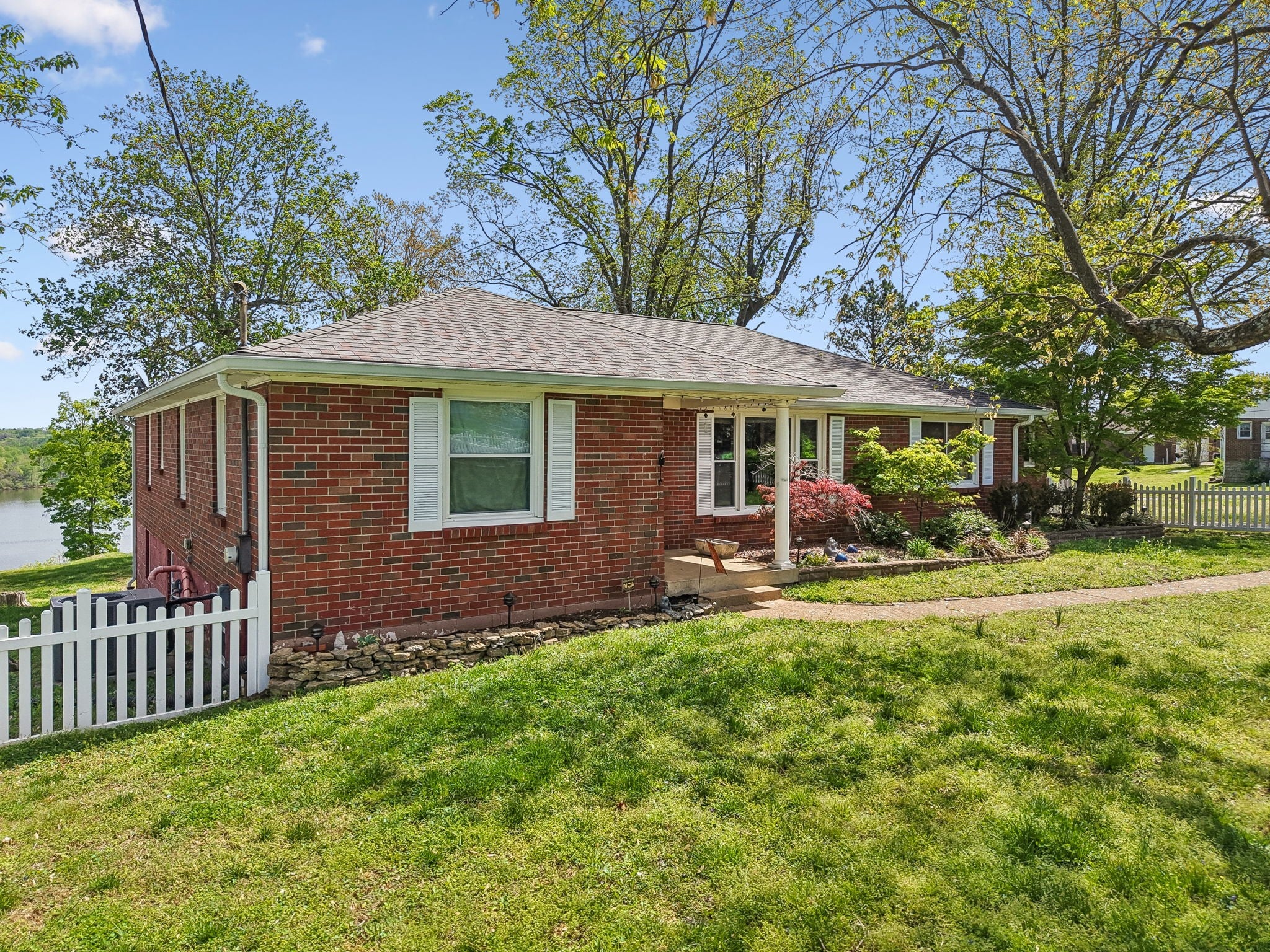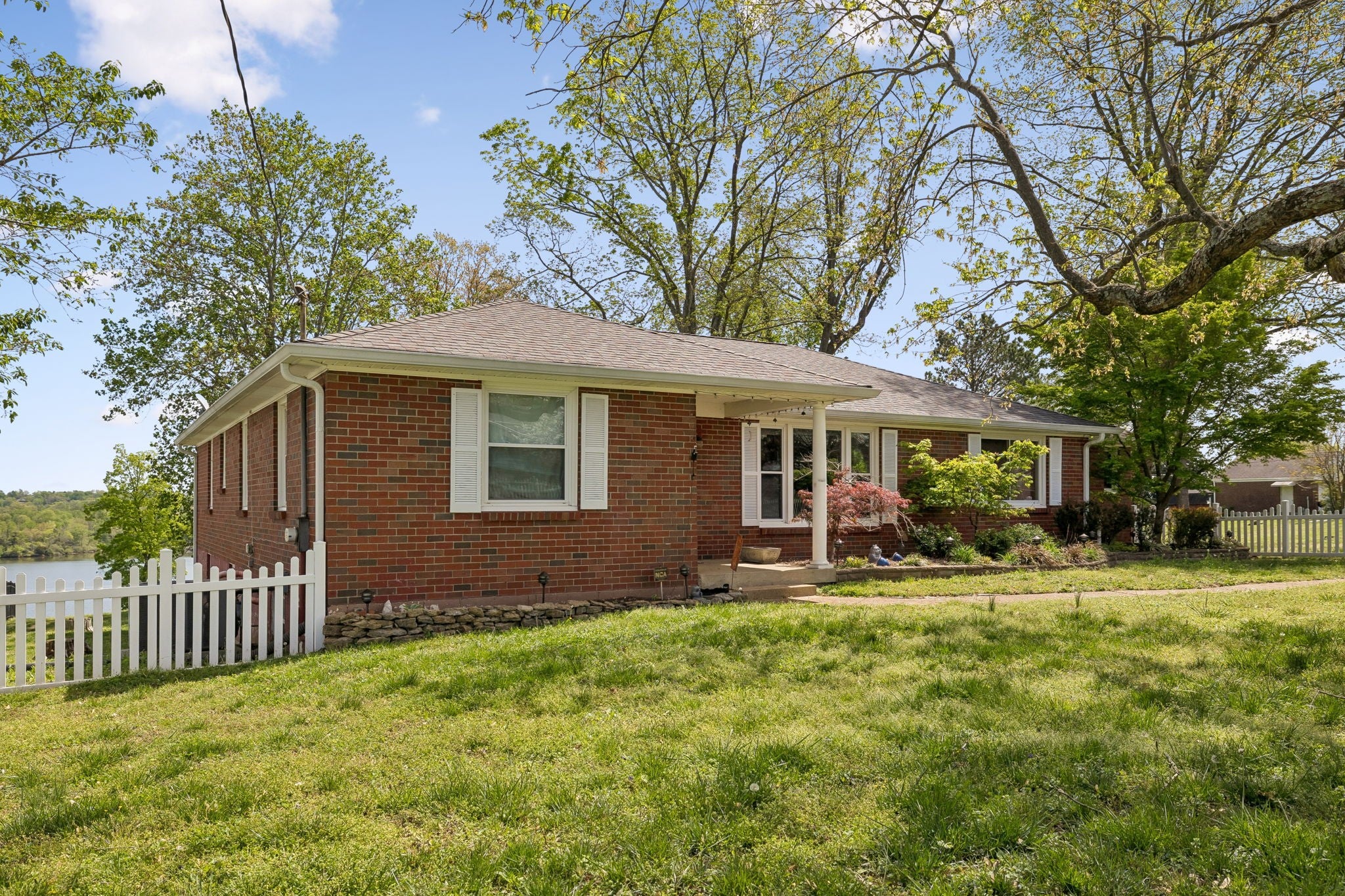 STUNNING OLD HICKORY LAKE VIEWS from this lovely all-brick home are truly a rare find! Enjoy clear lake views from nearly every room, creating a serene backdrop for everyday living! With over 100 feet of lake frontage, the backyard offers the opportunity to add the dock of your choice and access your boat directly from your own property. Situated on a spacious 1.12-acre lot in a charming and quiet neighborhood with more than 100 feet of road frontage, the property is zoned to allow an additional dwelling if desiredoffering excellent flexibility and future potential. The home has been solidly built and thoughtfully maintained, featuring a newer roof (less than 10 years old), replacement windows, newer stainless-steel appliances and an updated kitchen with solid wood cabinets and granite counter tops. The walk-out basement is dry and partially finished, already wired and plumbed for a full bath, kitchen, and living space ideal for expansion, guests, or an in-law suite, . A generous garage provides ample space for a boat and/or multiple vehicles. This exceptional property combines breathtaking lake views, privacy, and versatility in a truly special setting with NO HOA, and did I mention the LAKE VIEWS!! Seller will offer concessions for closing costs and/or a rate buy-down as well as negotiations to finish the basement and to upgrade the back deck. This home is only 20 minutes from Nashville and 15 minutes from the Nashville Airport. Experience the ultimate in lakeside living on the serene shores of Old Hickory Lake. This lake house is the perfect getaway for families, friends, or anyone looking to unwind in a lakeside paradise!