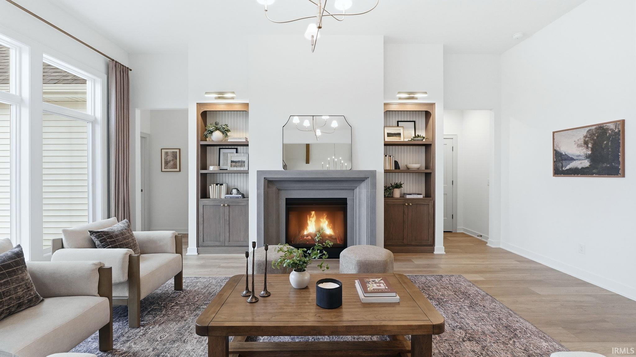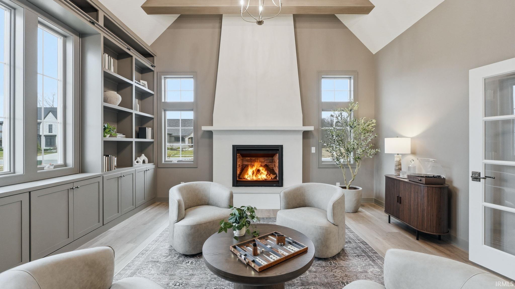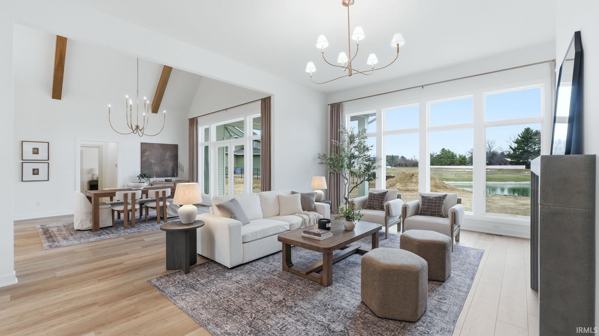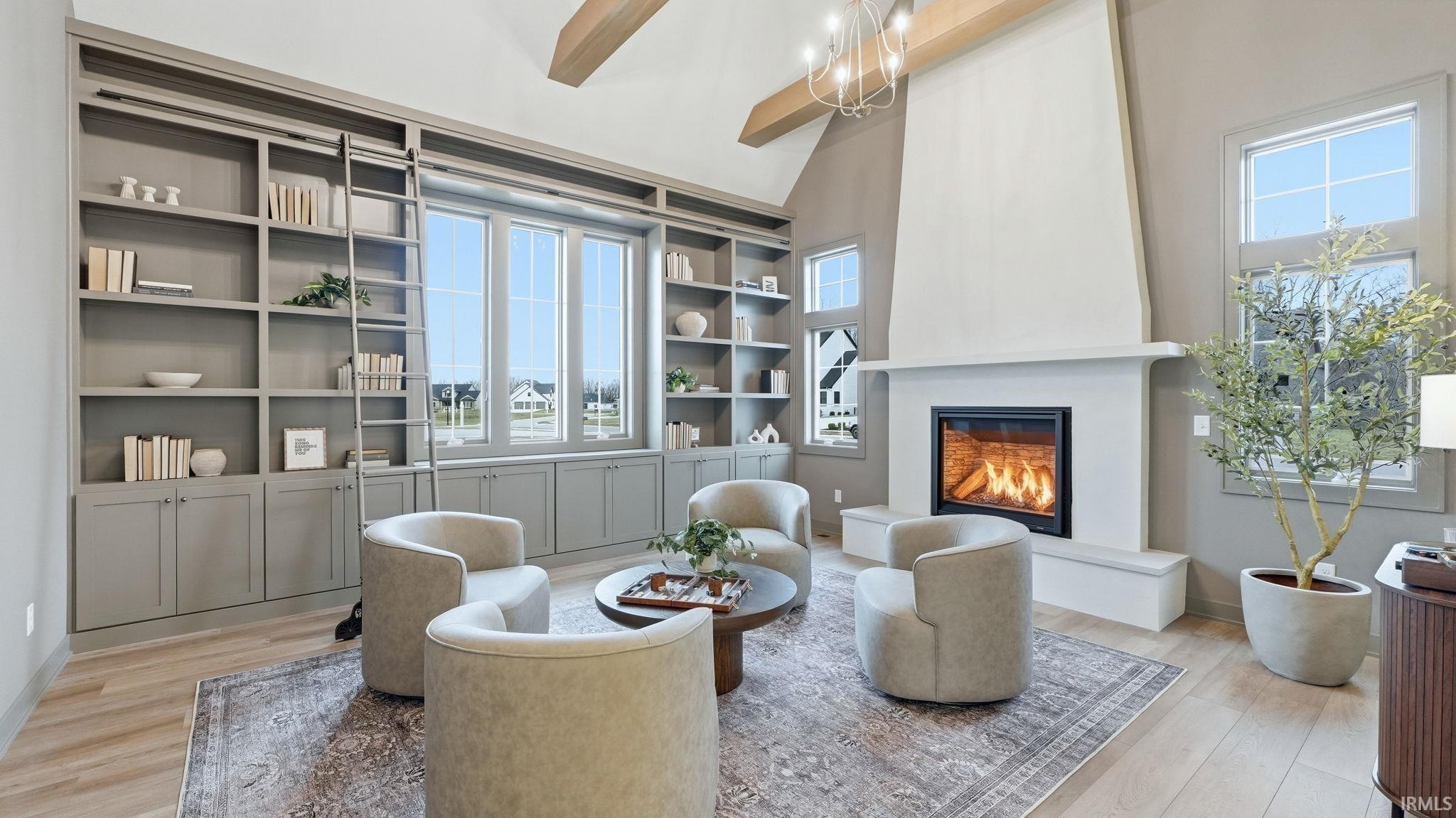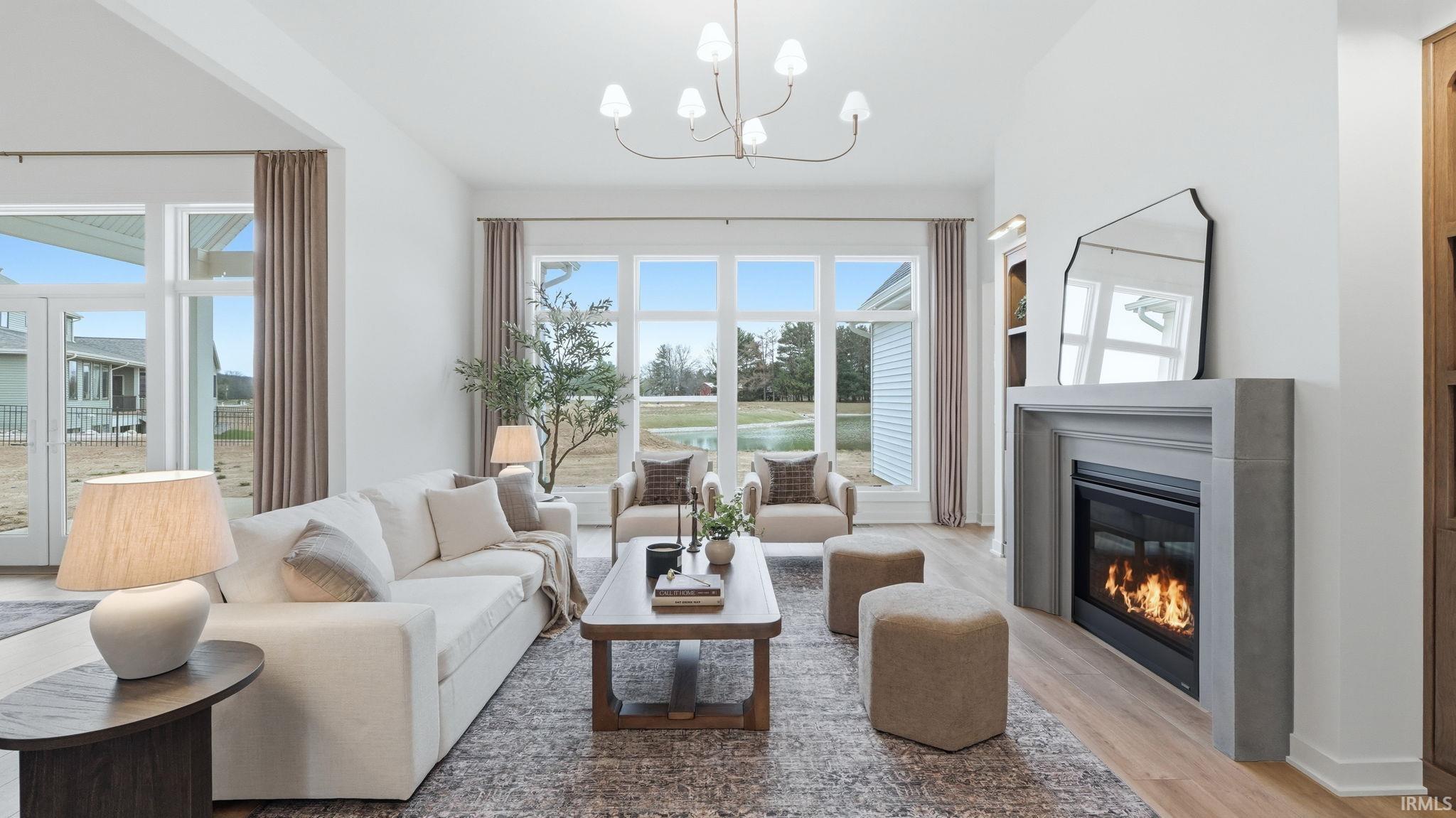 OPEN HOUSE - Sunday from 2 to 4! Introducing The Charlotte, a thoughtfully designed ranch by Olive Oak Custom Homes, offering effortless luxury and everyday ease in the premier Preserves of the Quarry. A formal foyer welcomes you with abundant natural light, immediately setting the tone for a home defined by warmth, intention, and refined craftsmanship. The living room serves as an elegant gathering space, centered around a natural gas fireplace with a cast molded mantle, inset stained bookcases, and accent lighting‹”perfectly suited for both quiet evenings and entertaining. At the heart of the home, the kitchen and dining area blend form and function beautifully. Quartz countertops, a premium appliance package, and a chef's walk-in pantry elevate everyday living, while a vaulted ceiling with stained wood beams and a striking brick-clad back wall create architectural interest. The kitchen flows seamlessly into the dining space and out through double glass doors to a private covered patio featuring pond views, columns, and a decorative gable‹”an ideal setting for outdoor living. The nearby den offers a cozy yet refined retreat with vaulted beamed ceilings, a second natural gas fireplace, wall-to-wall built-in bookshelves, and a rolling library ladder. The primary suite is a true sanctuary with vaulted ceilings and a spa-inspired ensuite featuring a spacious tiled walk-in shower with dual benches, individual temperature controls, inset storage, and a transom window for natural light and privacy. A double-sink vanity provides generous storage, while the custom three-tier walk-in closet connects directly to the laundry room for added convenience. Secondary bedrooms are equally well designed, including an oversized bedroom with a built-in desk and open shelving. A shared full bath with double sinks and a private shower and commode area ensures efficiency. Completing the home is a split side-load three-car garage with epoxy floors and additional workshop or storage space. With over 2,700 square feet, 3 bedrooms, and 2.5 baths, The Charlotte delivers refined single-level living in northwest Fort Wayne, within award-winning Northwest Allen County Schools and close to shopping, dining, and everyday conveniences.