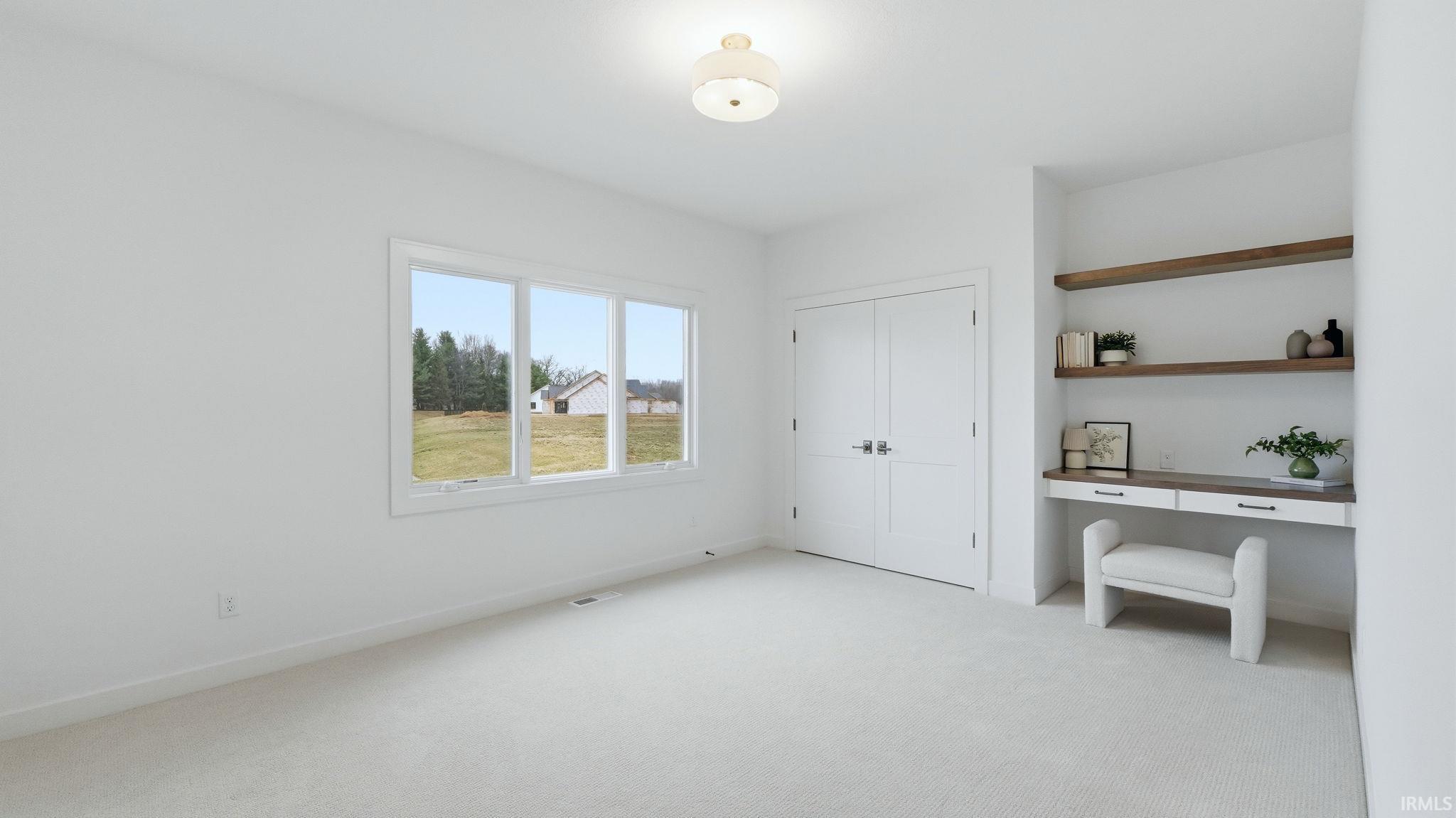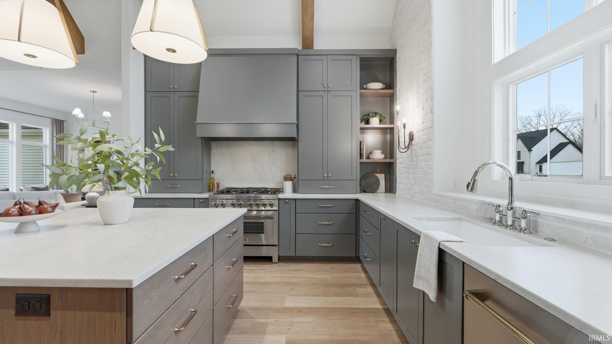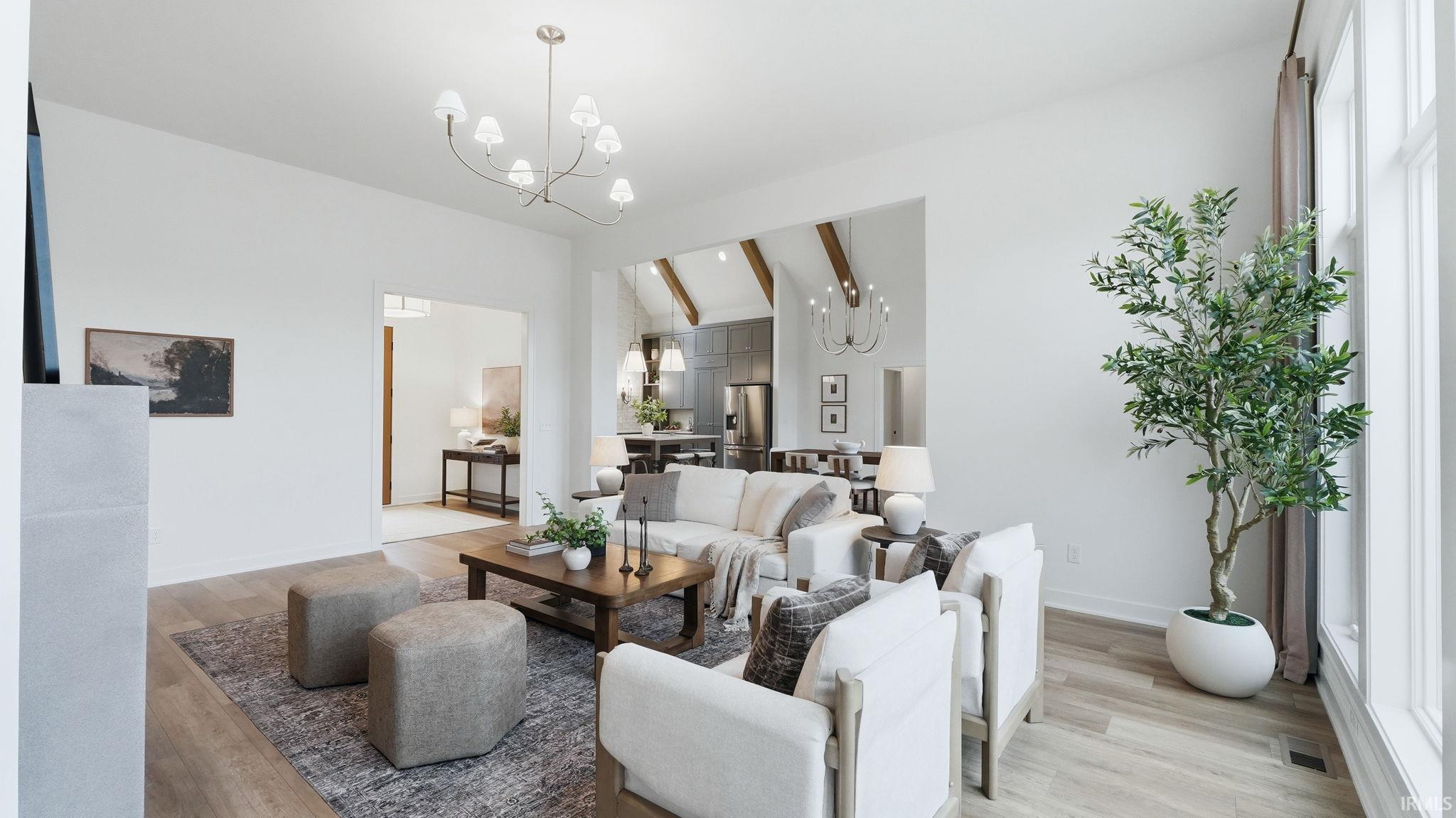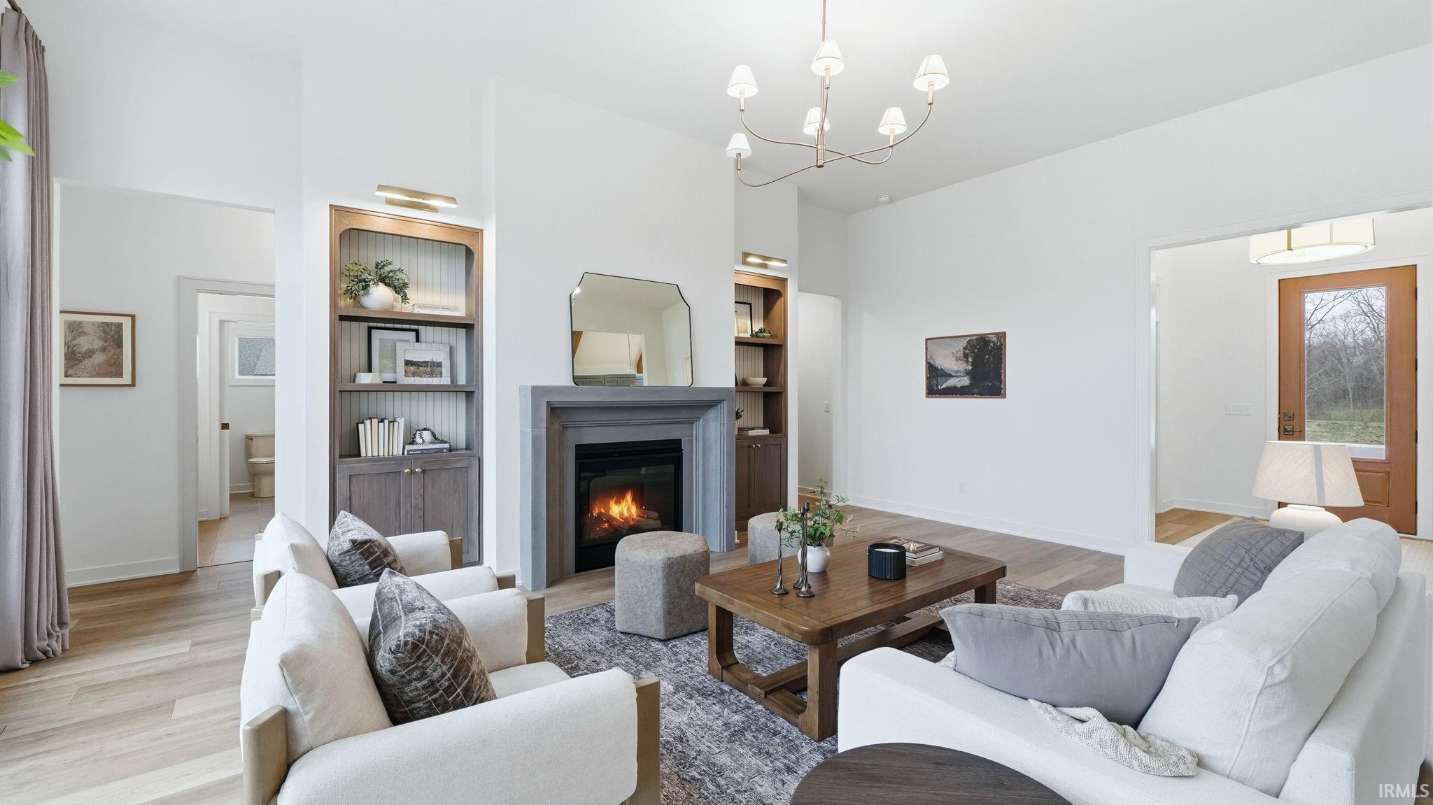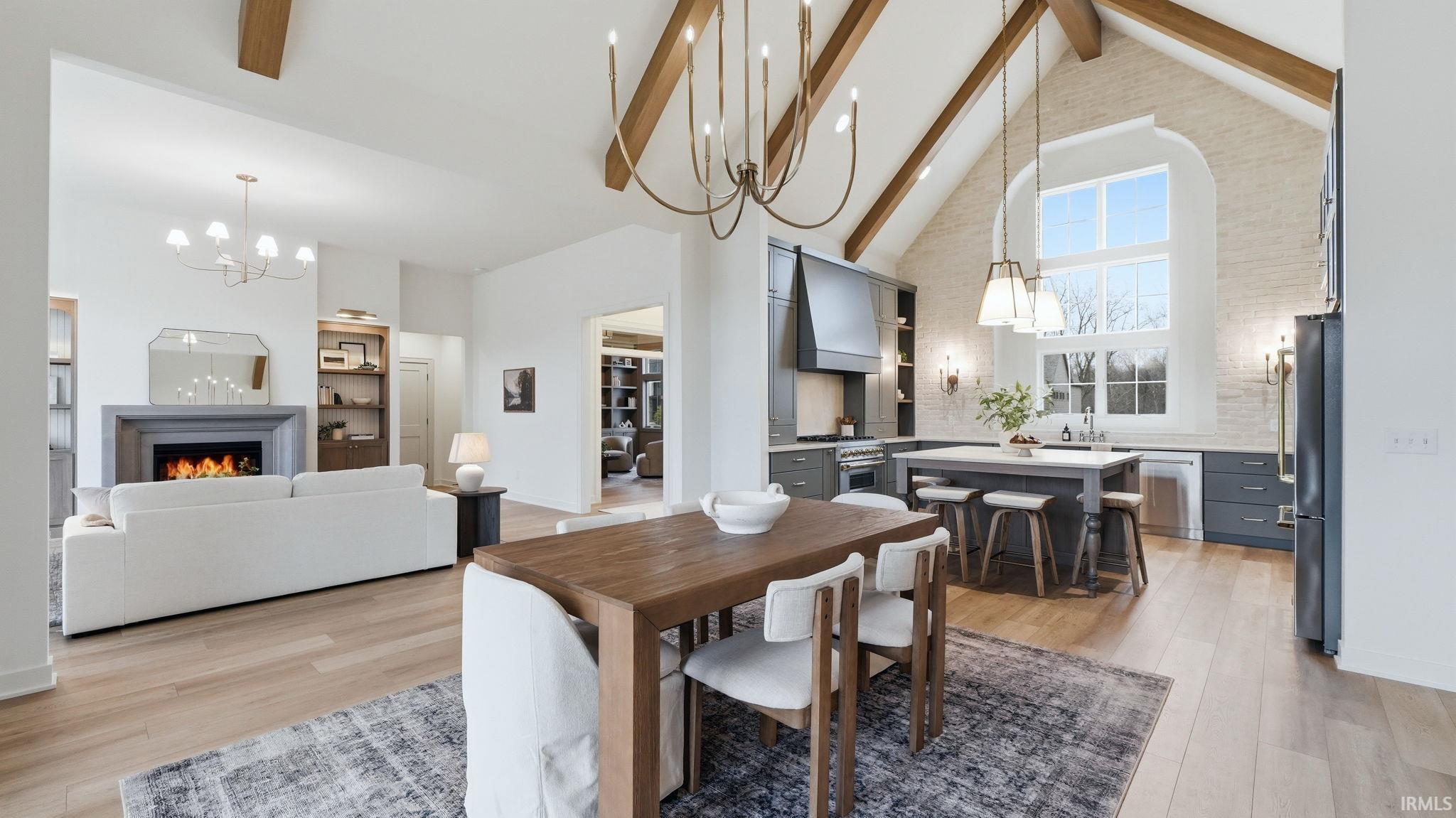 OPEN HOUSE - Sunday from 2 to 4! Introducing The Charlotte, a thoughtfully designed ranch by Olive Oak Custom Homes, offering effortless luxury and everyday ease in the premier Preserves of the Quarry. A formal foyer welcomes you with abundant natural light, immediately setting the tone for a home defined by warmth, intention, and refined craftsmanship. The living room serves as an elegant gathering space, centered around a natural gas fireplace with a cast molded mantle, inset stained bookcases, and accent lighting‹”perfectly suited for both quiet evenings and entertaining. At the heart of the home, the kitchen and dining area blend form and function beautifully. Quartz countertops, a premium appliance package, and a chef's walk-in pantry elevate everyday living, while a vaulted ceiling with stained wood beams and a striking brick-clad back wall create architectural interest. The kitchen flows seamlessly into the dining space and out through double glass doors to a private covered patio featuring pond views, columns, and a decorative gable‹”an ideal setting for outdoor living. The nearby den offers a cozy yet refined retreat with vaulted beamed ceilings, a second natural gas fireplace, wall-to-wall built-in bookshelves, and a rolling library ladder. The primary suite is a true sanctuary with vaulted ceilings and a spa-inspired ensuite featuring a spacious tiled walk-in shower with dual benches, individual temperature controls, inset storage, and a transom window for natural light and privacy. A double-sink vanity provides generous storage, while the custom three-tier walk-in closet connects directly to the laundry room for added convenience. Secondary bedrooms are equally well designed, including an oversized bedroom with a built-in desk and open shelving. A shared full bath with double sinks and a private shower and commode area ensures efficiency. Completing the home is a split side-load three-car garage with epoxy floors and additional workshop or storage space. With over 2,700 square feet, 3 bedrooms, and 2.5 baths, The Charlotte delivers refined single-level living in northwest Fort Wayne, within award-winning Northwest Allen County Schools and close to shopping, dining, and everyday conveniences.