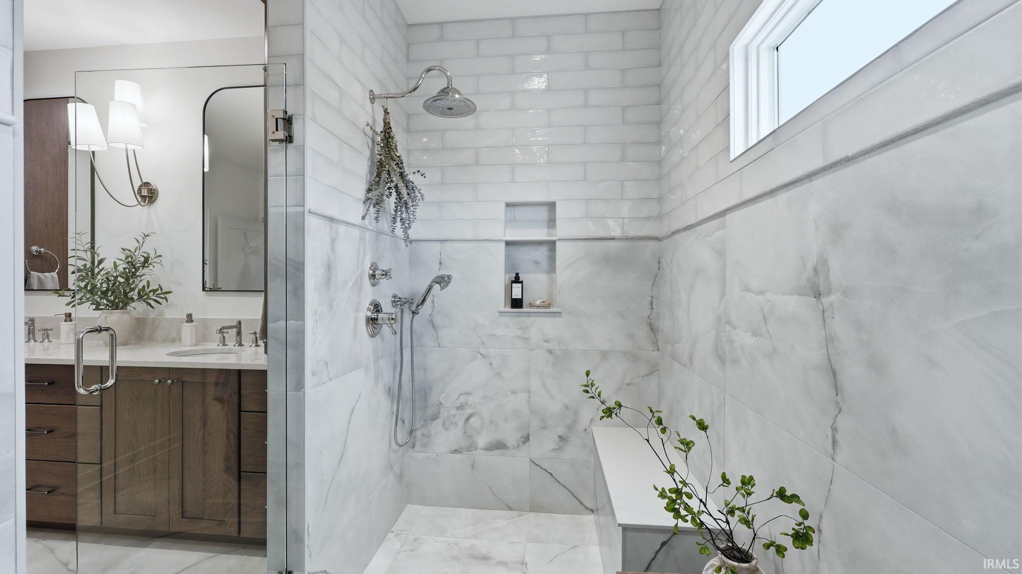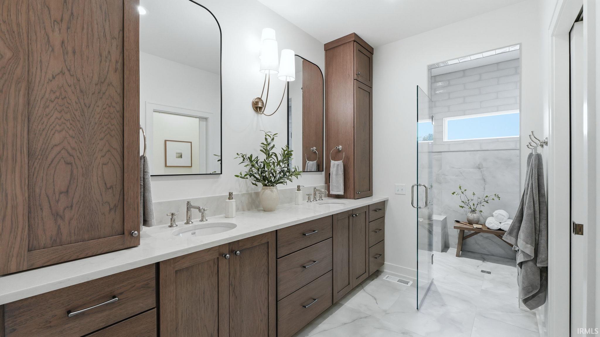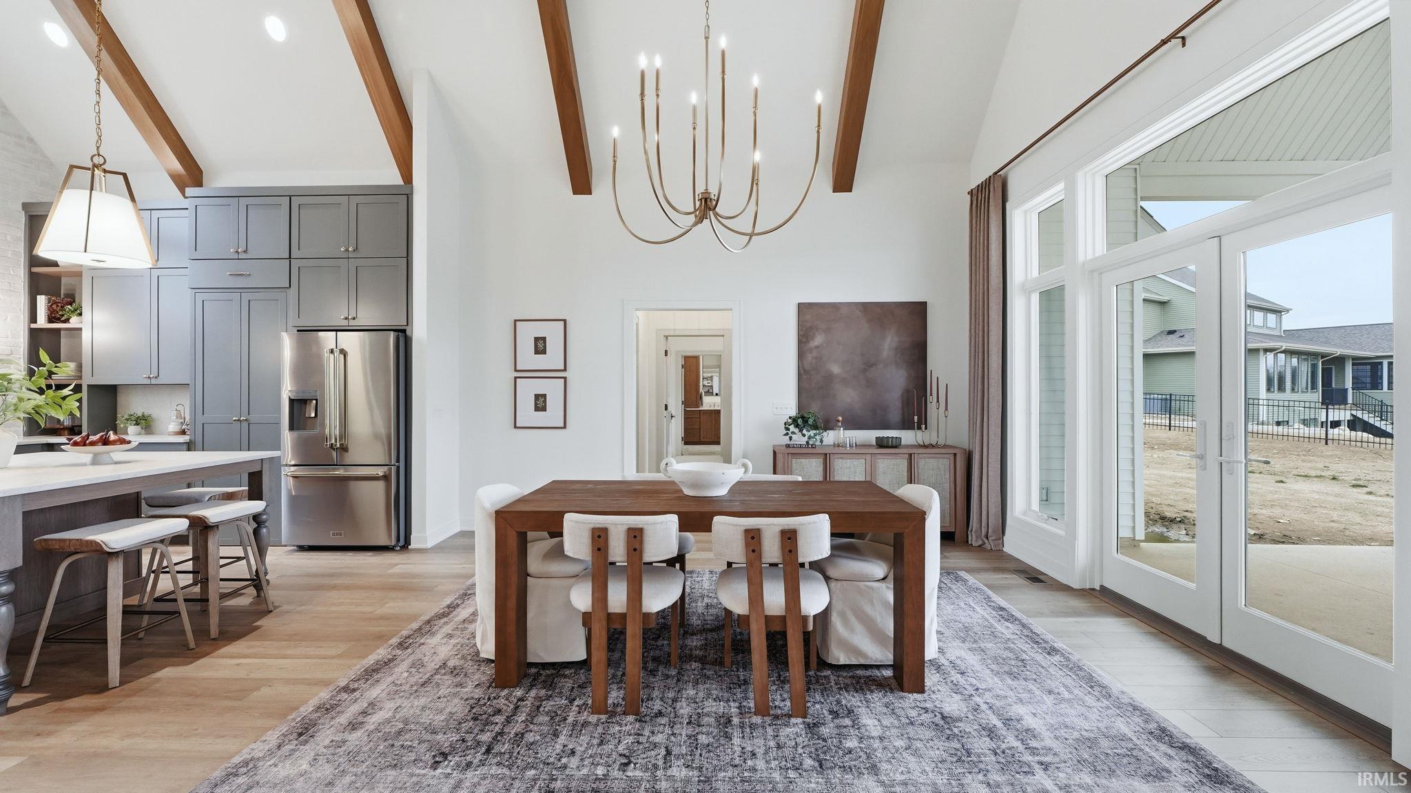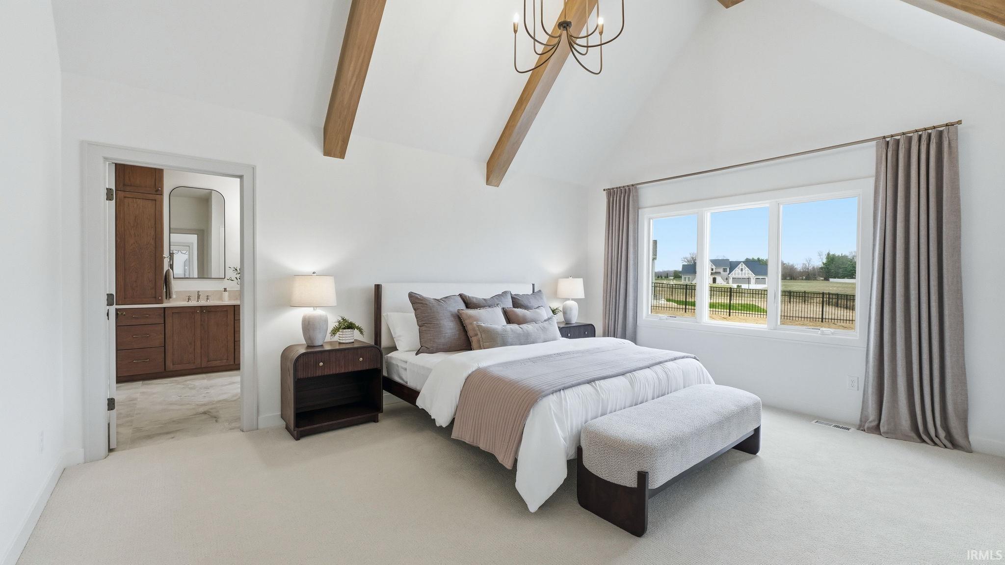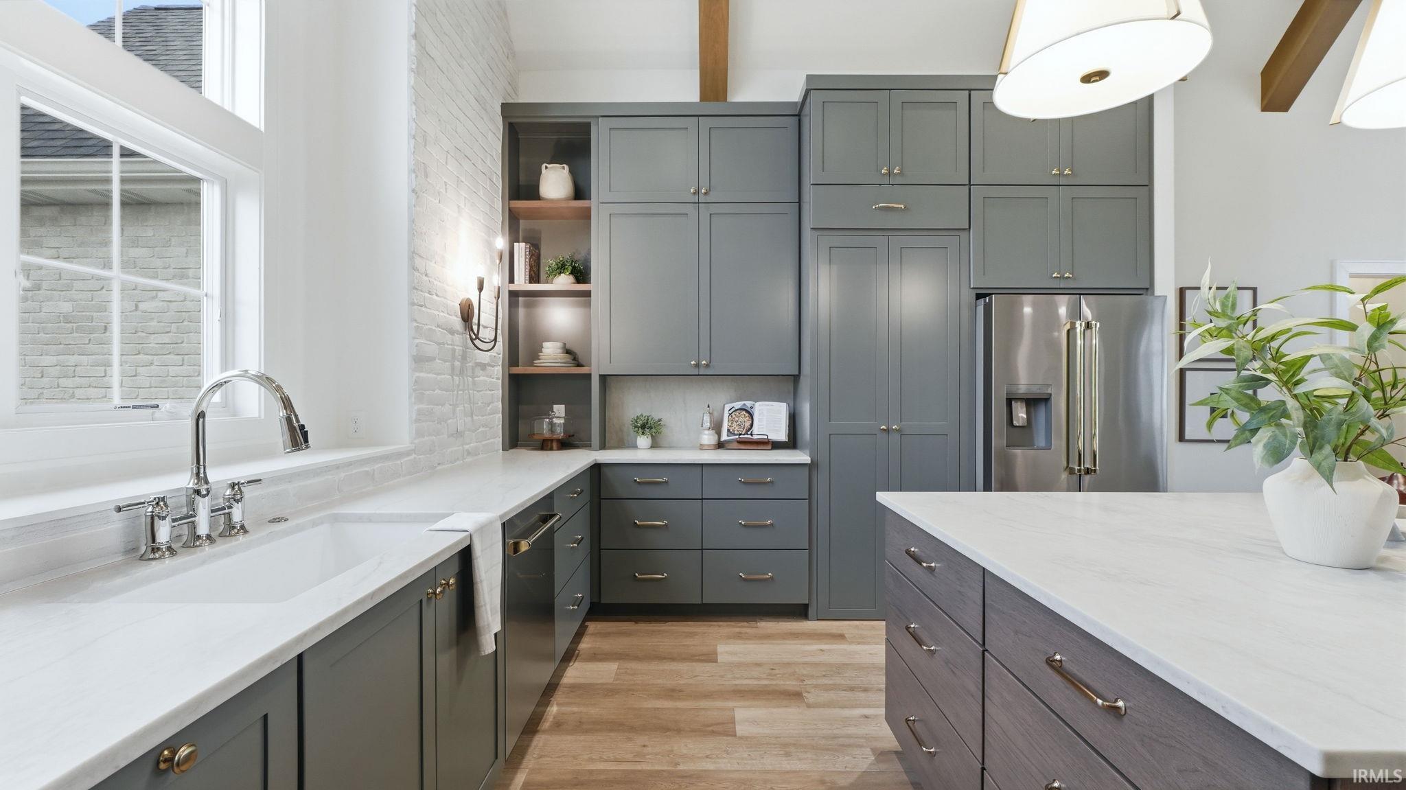 OPEN HOUSE - Sunday from 2 to 4! Introducing The Charlotte, a thoughtfully designed ranch by Olive Oak Custom Homes, offering effortless luxury and everyday ease in the premier Preserves of the Quarry. A formal foyer welcomes you with abundant natural light, immediately setting the tone for a home defined by warmth, intention, and refined craftsmanship. The living room serves as an elegant gathering space, centered around a natural gas fireplace with a cast molded mantle, inset stained bookcases, and accent lighting‹”perfectly suited for both quiet evenings and entertaining. At the heart of the home, the kitchen and dining area blend form and function beautifully. Quartz countertops, a premium appliance package, and a chef's walk-in pantry elevate everyday living, while a vaulted ceiling with stained wood beams and a striking brick-clad back wall create architectural interest. The kitchen flows seamlessly into the dining space and out through double glass doors to a private covered patio featuring pond views, columns, and a decorative gable‹”an ideal setting for outdoor living. The nearby den offers a cozy yet refined retreat with vaulted beamed ceilings, a second natural gas fireplace, wall-to-wall built-in bookshelves, and a rolling library ladder. The primary suite is a true sanctuary with vaulted ceilings and a spa-inspired ensuite featuring a spacious tiled walk-in shower with dual benches, individual temperature controls, inset storage, and a transom window for natural light and privacy. A double-sink vanity provides generous storage, while the custom three-tier walk-in closet connects directly to the laundry room for added convenience. Secondary bedrooms are equally well designed, including an oversized bedroom with a built-in desk and open shelving. A shared full bath with double sinks and a private shower and commode area ensures efficiency. Completing the home is a split side-load three-car garage with epoxy floors and additional workshop or storage space. With over 2,700 square feet, 3 bedrooms, and 2.5 baths, The Charlotte delivers refined single-level living in northwest Fort Wayne, within award-winning Northwest Allen County Schools and close to shopping, dining, and everyday conveniences.
