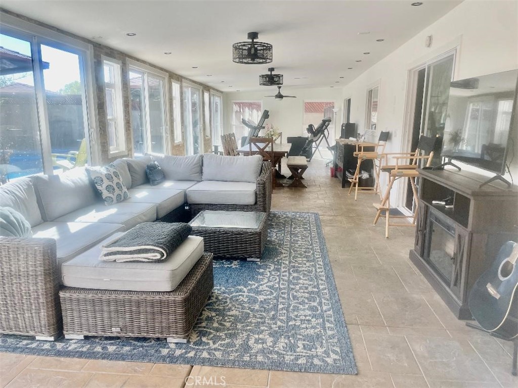 Entertainers Delight! Beautifully Upgraded Ontario Home with Pool & RV Parking-Move-In Ready! Welcome to this stunning 4-bedroom, 3-bathroom home located in one of Ontario's most desirable neighborhoods. This property has been extensively upgraded for comfort, style, and privacy. Recent improvement interior painting in all bathrooms, kitchen, guest room, formal dining room, and family room. The downstairs features brand-new flooring throughout and modern light fixtures for a fresh, contemporary feel. there is also a downstairs guest bedroom along with a handicap access bathroom for ours senior family members. Recently installed newer HVAC system with a new thermostat! The entertainment room overlooking the pool is perfect for family gatherings and special occasions. The private backyard is a true oasis retreat with a sparkling pool, BBQ area outside lighting and shade awnings, covered seating areas, with fruit trees mango, lemon and lime, did I mention the avocado tree! Also, there is an outdoor storage room/dressing area and plenty of room for entertaining. The front yard has been enclosed with wrought iron fencing for safety, security and privacy along with walkway leading to the back yard. The garage has a permitted enclosed soundproof studio/music room for the entertainer in the family! A dedicated RV parking area offers extra convenience for travelers and toy haulers. Located just minutes from Ontario Soccer Park, Ontario International Airport, the Convention Center, Ontario Sports Complex, and a golf course. Sports fans will love knowing the Dodgers Single-A team will be relocating to Ontario this season! This home is a rare find with its thoughtful upgrades, prime location, and resort-style backyard. Pride of ownership shines throughout the home! Don't miss your chance to make it yours!