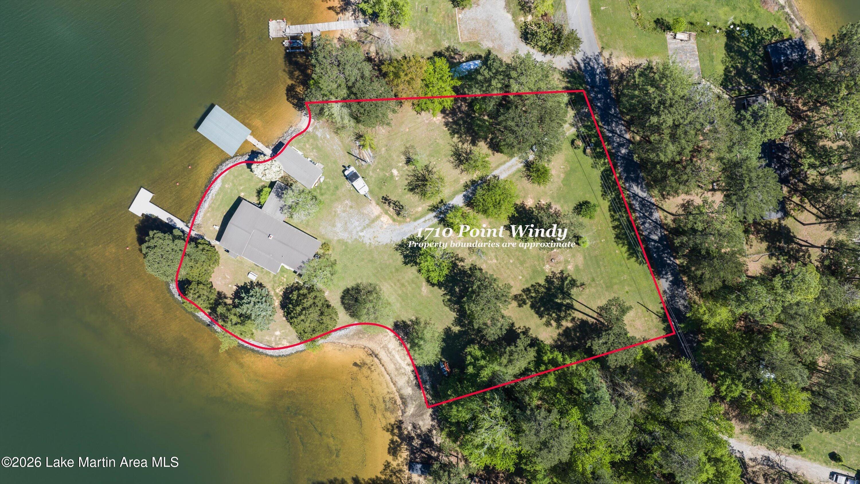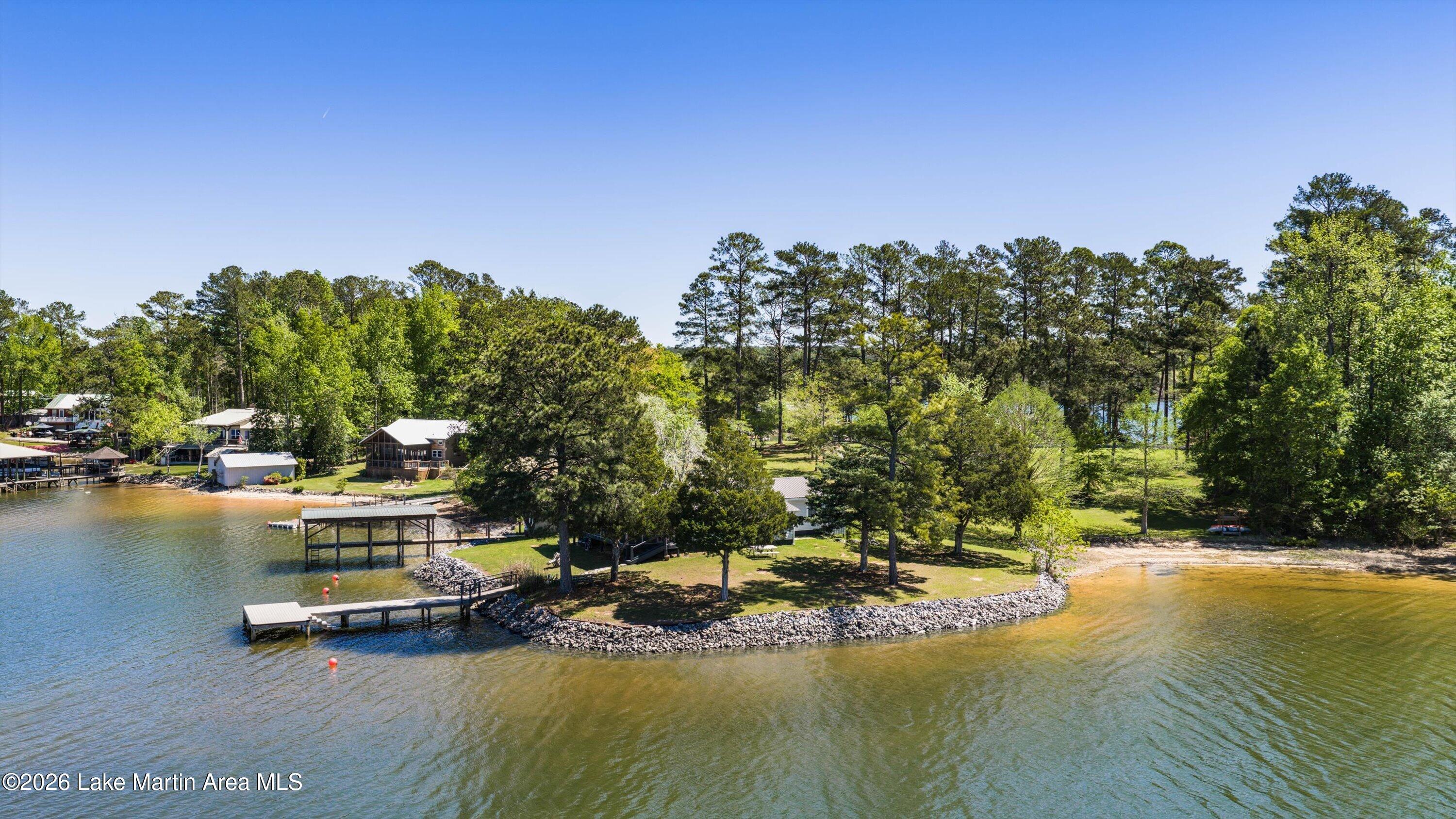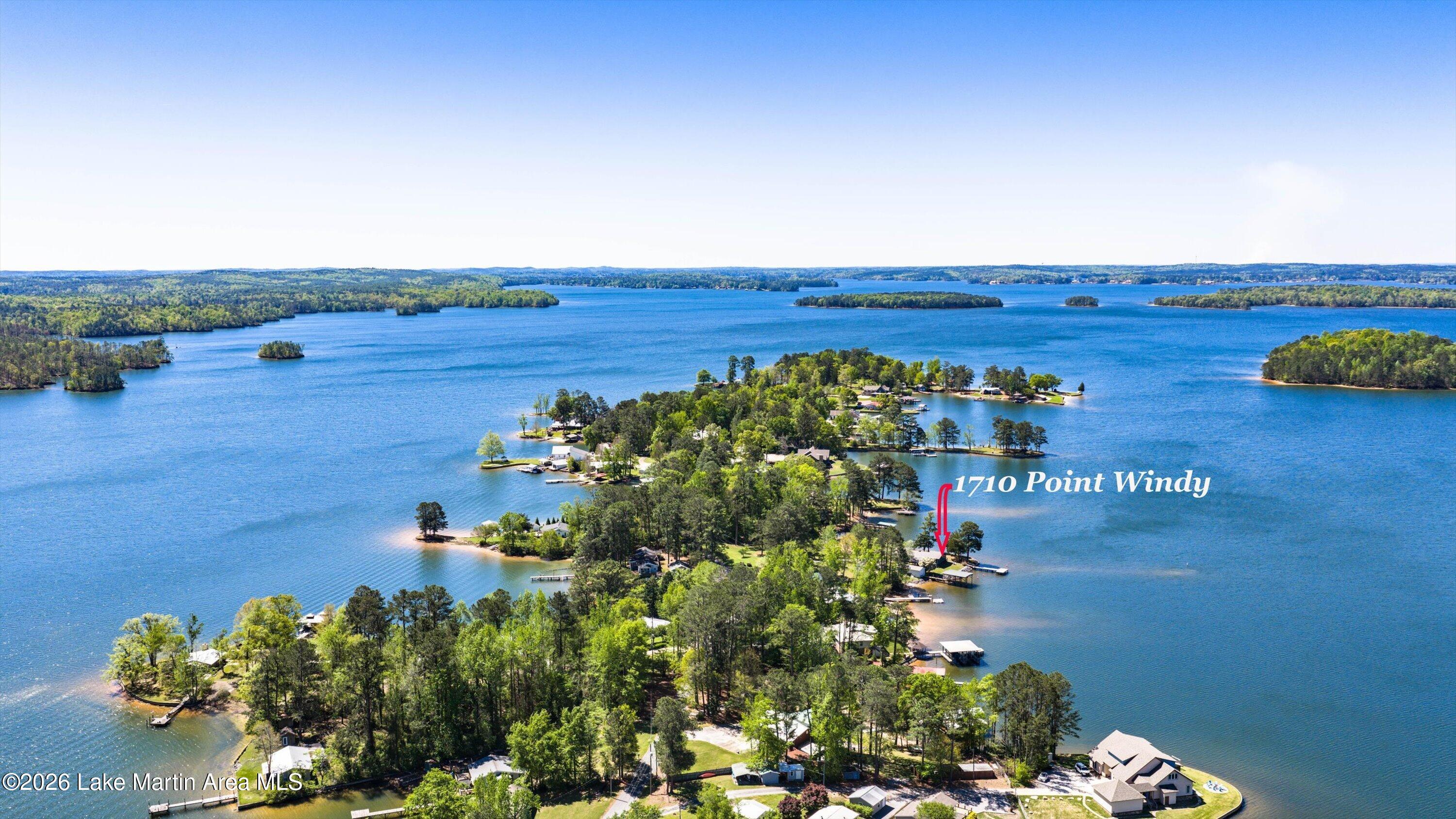 Rare LEGACY Property on POINT WINDY on private point. Peaceful & serene 1.38 /- Acres, 469 /- ft of bulkheaded waterfront--Pristine TURN KEY 3bd/2ba furnished cottage with open water views & breathtaking sunsets, wrap around screened porch, outdoor shower, wood burning original fireplace, hardwood floors throughout, covered boat slip and dock, freestanding boathouse for additional storage. With a second new composite swimming dock (Lake Martin Docks 2024), 2018 septic (pumped 2025), 2020 metal roof, HVAC ( 5 years old), gravel boat launch. Updated HVAC, water heater, electrical panel, pipes/plumbing, & septic. Close proximity to Alex City, Publix, Auburn, Boondocks Marina, Point Windy Public Boat Ramp and Peanut Point.