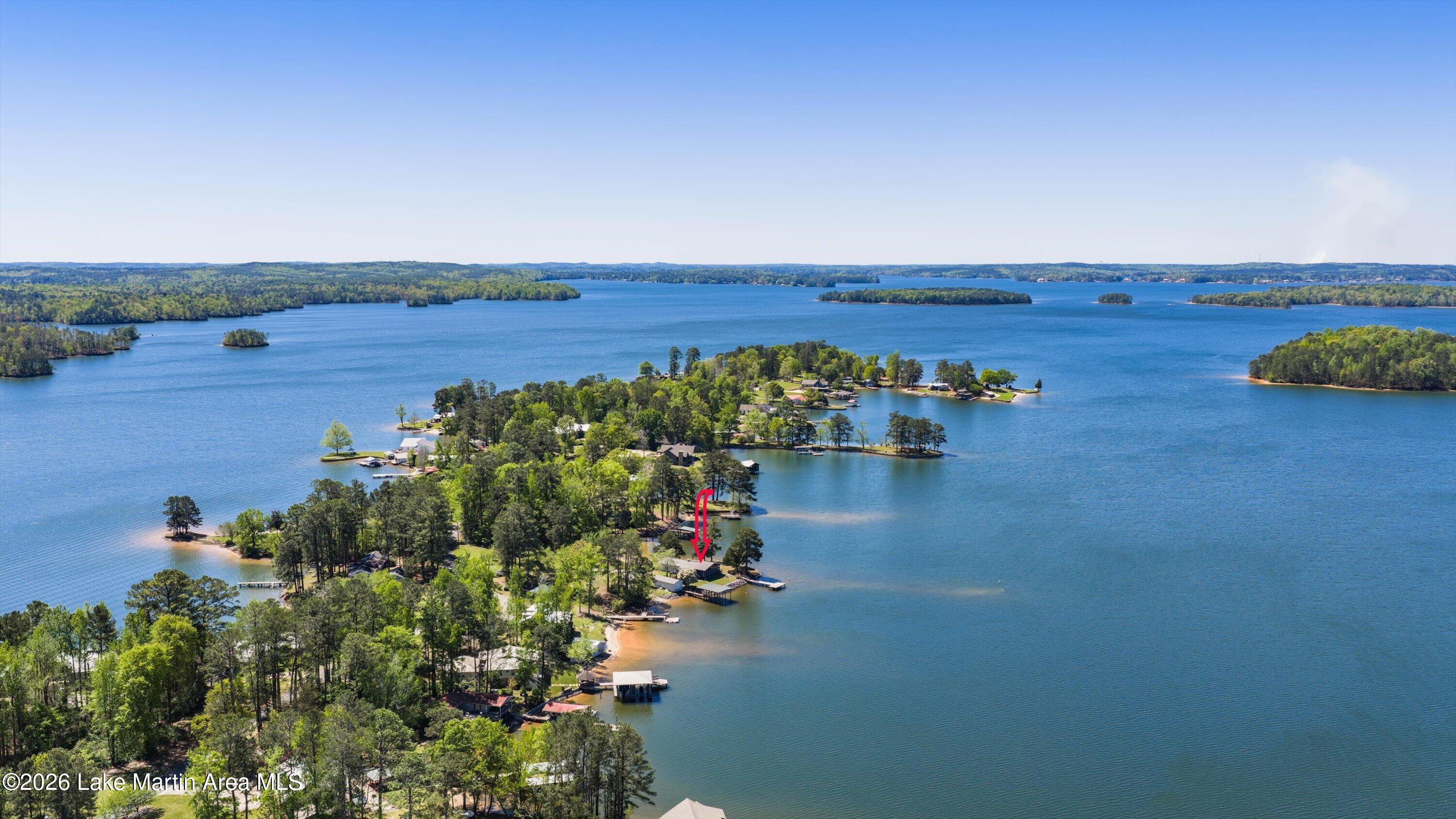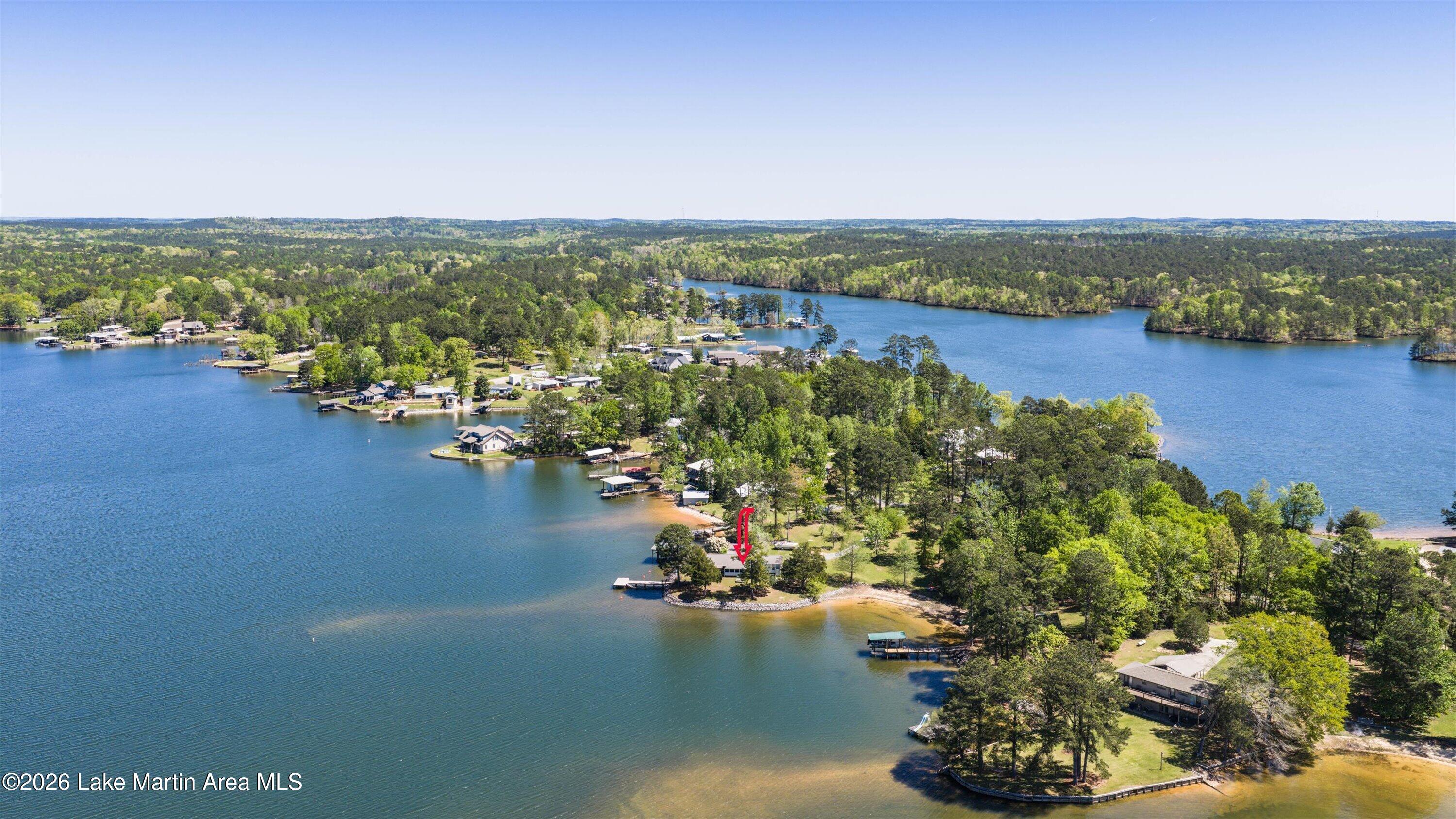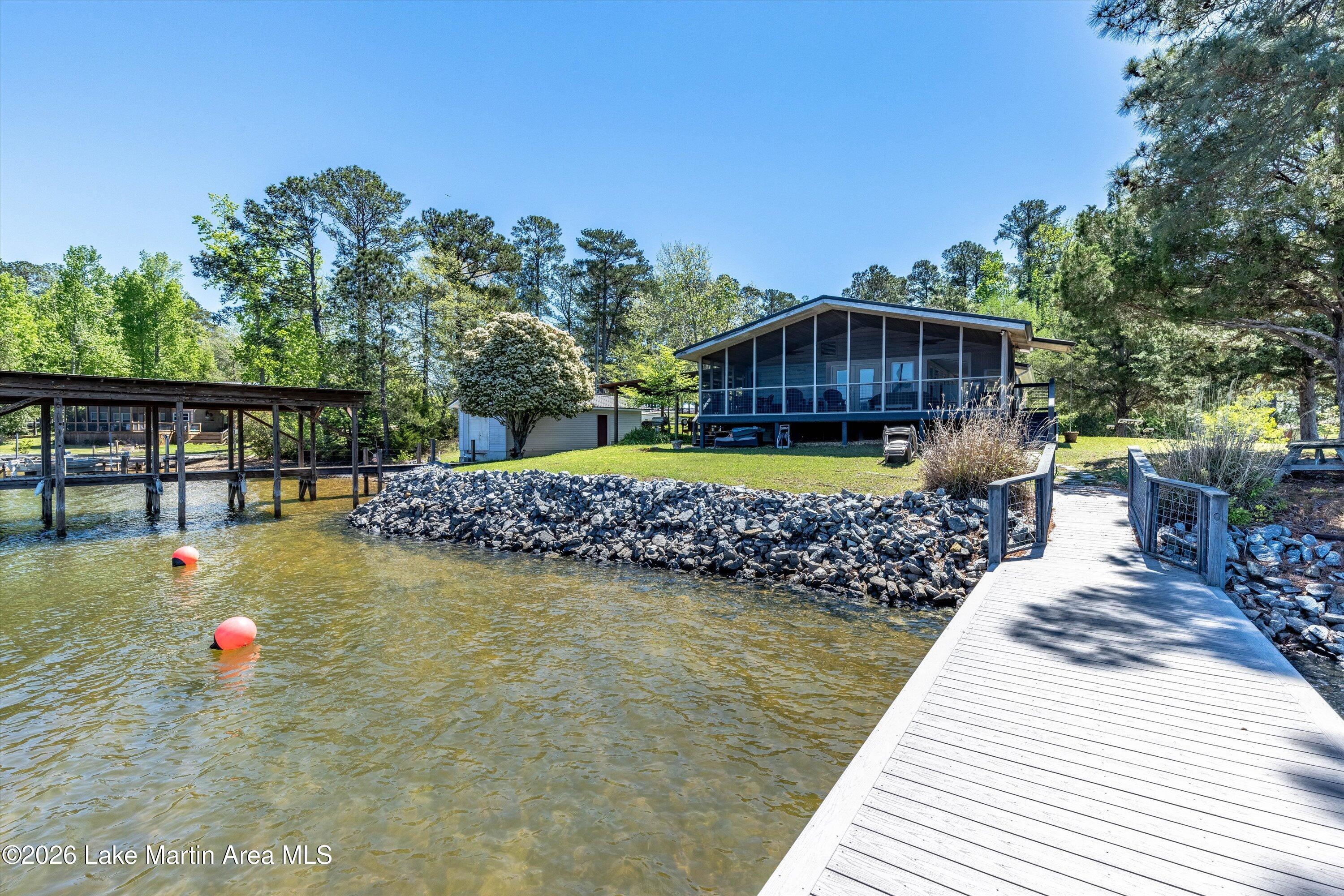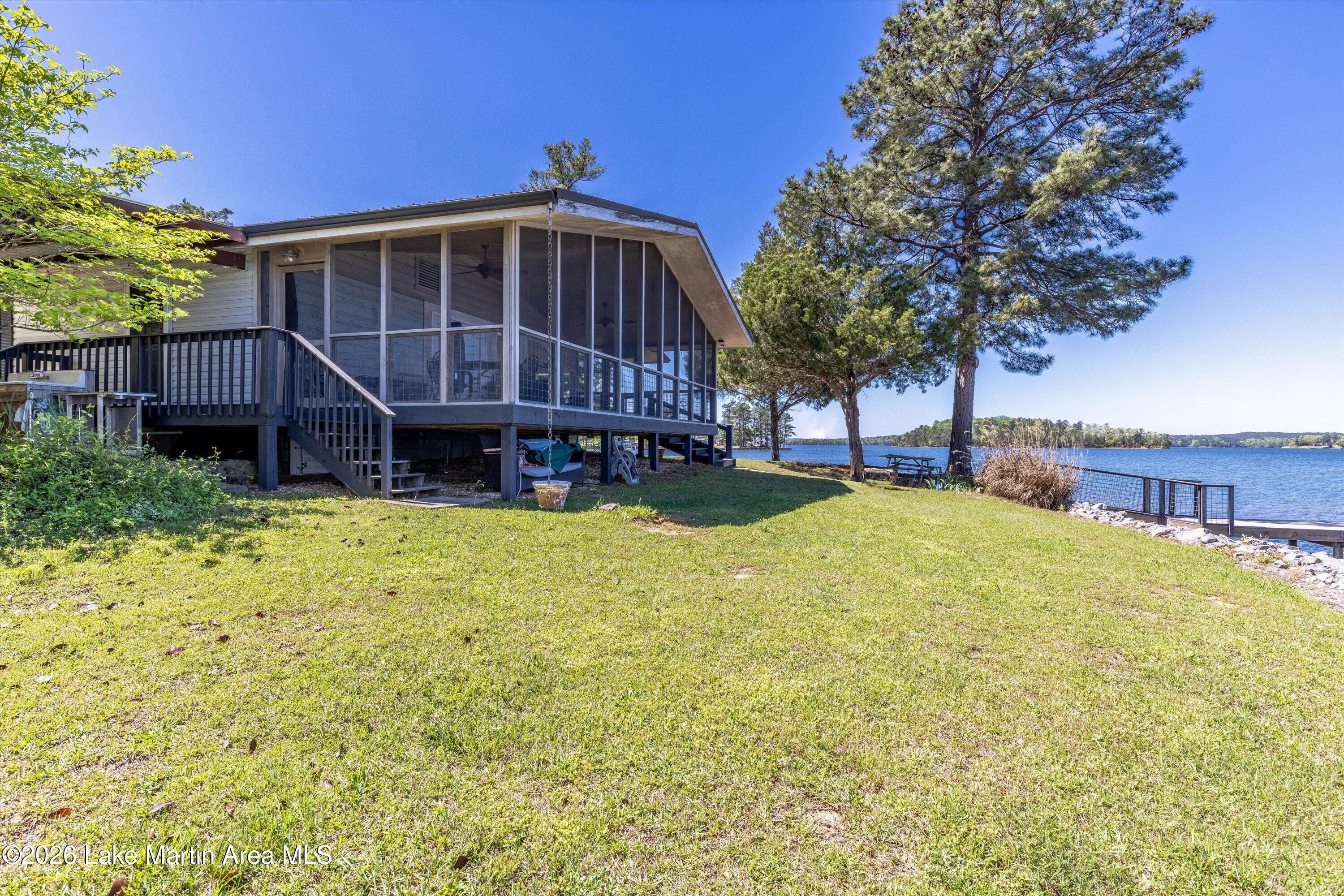Rare LEGACY Property on POINT WINDY on private point. Peaceful & serene 1.38 /- Acres, 469 /- ft of bulkheaded waterfront--Pristine TURN KEY 3bd/2ba furnished cottage with open water views & breathtaking sunsets, wrap around screened porch, outdoor shower, wood burning original fireplace, hardwood floors throughout, covered boat slip and dock, freestanding boathouse for additional storage. With a second new composite swimming dock (Lake Martin Docks 2024), 2018 septic (pumped 2025), 2020 metal roof, HVAC ( 5 years old), gravel boat launch. Updated HVAC, water heater, electrical panel, pipes/plumbing, & septic. Close proximity to Alex City, Publix, Auburn, Boondocks Marina, Point Windy Public Boat Ramp and Peanut Point.