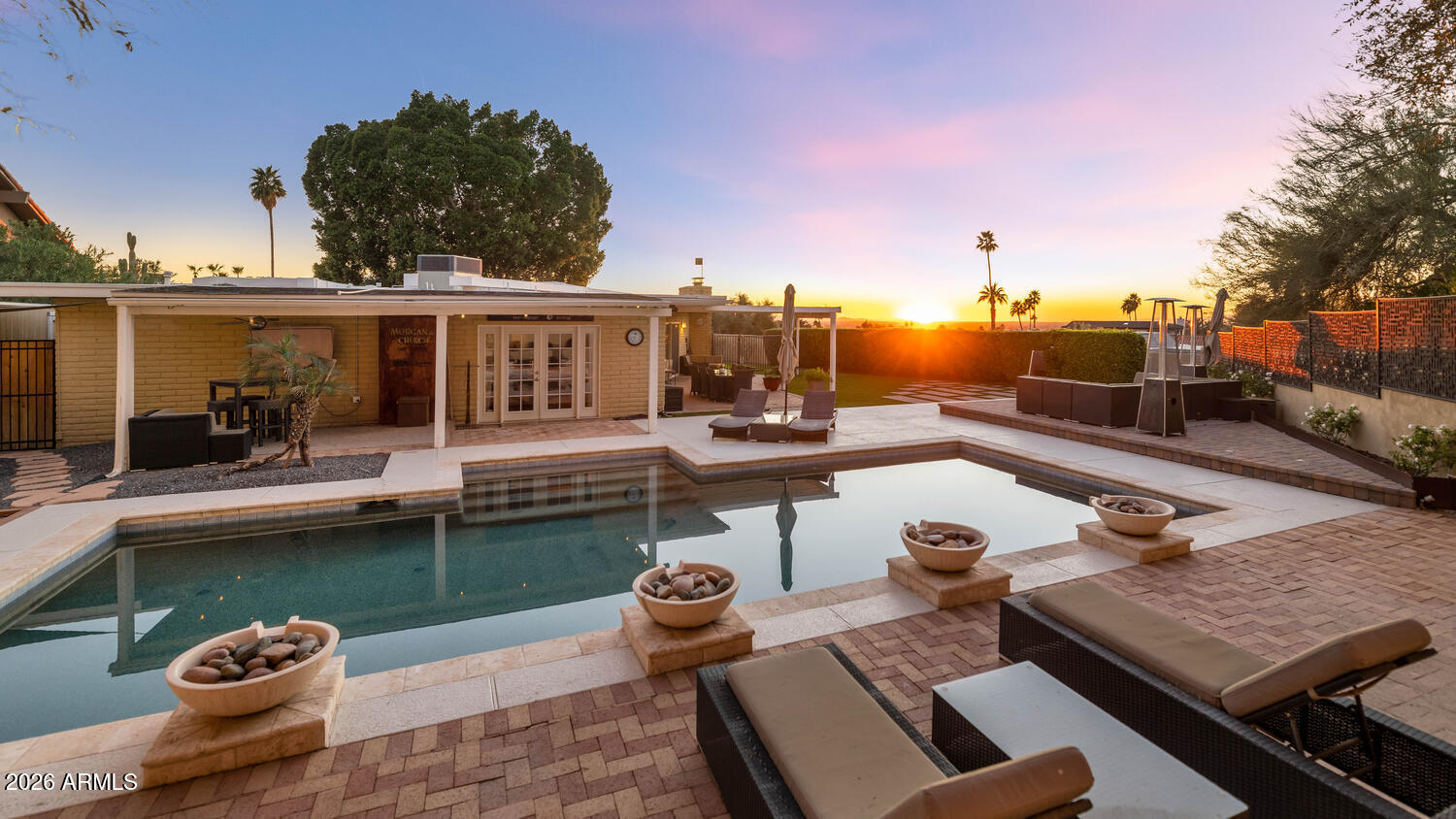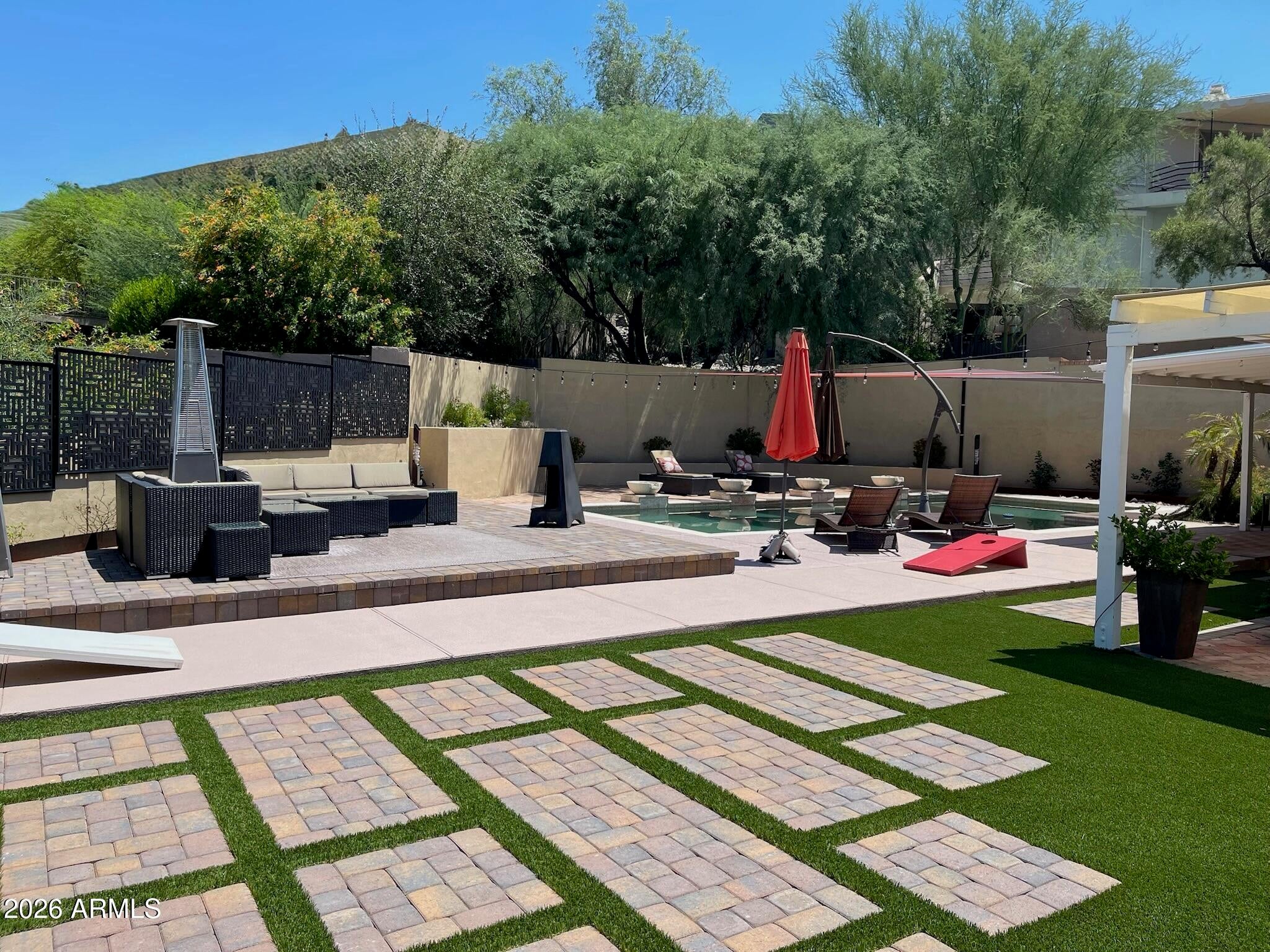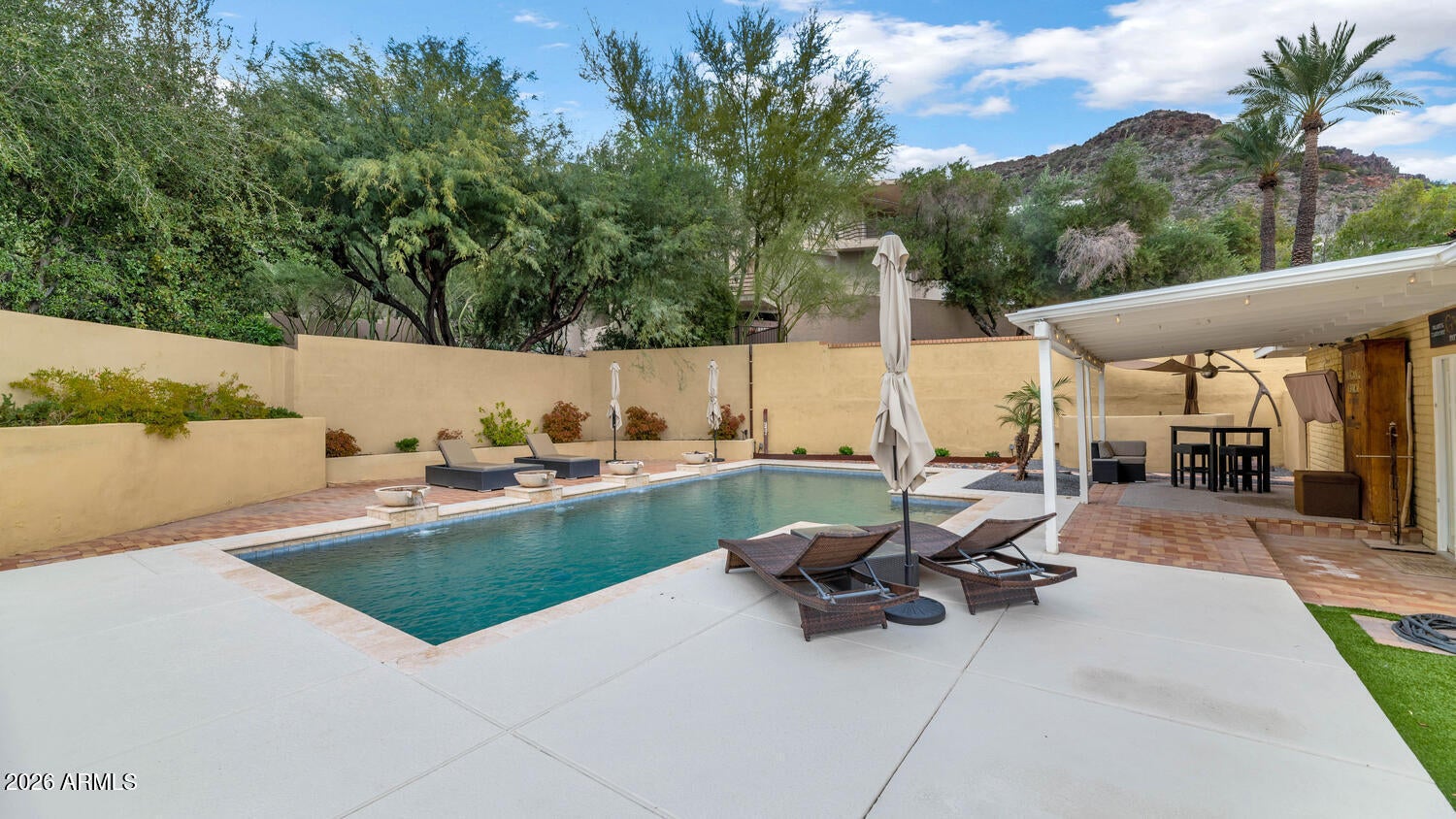 A rare mid-century retreat in a prestigious, private enclave with sweeping mountain and city views. Easily convertible to a 3-bedroom by restoring a single wall between the office and bedroom. Smart-enabled for modern living with seamless indoor-outdoor flow to a resort-style backyard featuring a custom Paddock pool, elegant fountains, and 5 distinct patios ideal for entertaining. Inside are 2 luxurious primary suites with spa-like baths, Japanese smart toilets, travertine floors, and walk-in closet with private laundry. Chef-inspired kitchen with high-end finishes. Set on nearly 1/3 acre with no HOA, zoned for expansion, with direct access to Piestewa Peak trails and minutes from the Arizona Biltmore, Biltmore Fashion Park, premier dining, designer shopping, and nearby hiking and biking.