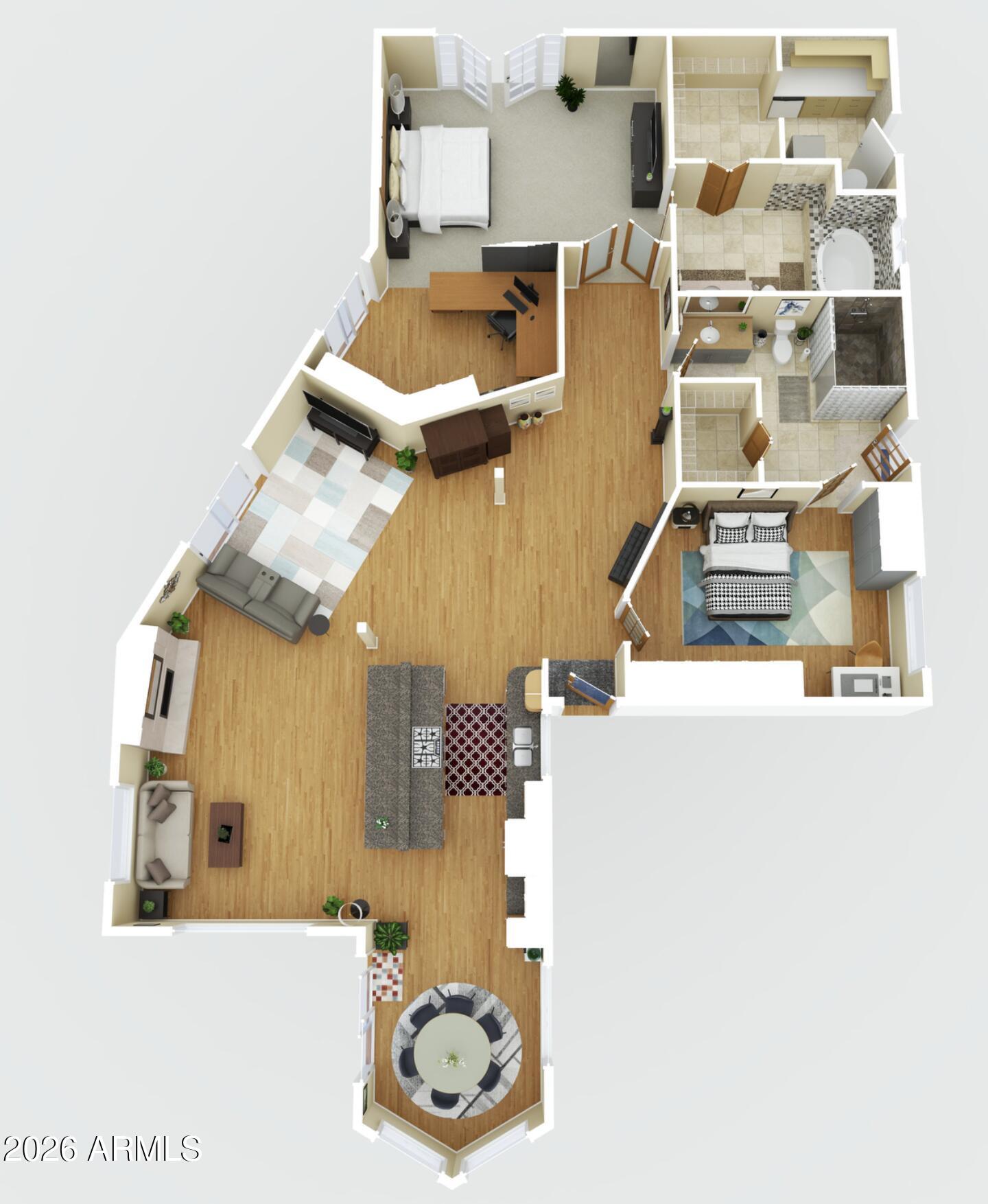 Stunning home with over 150K in post-builder upgrades in a prestigious gated Northeast Mesa community surrounded by Sonoran Desert beauty. Elevated lot offers privacy and scenic views while residents enjoy pickleball, sports courts, park, ramada, firepit seating, and tot lot. Backyard is a true Arizona resort with heated pool and spa, travertine decking, gas firepit, BBQ stub, lush landscaping, and extended covered patio. Inside features an open great room, gourmet kitchen with oversized island, upgraded cabinetry, stainless appliances, designer finishes, and wood-look tile throughout main living areas. All bedrooms offer private en suite baths. Oversized overheight 3-car garage with epoxy floors and third bay provides room for toys. Minutes to shopping, dining, and outdoor recreation.