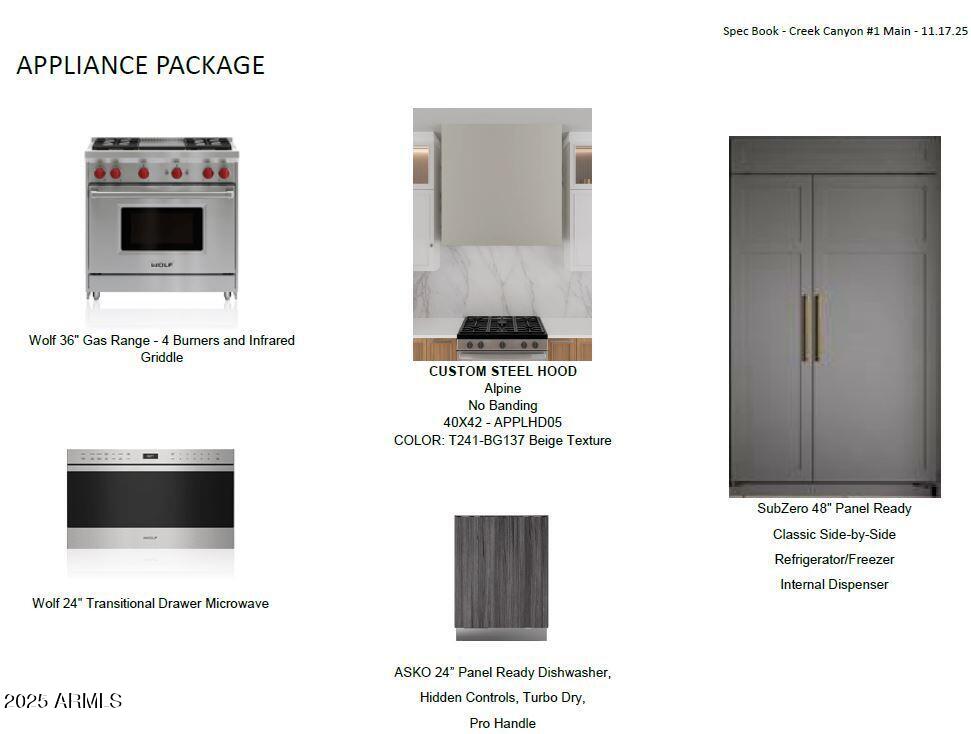 This luxury home is a full spec to be built. Home features include custom island kitchen with Wolfe 48 gas range, SubZero 48 built-in Refrigerator, Wolf micro-drawer, Asko dishwasher, extended height upper cabinets and Quartz waterfall countertop. Includes paver driveway, oversized three-car tandem garage, and 49 RV garage. The layout includes 4 bedrooms plus an office, 4.