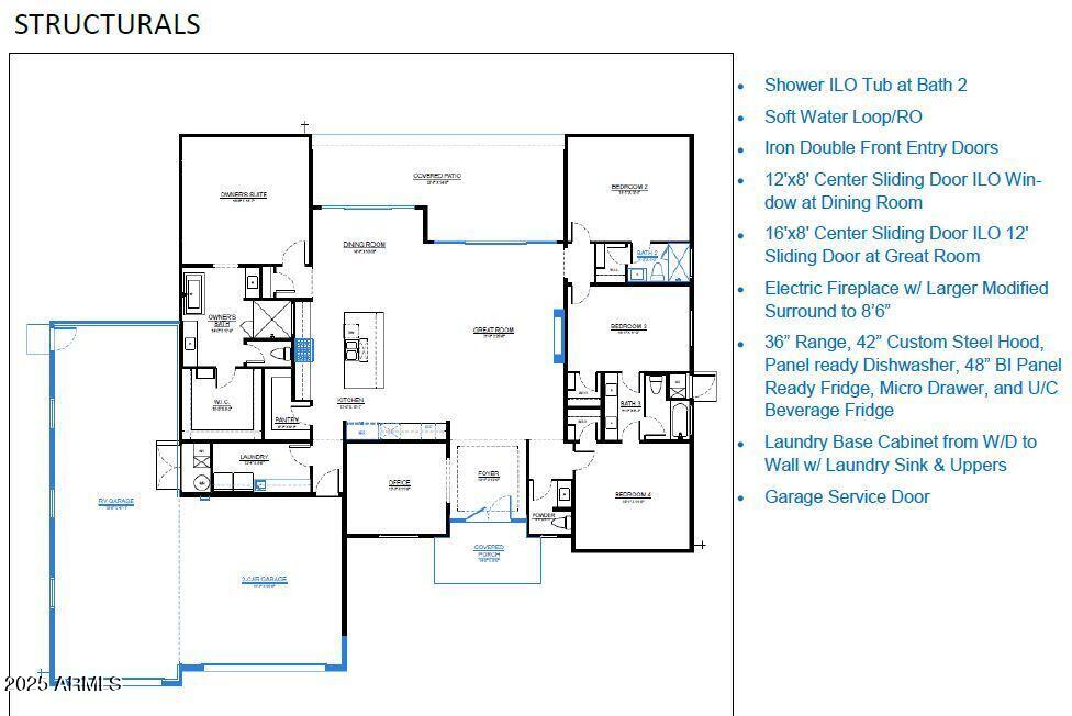 This luxury home is a full spec to be built. Home features include custom island kitchen with Wolfe 48 gas range, SubZero 48 built-in Refrigerator, Wolf micro-drawer, Asko dishwasher, extended height upper cabinets and Quartz waterfall countertop. Includes paver driveway, oversized three-car tandem garage, and 49 RV garage. The layout includes 4 bedrooms plus an office, 4.5 bathrooms; Grand guest suite with its own living area, Luxurious owners suite with freestanding tub, walk-through double shower, and oversized walk-in closet with built-ins and island. Laundry room sink & cabinets. Details include 90/10 smooth walls, 8 doors, & 12 ft. ceiling. 2x6 frame exterior, fully sheathed walls, spray foam insulation & post tension slab foundation. Photos & options are of a completed model.