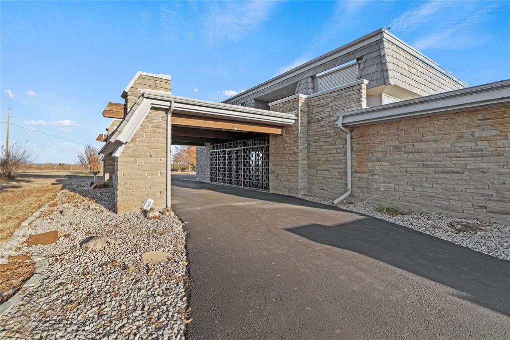 Step into a world of architectural splendor & timeless elegance with this Frank Lloyd Wright-inspired estate, offering nearly 8,000sqft (MOL) of meticulously crafted living space. Built in 1969 & thoughtfully expanded, this residence seamlessly blends mid-century modern design with luxurious amenities, creating a one-of-a-kind home that caters to both comfortable multigenerational living & grand entertaining. As you approach, a curved driveway & porte cochère set the tone for the grandeur within. You are welcomed w/a two-story foyer featuring a spiral staircase, leading to a library & great room with custom built-ins, wood-burning fireplace, & views of the solariuma lush indoor greenhouse perfect for year-round gardening. Adjacent is a private bar room, ideal for entertaining! The NE wing of the home is dedicated to shared spaces, including a kitchen that serves as the heart of the home. Boasting a unique curved design, original cabinetry, quartz countertops, & walk-in pantry, it flows seamlessly into the formal dining, which is enveloped by the striking stone walls of the grand staircase. The SW wing of the main house hosts 4 spacious bedrooms, each with ensuite baths & ample closets. The primary suite offers a private office/sitting area, ensuite bath w/ dual vanities, & cedar closet. Upstairs, youll find versatile bonus spaces, including a potential bedroom w/a ensuite bath & a NEW rooftop observation deck that delivers breathtaking views of Downtown OKC, Tinker AFB, & stunning Oklahoma sunsets. The connected 2,600 sqft guest wing is a haven of its own. Designed for harmonious co-living, it features a second kitchen, dining & living areas, a large primary suite w/a walk-in closet & ensuite bath, a flexible second room, and 2 full baths. With a separate entrance, its perfect for multigenerational living or private guest accommodations. The outdoor experience is equally remarkable, with 5 sprawling acres, a heated saltwater pool, swim-spa, & a 30x40 shop.