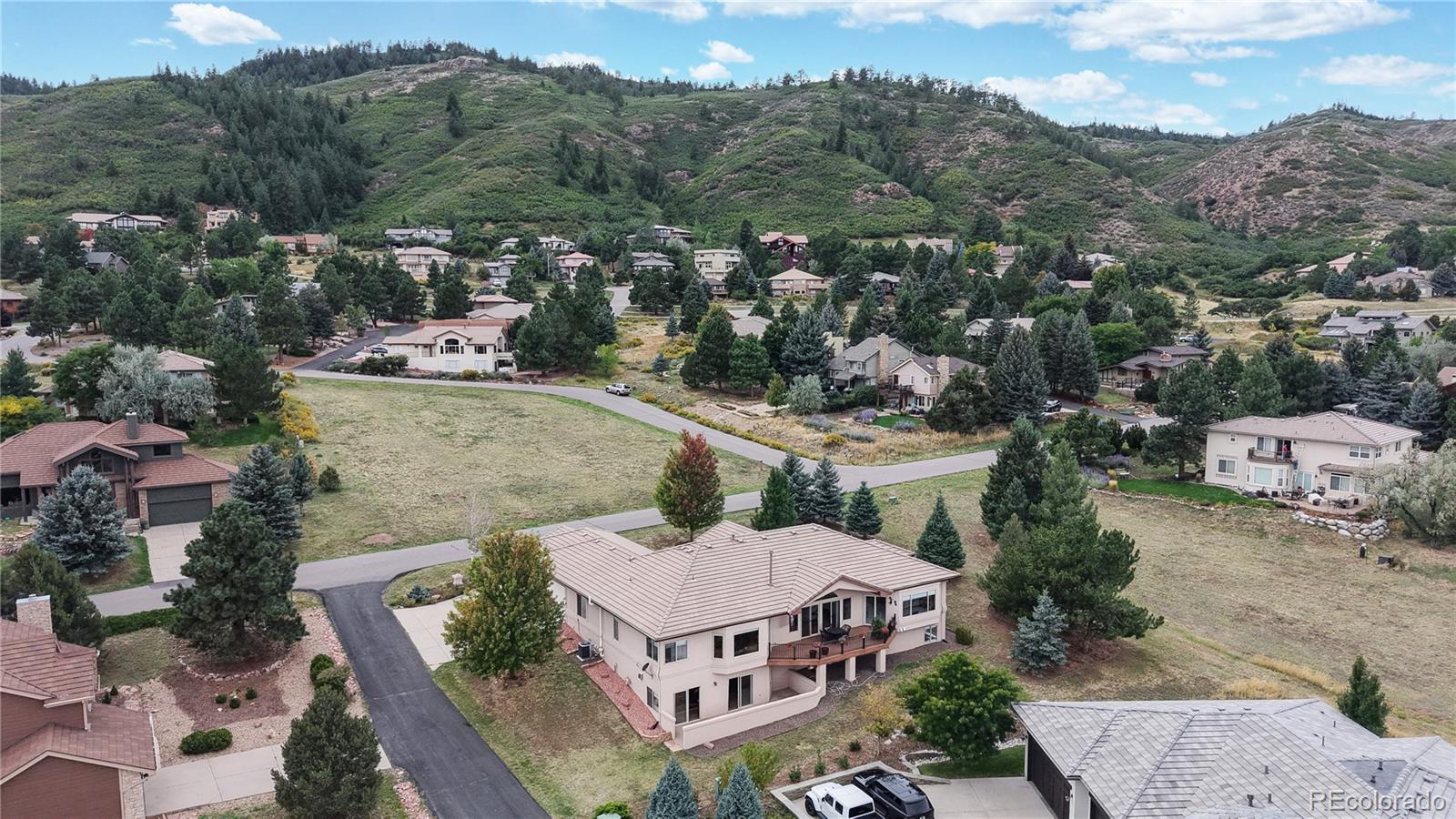 This Roxborough Park ranch-style home showcases views of Arrowhead Golf Course, ancient red rock formations, and the glittering city lights! Step inside to a spacious great room that flows seamlessly into the formal dining area-deal for hosting gatherings both large and intimate. Hardwood floors run throughout the main level, with soft carpet in the bedrooms and tile in the baths. The dining room features a convenient dry bar, a linen-drum light fixture, and space for varied table styles plus a buffet or sideboard. Just inside the foyer, a private study with French doors and custom ceiling detail creates a sophisticated home office. The gourmet eat-in kitchen impresses with slab granite counters, large island, and walk-in pantry, making it a chefs dream. The expansive primary suite offers new carpet, a sitting area, five-piece bath, walk-in closet, and glass doors to the composite deck. The retreat easily accommodates a reading nook or second office. The updated guest bath highlights an artistic copper dragonfly sinksure to spark conversationand 2 secondary bedrooms share a functional Jack-and-Jill bath. The main-floor laundry includes washer, dryer, utility sink, and cabinetry for storage. The newly finished walkout level is designed for entertaining with LVP flooring, a wet bar, seating area with gas log fireplace, and recreation space perfect for a pool table, fitness area, or media setup. The spa-inspired bath adjoins a spacious guest bedroom. A workshop, large storage/utility room, and a crawlspace, ensure abundant storage. Outdoor living shines with a newer composite deck, a walled area ideal for a dog run, and a large front flagstone patio that easily hosts multiple seating groups. The three-car garage provides room for cars, toys, and tools. Siding and facing designated greenbelts, this home enjoys privacy and a wide-open feel with nature surrounding youyet all within minutes of trails, Roxborough State Park, and conveniences.