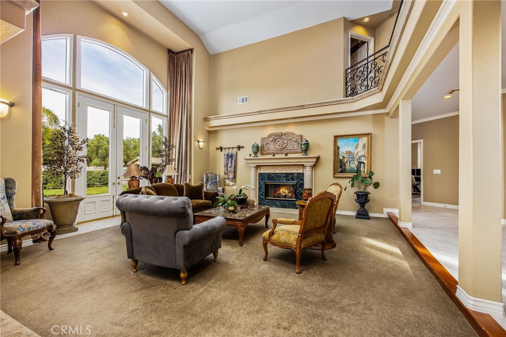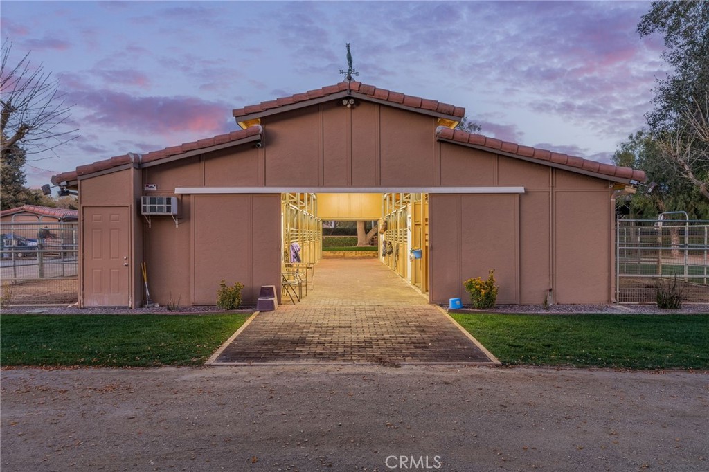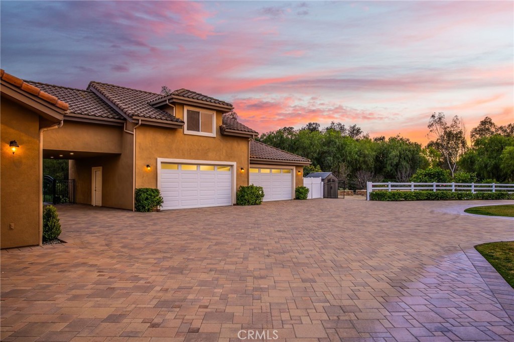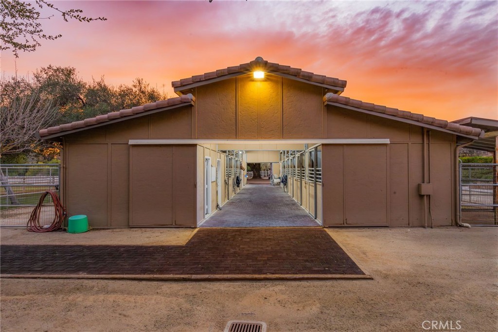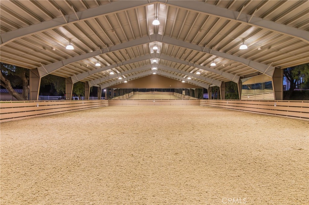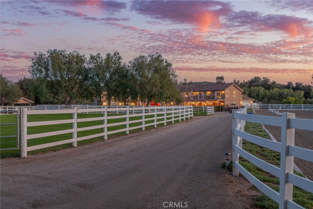 Welcome to one of La Cresta's premier gated equestrian estates, offering over 5 acres of fully developed horse facilities paired with more than 8,500 square feet of luxury living. Designed for the serious equestrian, this exceptional property delivers a true training-level setup rarely found in Southern California.The professional-grade equestrian complex features an Olympic-size covered arena with premium footing and mirrors as well as a 2nd uncovered Olympic-size arena with premium exterior footing, an 8-stall breezeway barn with indoor/outdoor box stalls, a 4-stall Mare Motel, tack room, wash rack, feed room, barn restroom, and dedicated laundry area. A separate covered hay barn and 70-foot roll-up garage provide ideal storage for horse trailers, RVs, or equipment. Three grass pastures and two dirt turnouts offer ample space for turnout and conditioning.Beyond the equestrian facilities, the estate welcomes you with a grand motor court and covered loggia leading into an elegant residence with soaring ceilings, a formal living room with fireplace, and French doors opening to the outdoor entertaining areas. The gourmet kitchen features dual Cove dishwashers, a large walk-in pantry with additional refrigeration and wine cabinet, and flows seamlessly into the formal dining space. Just off the kitchen is a cozy den, along with a mud room and dedicated laundry room for everyday functionality.The main level also includes a private bedroom, two offices, and an expansive bonus room complete with full bar, fireplace, and cinematic entertainment setup.Upstairs, the mirrored gym with ballet barre offers a dedicated fitness space. In addition to the luxurious primary suite with wet bar, fireplace, dual balconies, heated stone floors, steam shower, soaking tub, dual vanities, and two walk-in closets, there are three additional bedrooms, each with its own private bathroom. The upper level also features abundant built-in cabinetry and extensive storage throughout the hallway and between the bedrooms and gym.The outdoor living area features a paver-stone driveway, solar-heated pool and spa, expansive patios, plus a garden and orchard with more than fifteen mature fruit trees.Additional highlights include a 4-car garage with EV charging, full-house gas generator, and private water well systems. All set in prestigious La Cresta, just minutes from shopping, dining, and Temecula Wine Country.
