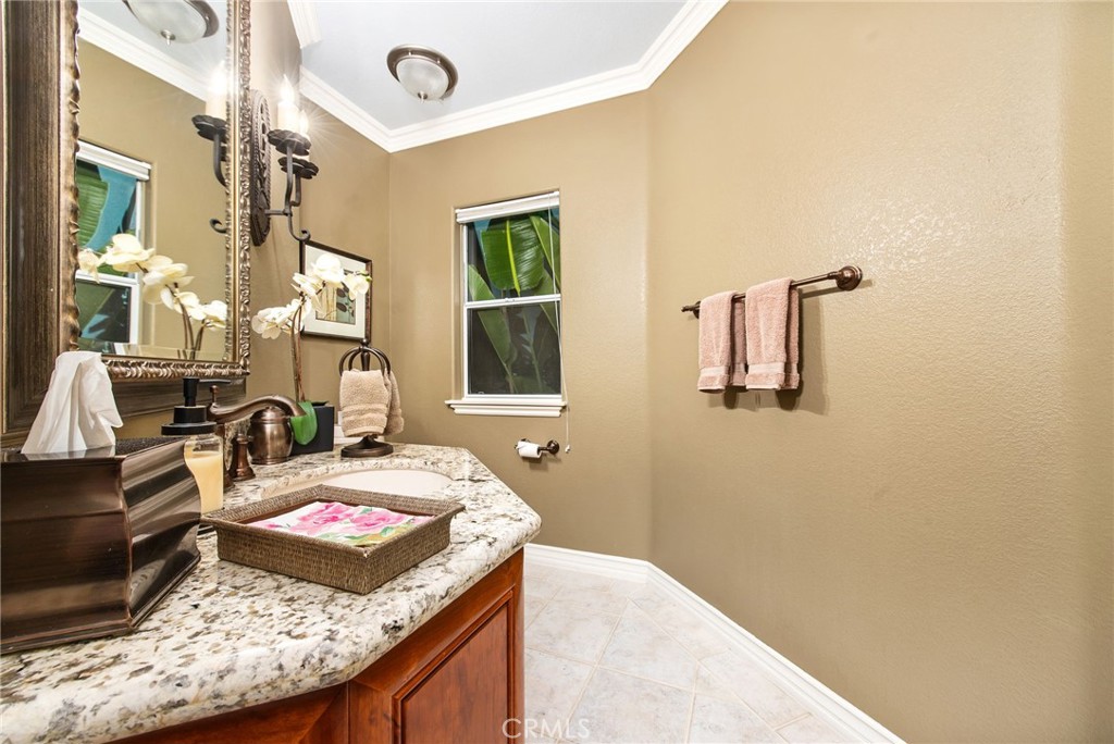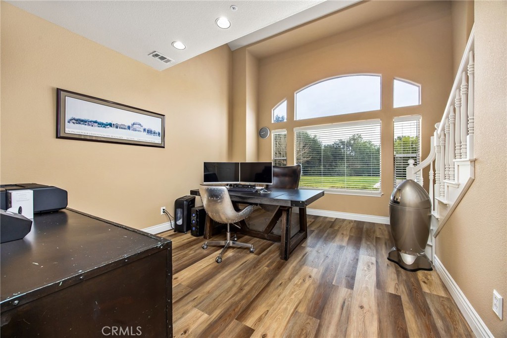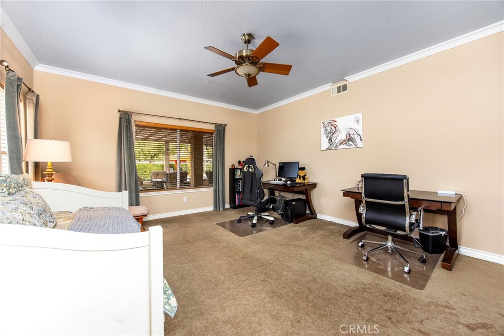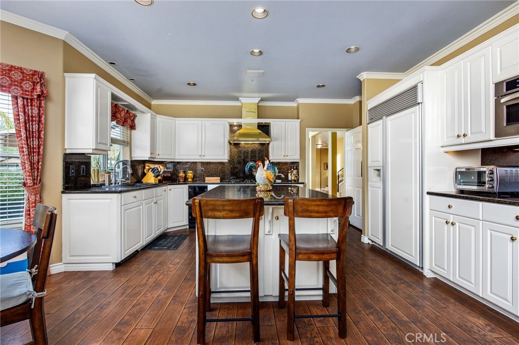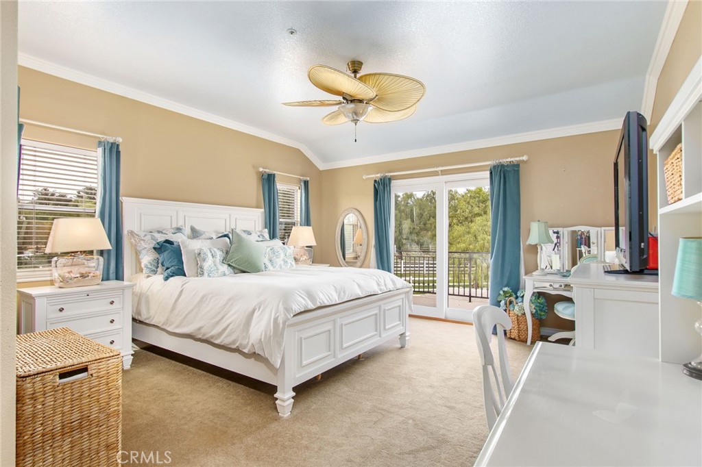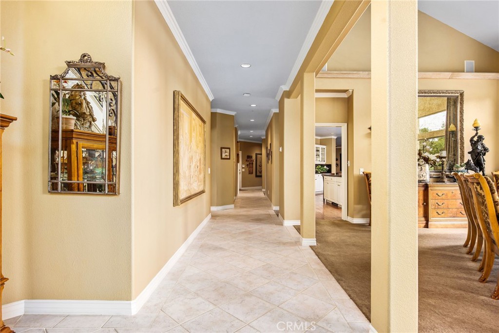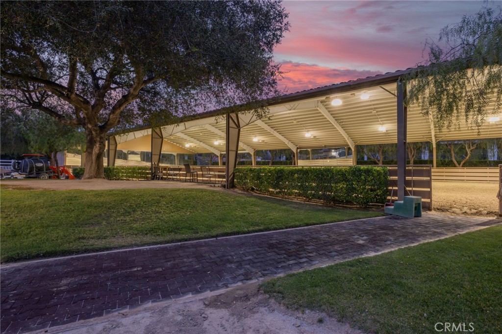 Welcome to one of La Cresta's premier gated equestrian estates, offering over 5 acres of fully developed horse facilities paired with more than 8,500 square feet of luxury living. Designed for the serious equestrian, this exceptional property delivers a true training-level setup rarely found in Southern California.The professional-grade equestrian complex features an Olympic-size covered arena with premium footing and mirrors as well as a 2nd uncovered Olympic-size arena with premium exterior footing, an 8-stall breezeway barn with indoor/outdoor box stalls, a 4-stall Mare Motel, tack room, wash rack, feed room, barn restroom, and dedicated laundry area. A separate covered hay barn and 70-foot roll-up garage provide ideal storage for horse trailers, RVs, or equipment. Three grass pastures and two dirt turnouts offer ample space for turnout and conditioning.Beyond the equestrian facilities, the estate welcomes you with a grand motor court and covered loggia leading into an elegant residence with soaring ceilings, a formal living room with fireplace, and French doors opening to the outdoor entertaining areas. The gourmet kitchen features dual Cove dishwashers, a large walk-in pantry with additional refrigeration and wine cabinet, and flows seamlessly into the formal dining space. Just off the kitchen is a cozy den, along with a mud room and dedicated laundry room for everyday functionality.The main level also includes a private bedroom, two offices, and an expansive bonus room complete with full bar, fireplace, and cinematic entertainment setup.Upstairs, the mirrored gym with ballet barre offers a dedicated fitness space. In addition to the luxurious primary suite with wet bar, fireplace, dual balconies, heated stone floors, steam shower, soaking tub, dual vanities, and two walk-in closets, there are three additional bedrooms, each with its own private bathroom. The upper level also features abundant built-in cabinetry and extensive storage throughout the hallway and between the bedrooms and gym.The outdoor living area features a paver-stone driveway, solar-heated pool and spa, expansive patios, plus a garden and orchard with more than fifteen mature fruit trees.Additional highlights include a 4-car garage with EV charging, full-house gas generator, and private water well systems. All set in prestigious La Cresta, just minutes from shopping, dining, and Temecula Wine Country.