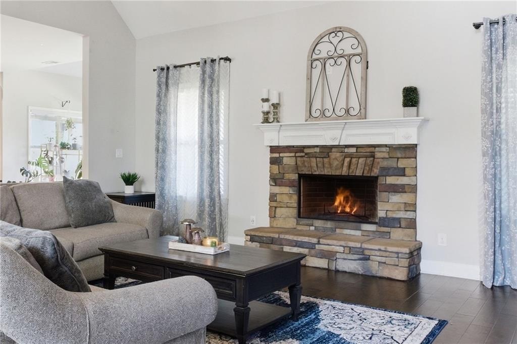 Gorgeous modern craftsman home built by Randy James, featuring a thoughtful floor plan with a separate dining room that easily flexes as an office or media room. Stylish lighting, elegant countertops, and an open, light-filled area create a welcoming, modern feel. Enjoy a large, fully fenced backyard with a covered porch and gas log fireplace- perfect for relaxing or entertaining.