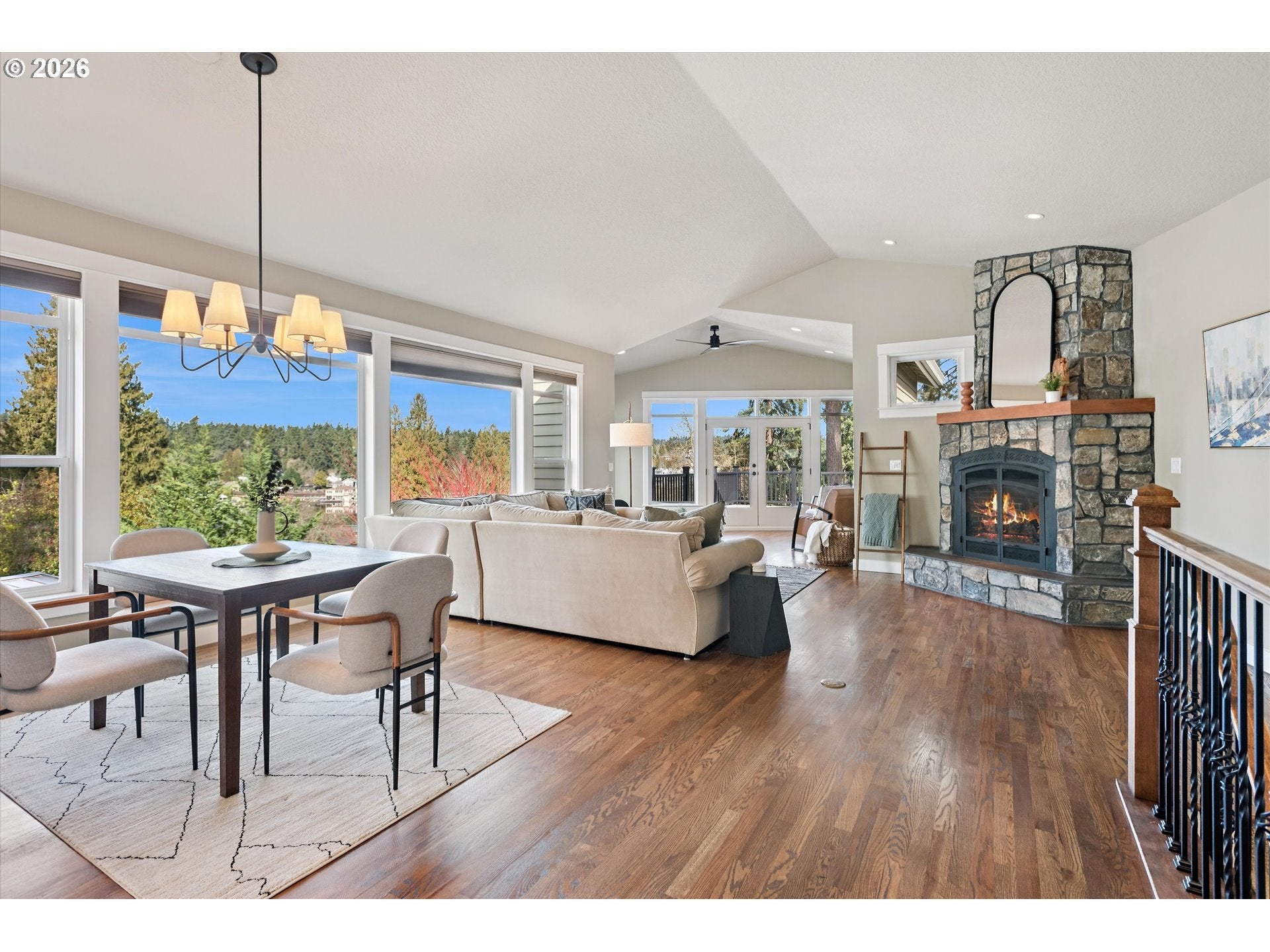 Beautiful home located in the highly desirable Lake Creek Farms subdivision! Surrounded by amazing views, this single-level living home features a spacious layout, vaulted ceilings, gorgeous hardwood flooring, 2 big family rooms,