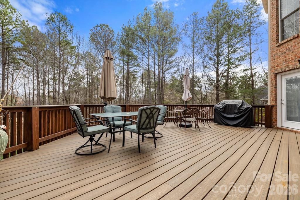 Refined luxury meets resort-style living in this exceptional five-bedroom, five-and-a-half-bath residence in the highly sought-after Huntington Farms community. Privately positioned on a wooded cul-de-sac lot, this expansive estate offers more than 5,900 square feet of thoughtfully curated living space, including a finished basement and a stunning in-ground pool with spa.The main level showcases a spacious primary suite with tray ceiling and a beautifully appointed ensuite bath, along with a private guest suiteideal for multigenerational living or long-term guests. A dedicated office, formal dining room, and elegant great room create a sophisticated yet inviting atmosphere, highlighted by hardwood floors, crown molding, tray ceilings, custom wainscoting, and a gas fireplace. The well-appointed kitchen blends function and style with granite countertops, double wall ovens, an electric cooktop, tile backsplash, and abundant cabinetry, flowing seamlessly into the main living areas for effortless entertaining. Plantation shutters throughout much of the home add timeless architectural character.Upstairs, additional guest bedrooms and full baths accompany an expansive, flexible bonus space perfect for a media room, fitness studio, or playroom. The finished lower level further extends the homes versatility, offering a private guest retreat with bedroom and full bath, generous recreation space, a second gas fireplace, and extensive storage.Outdoor living is equally impressive. A spacious main-level deck constructed with low-maintenance materials overlooks the fenced backyard, where an in-ground pool with spa, stone decking, and mature landscaping create a serene, resort-inspired setting designed for both relaxation and entertaining.Additional highlights include a three-car garage, large walk-up attic space, laundry room with cabinetry and utility sink, custom built-ins, and a decorative front door entry with high ceilings.A rare opportunity to enjoy privacy, timeless finishes, and resort-caliber amenities in one of Fort Mills most desirable neighborhoods.