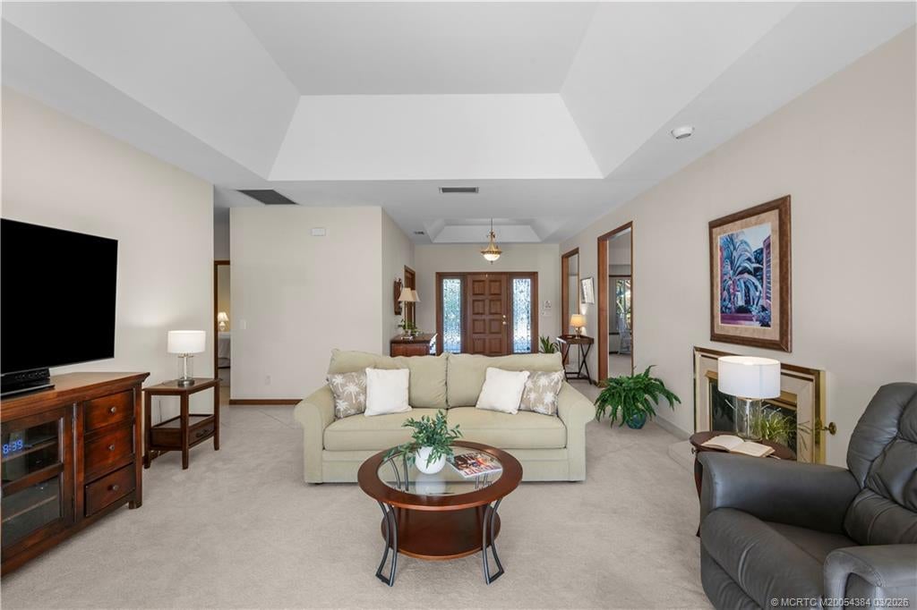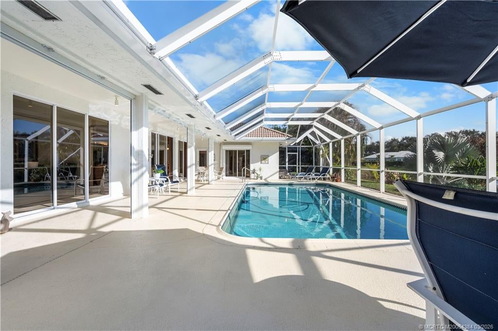 Luxury lakefront pool home in the prestigious gated community of Heritage Oaks. This spacious 4-bedroom, 3-bath residence sits on an .49-acre waterfront lot with wide lake views from the living room, kitchen, primary suite, guest room, and outdoor living areas. Enjoy Florida lifestyle living with a large screened pool, covered lanai, and hot tubperfect for entertaining or relaxing. The split floor plan offers privacy, while the open-concept kitchen flows into a comfortable sitting area featuring a two-sided fireplace. The primary suite includes sliding glass doors leading to the pool and patio. Updated bathrooms, oversized 2-car garage, and circular paver driveway add convenience and curb appeal. Ideal Florida luxury home, waterfront property, and private retreat. Tennis membership available 800/year.