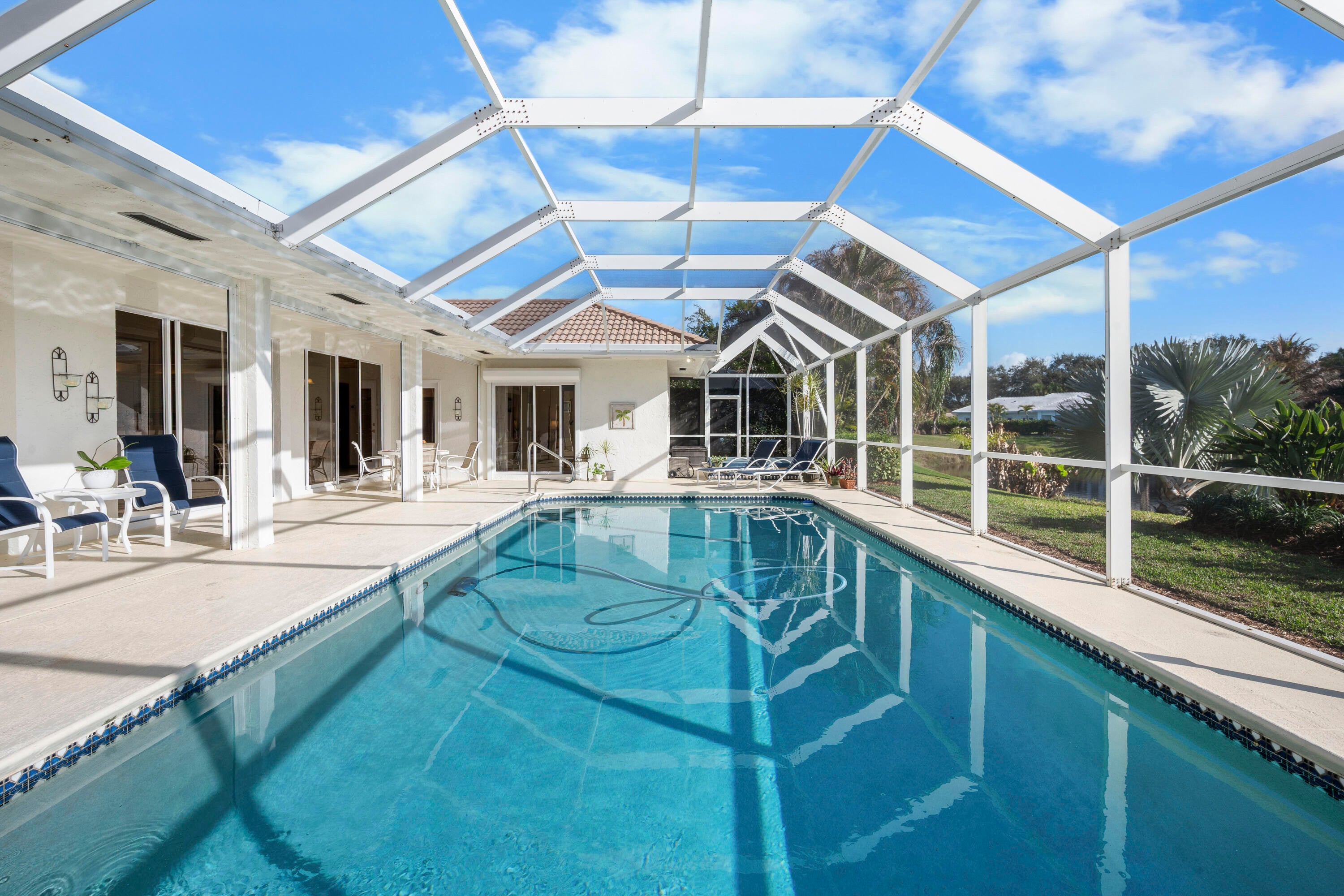 Luxury lakefront pool home in the prestigious gated community of Heritage Oaks. This spacious 4-bedroom, 3-bath residence sits on an .49-acre waterfront lot with wide lake views from the living room, kitchen, primary suite, guest room, and outdoor living areas. Enjoy Florida lifestyle living with a large screened pool, covered lanai, and hot tub--perfect for entertaining or relaxing.