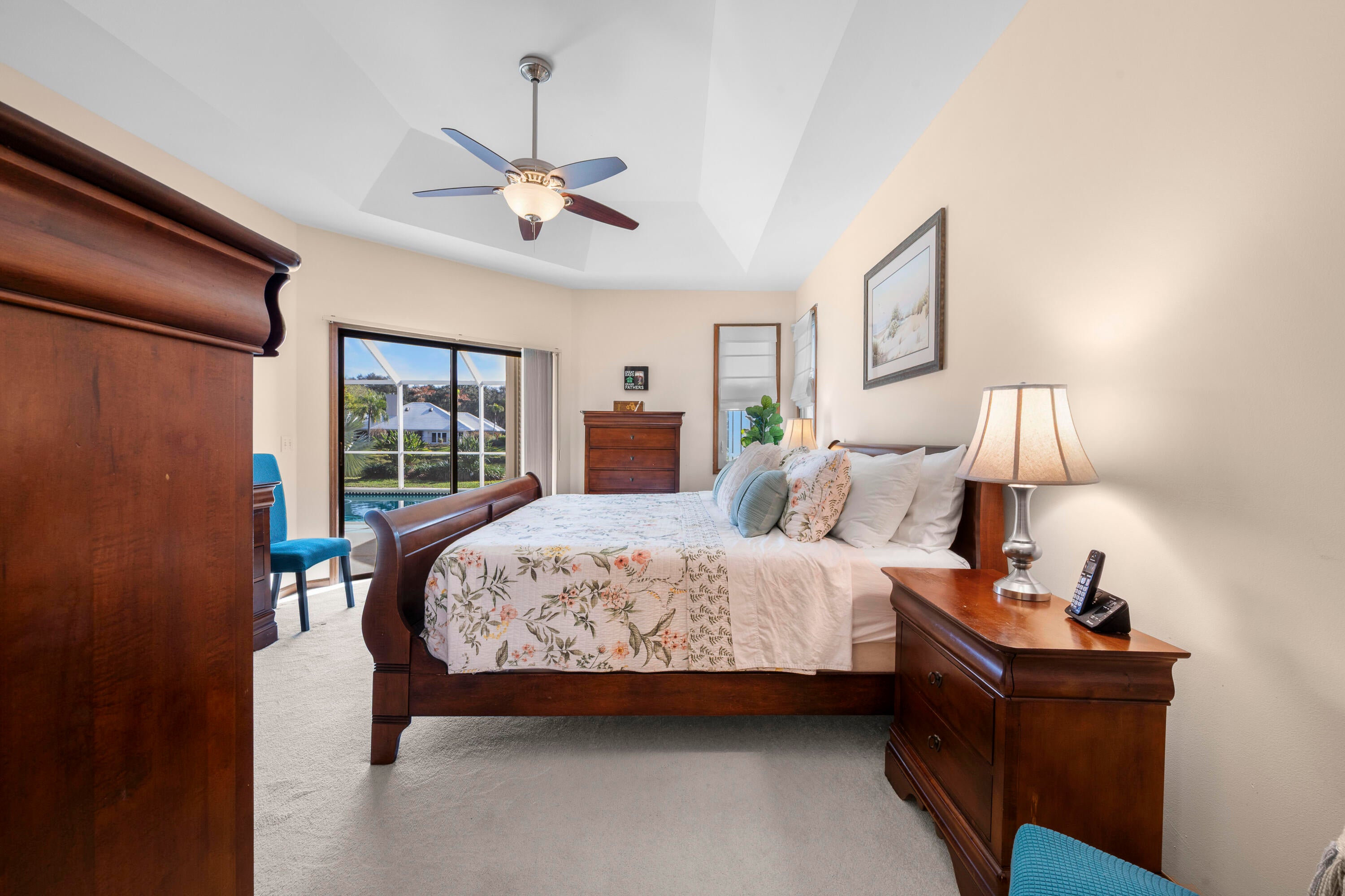 Exquisite Luxury & Modern Resilience in Ormond Beach. Welcome to 1020 Sudbury Lane, a stunning architectural masterpiece completed in 2022. Spanning 3,359 square feet on an expansive .78-acre lot, this 4-bedroom, 3.5-bathroom estate (plus a large office or 5th bedroom) perfectly blends sophisticated design with unparalleled functionality and peace of mind, enhanced by professionally designed landscaping and custom landscape lighting that highlights the property beautifully at night.Grand Entrances & Ample Space: From the moment you arrive, the scale of this property is evident. The home features an extended three-car side-load garage and a massive, oversized driveway capable of hosting guests with ease. Step through the double front doors into a grand interior defined by 10-12 ceilings and sleek porcelain tile that flows seamlessly throughout the entire residence.The Heart of the Home: Gourmet Kitchen: A massive custom island with integrated cabinetry on all sides, a dedicated coffee station, and premium finishes.Elegant Details: Coffered ceilings in the living room and tray ceilings in the dining area, primary suite, and breakfast nook.Ambiance: A cozy, remote-controlled electric fireplace serves as the centerpiece for the main living area, complemented by a functional stop and drop station in the laundry room.Your Private Screened Oasis: The outdoor living space is a true resort-style retreat, fully screened-in for year-round comfort and featuring high-end travertine decking and a fenced-in yard:The Pool: A massive, shimmering heated pool featuring a tranquil fountain, a sun deck, integrated underwater barstools, custom lighting, and the option for solar heating for energy-efficient comfort year-round. Privacy & Comfort: A large umbrella provides shade over the water, while the pool cage is equipped with an automatic privacy screen. The outdoor kitchen makes poolside entertaining effortless.Primary Suite & Guest ComfortPrimary Sanctuary: Includes his and hers custom closets and a spa-like bathroom with a zero-entry shower and a free-standing soaking tub.High-End Finishes: Every bathroom features shower tile to the ceiling. Every room is equipped with ceiling fans and custom blinds (with remote-controlled shades in the primary suite).Unmatched InfrastructureThis home was built for total peace of mind:Power Security: A whole-house generator supported by a 500-gallon buried propane tank (fully owned).Modern Utility: A large dedicated office provides the perfect workspace or can easily serve as a 5th bedroom.