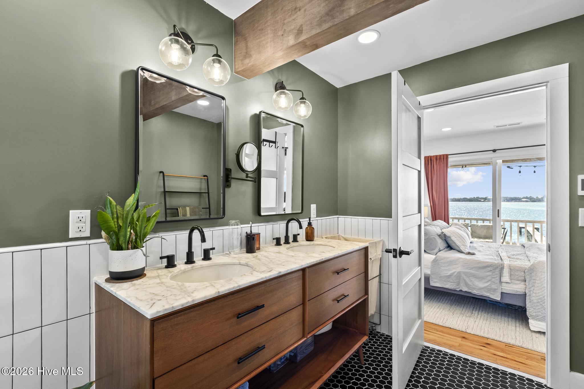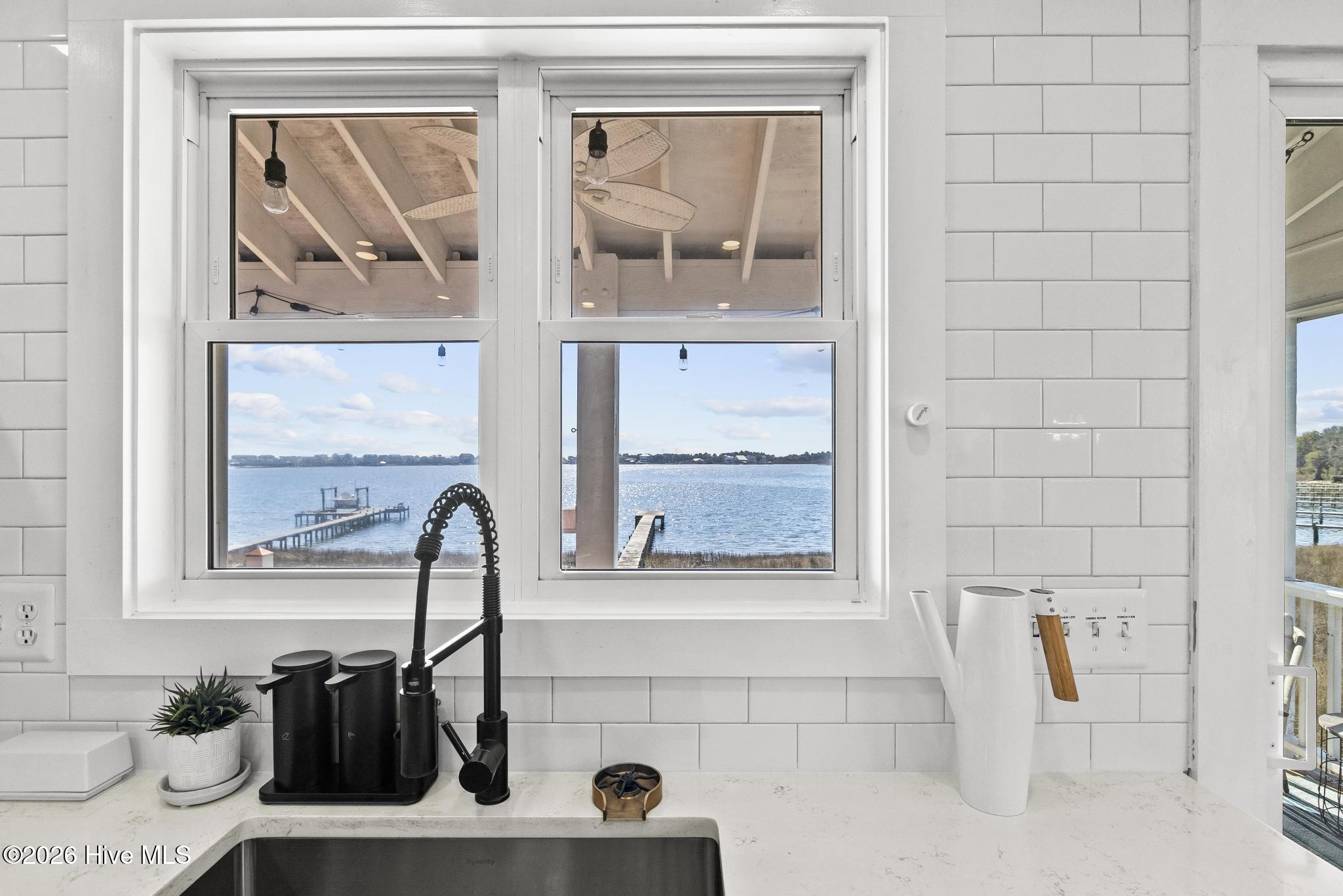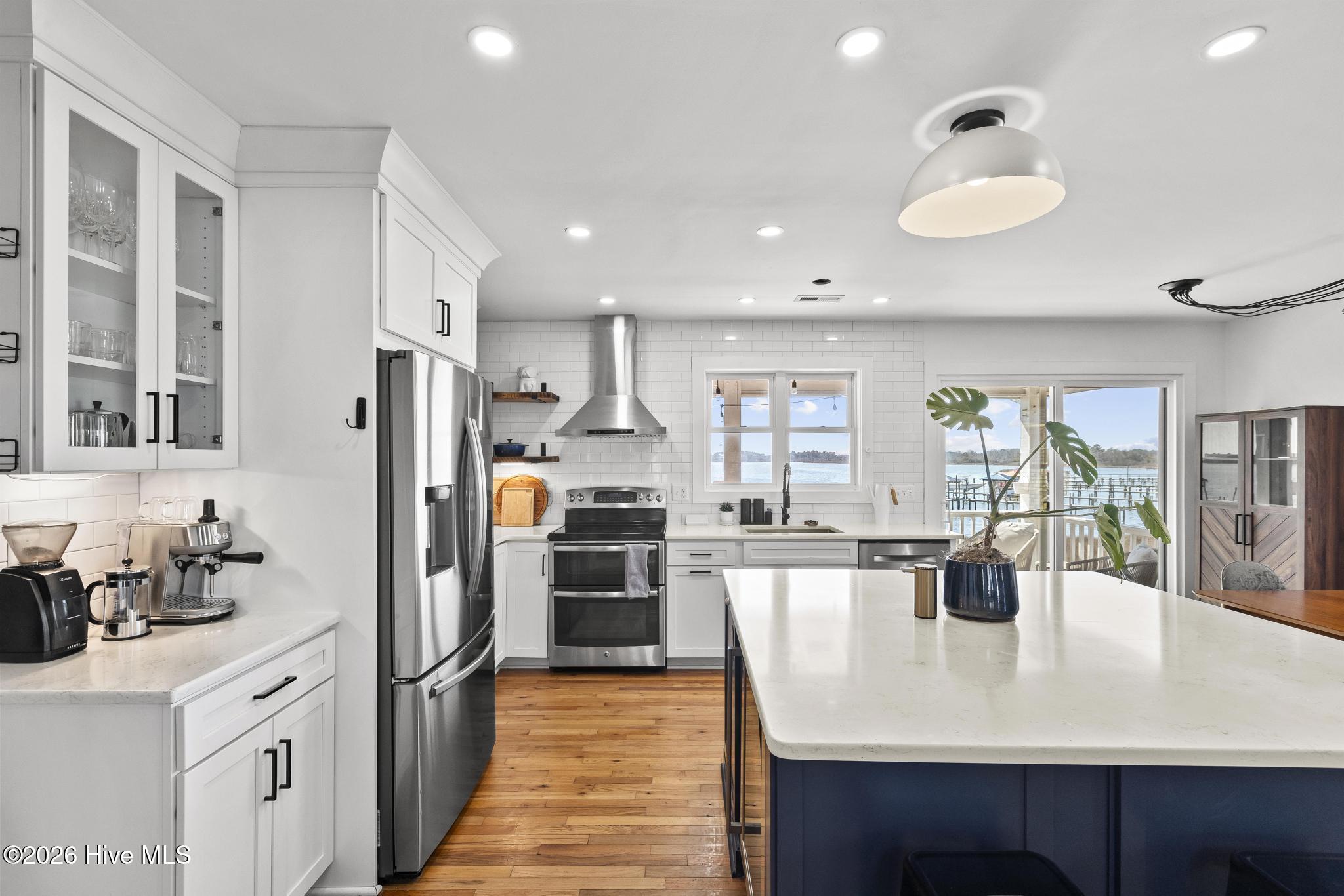 Offering 10,000 in closing cost assistance if able to close before April 28th! Located in the desirable Chadwick Shores community, this water-front and beautifully updated home offers refined coastal living with thoughtful, high-end upgrades throughout. Enjoy mornings and evenings on the water, simply enjoying the view, or using your private dock for a kayaking adventure. The fully remodeled kitchen serves as the heart of the home, featuring modern finishes and a functional layout ideal for both everyday living and entertaining. The primary suite is a true retreat, highlighted by a complete primary bath remodel with heated tile floors, custom closet storage, and a spa-inspired dual overhead rain shower system with a handheld wand. Major improvements provide both comfort and peace of mind, including a whole-home water filtration system, smart thermostats, and a hot tub perfect for watching the sunset.