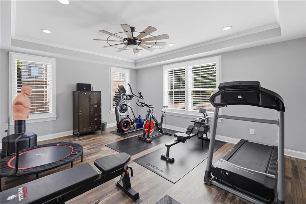 Updated Luxury Living in the Hickory Flat Area of Canton, GeorgiaWelcome to this beautifully updated custom home located in the highly sought-after Hickory Flat area of Canton, just minutes from Milton and surrounded by the convenience of shopping, dining, and top-rated schools. Situated in an upscale swim/tennis/clubhouse community, this impressive residence blends timeless architecture with thoughtful modern updates designed for todays lifestyle. Unlike others in the neighborhood and area, this home offers a fully finished terrace level, private pool, and turnkey updatesfeatures rarely found together at this price point.Built in 2016 and recently enhanced to check every box on your wish list, the home features a true primary suite on the main level with dual vanities, large custom close, and easy access to your home office or another main floor bedroom. The main level showcases an inviting open-concept floor plan with a stunning two-story great room, elegant formal dining room, and a spacious chefs kitchen complete with a large center island, white cabinetry, granite countertops, marble backsplash, stainless-steel appliances, and a bright breakfast area. A mudroom with laundry and an extra-deep walk-in pantry adds everyday functionality.Upstairs offers exceptional flexibility with three private bedroom suites, each featuring its own walk-in closet, along with a comfortable loft overlooking the great room, and a large media room with 9-foot ceilings and abundant natural light. The fully finished terrace level expands the living space dramatically with a custom bar area, exercise room, bedroom, full bath, secure safe room, and generous storage. This home is ideal for entertaining, hosting guests, or multi-generational living.Outdoor living is equally impressive. Step onto the large deck with covered porch overlooking a private backyard designed for relaxation and fun. The backyard features an incredible resort-style, fresh water, 24,000 gallon gunite pool installed just three years ago, complete with two waterfall, extra large sun deck, up to 30 foot bubbler, heated and cooled, and specialty lighting. The water is cleaned via the latest in UV technology allowing even the most sensitive people to enjoy the pool with no harsh chemicals or chlorine smells. Along with a fire pit, courtyard gathering space, and beautifully landscaped grounds; there is still plenty of yard space available for additional outdoor enjoyment.Additional highlights include an extra-large parking and turnaround drive, side-entry three-car garage with 8-foot doors and epoxy floors and a continuous circulation instant hot water system on a timer for added comfort and efficiency.This exceptional Hickory Flat Canton home offers the perfect blend of luxury, space, and lifestyle amenitiesall just minutes from Milton, Alpharetta, and the best of North Fulton and Cherokee County living.A rare opportunity to own a move-in-ready home with high-end upgrades, resort-style outdoor living, and an unbeatable location.