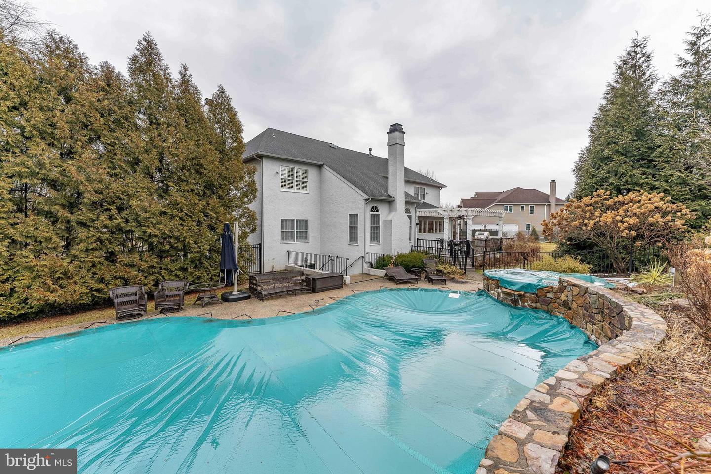 Welcome to 300 Bell Court, an exceptional luxury smart home ideally situated on a quiet cul-de-sac in the Swedesford Chase community of Exton, offering refined design, thoughtful upgrades, and resort-style outdoor living. As you arrive, the home makes an impeccable first impression being set back from the street, an expansive seven-car driveway, and three-car garage equipped with smart openers and an EV charging station. Inside, a dramatic two-story foyer with hardwood floors, crown molding, and a centrally positioned staircase sets the tone for the home. To one side of the foyer, a dedicated home theater featuring surround sound and a gas fireplace, provides the perfect space for movie nights and immersive entertainment, while the formal dining room on the opposite side showcases elegant millwork, tray ceilings, and French doors ideal for both everyday living and entertaining. A private home office with custom built-in bookcases and solid double doors creates an ideal work-from-home environment. At the heart of the home is the impressive family room highlighted by a partially vaulted two-story ceiling, floor-to-ceiling stone gas fireplace, and expansive windows overlooking the backyard and pool. An open balcony view from the upper level enhances the homes bright and connected design. The stunning, gourmet kitchen is beautifully appointed with Wolf, Sub-Zero, and Miele appliances, custom cabinetry, leathered granite countertops, and generous workspace designed for both cooking and gathering. Adjacent to the kitchen, the custom mudroom features cherry cabinetry, built-ins, bench seating, coat storage, utility sink, and LG front-load washer and dryer for added everyday convenience. Upstairs, the primary suite serves as a private retreat featuring hardwood floors, a tray ceiling, and an expansive custom California walk-in closet that can function as a dressing room, sitting area, or nursery. The spa-inspired primary bath includes heated radiant floors, heated towel bar, a walk-in shower with rain shower head and hand spray, premium tile finishes, leathered granite countertops, upgraded fixtures, and a tankless toilet system. Four additional bedrooms on the upper level are generously sized and thoughtfully arranged. Two bedrooms are connected by a well-appointed Jack-and-Jill bathroom featuring tile flooring, dual-sink vanity, custom cabinetry, and a walk-in shower, providing both privacy and functionality. The remaining bedrooms offer hardwood flooring, ample closet space, ceiling fans, and peaceful views of the surrounding property, ideal for family members, guests, or flexible use as additional office or hobby spaces. A second full hall bathroom includes quality finishes, tile flooring, and a step-in shower, comfortably serving the additional bedrooms and guests. The walk-out basement offers excellent flexibility with space for recreation, a home gym, or future finished living areas and includes plumbing for a future bathroom. Major system upgrades include smart home integration with Nest and Lennox HVAC controls, two tankless hot water heaters, a whole-house Generac generator, water softener with smart monitoring system, AprilAire humidifier, upgraded electrical service, and dual sump pumps. Designed for entertaining, the outdoor living space features a Trex composite deck with pergola overlooking a heated saltwater pool and spa controlled via iAquaLink app. The backyard also showcases professional landscape lighting, a full outdoor stone kitchen with grill, cooktop, sink, and refrigerator, creating an exceptional setting for year-round outdoor enjoyment. Conveniently located near shopping, dining, parks, and major commuter routes, this remarkable home seamlessly blends luxury craftsmanship, modern smart-home technology, and everyday comfort. Dont miss your opportunity to make 300 Bell Court your forever home.