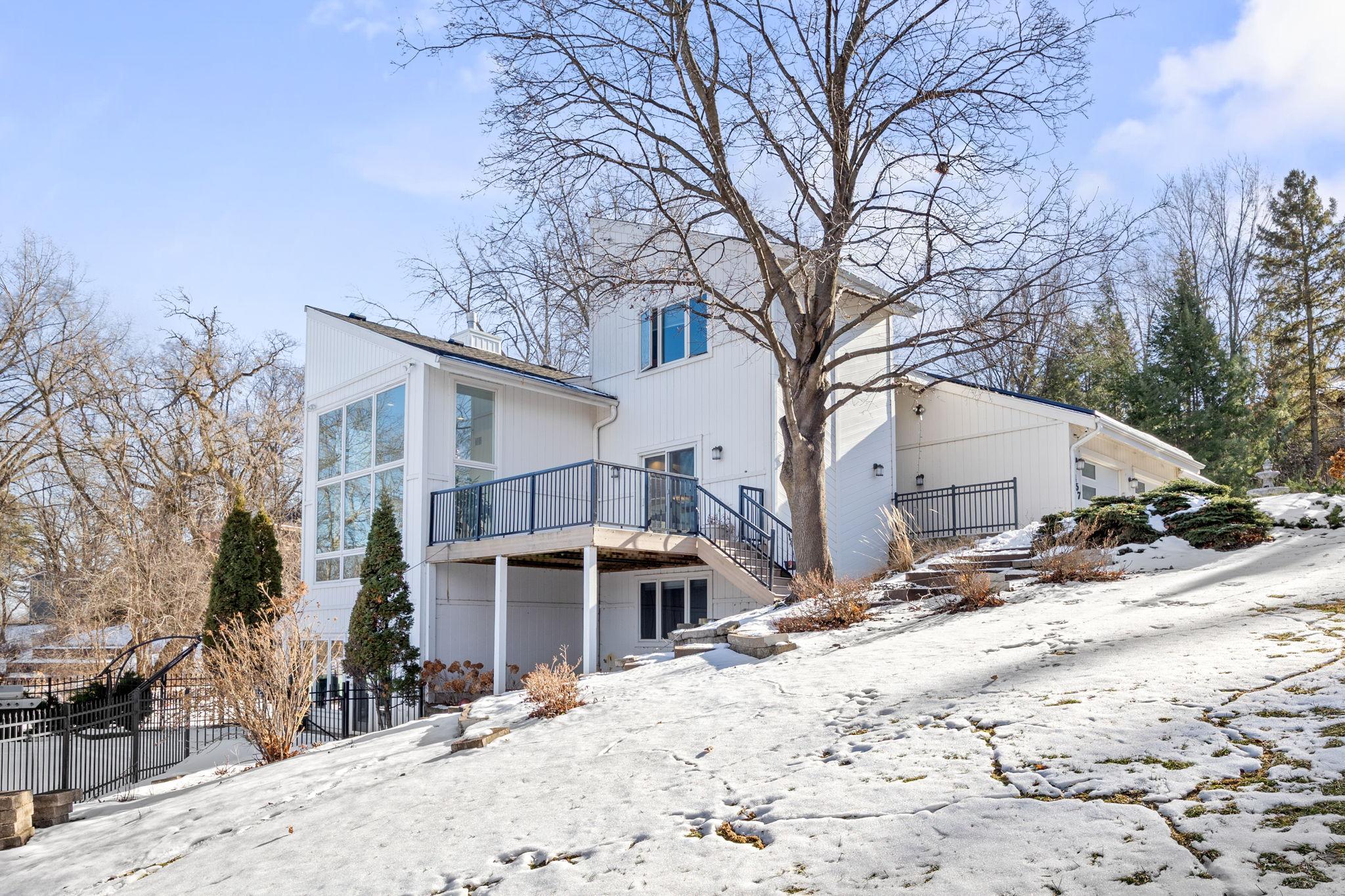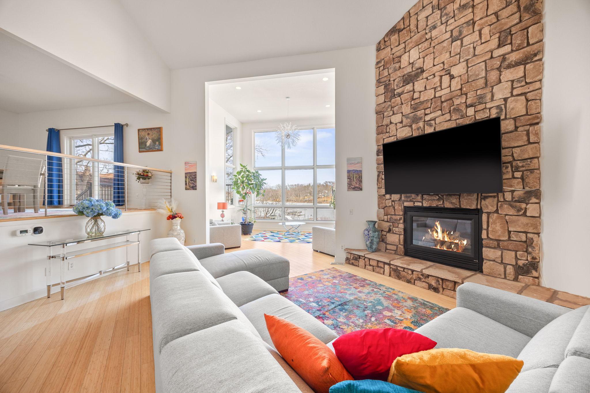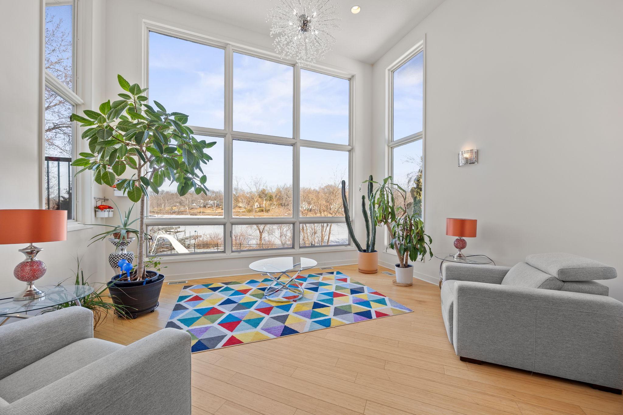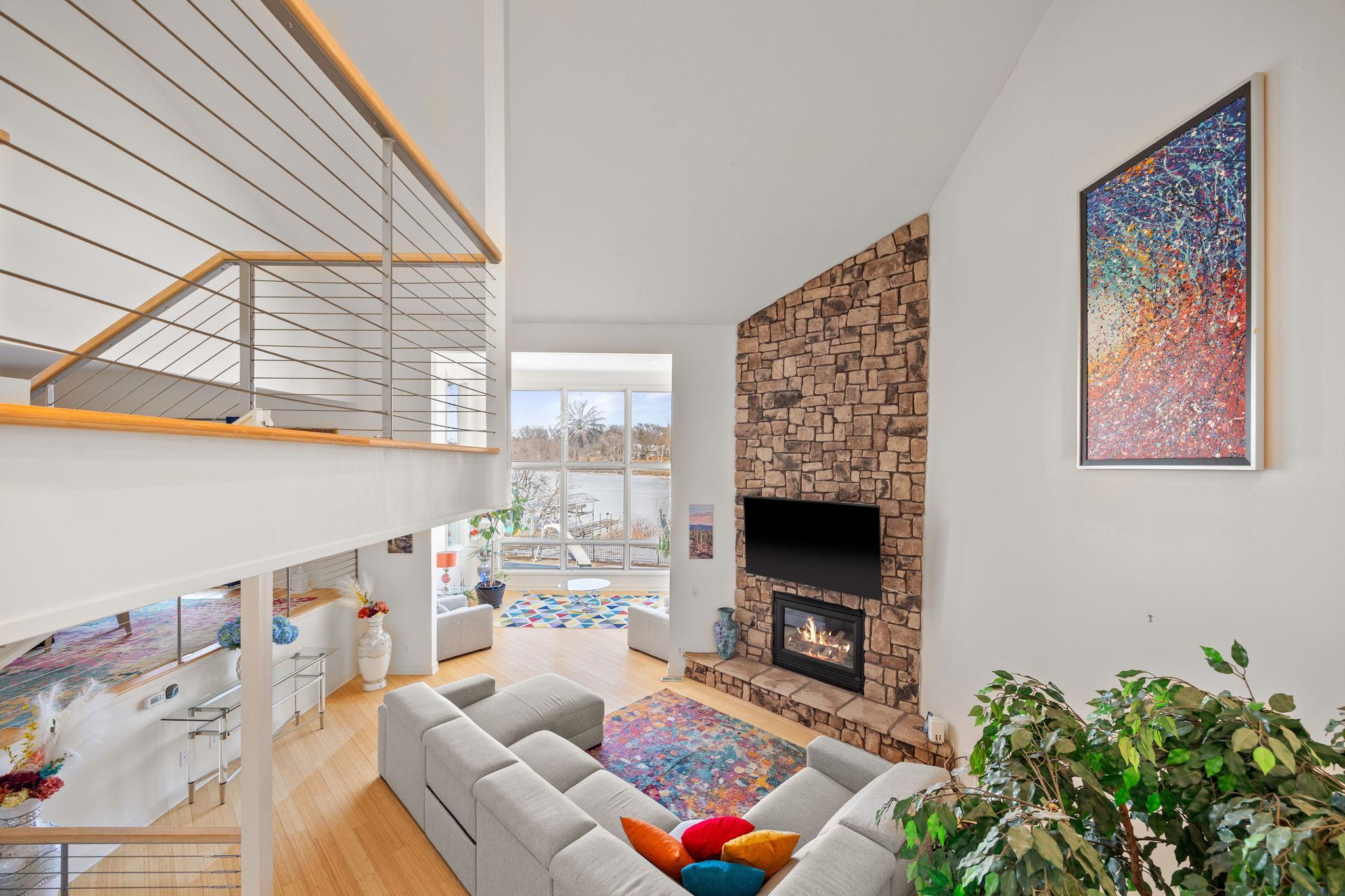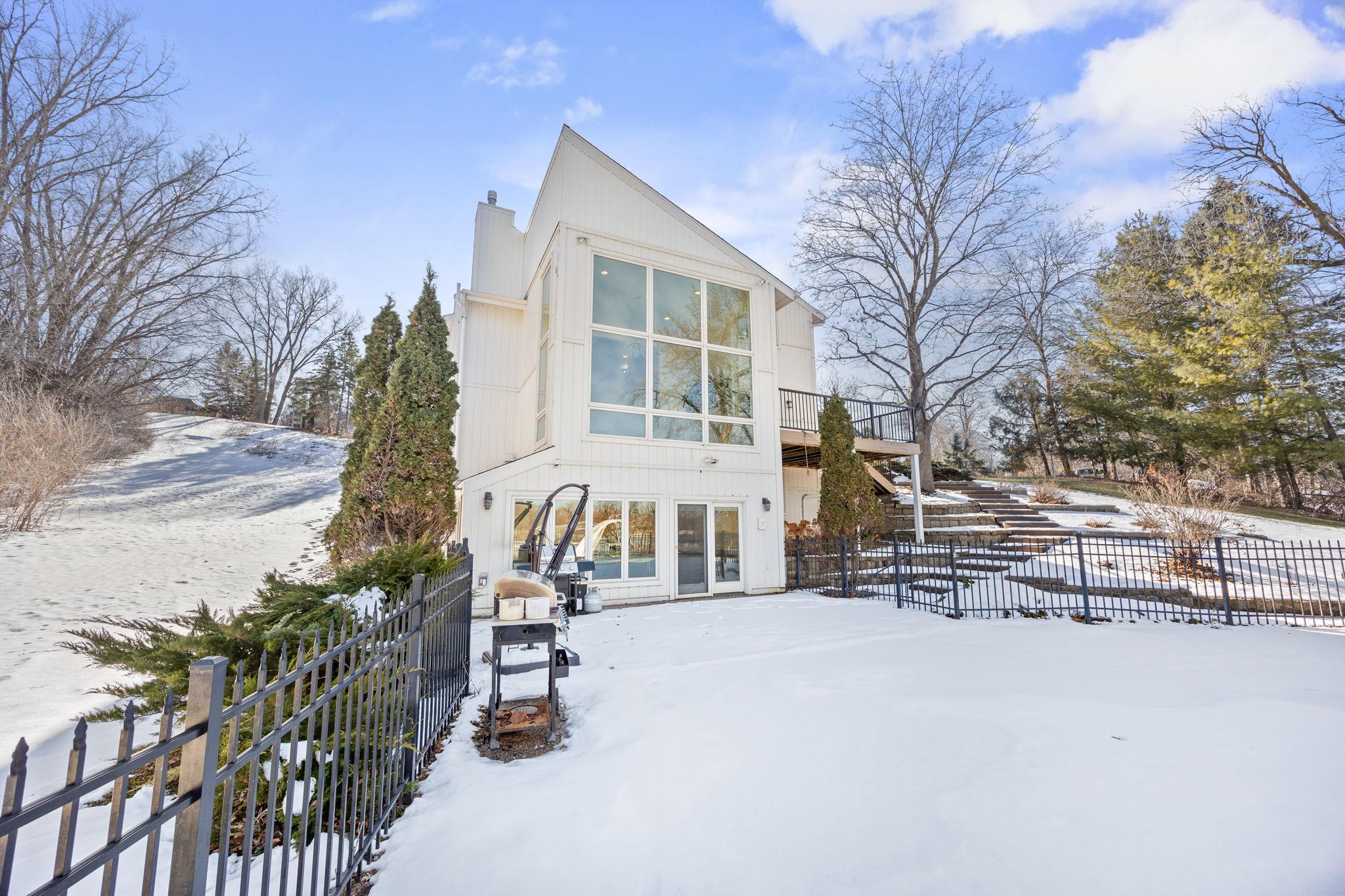 Tucked at the end of a quiet cul-de-sac, this architecturally designed lakefront property brings a private, resort-style feel right in the heart of the metro. From the moment you walk in, youre hit with natural light, soaring 20 ft ceilings, and uninterrupted views of the pool and lake from nearly every room.This home was built to entertain. Open-concept layout, multiple gathering spaces, and seamless indoor-outdoor flow make it ideal for hosting or just enjoying the space year-round.The kitchen is dialed in with a massive island, breakfast bar, recycled glass countertops, custom cabinetry, high-end appliances, and heated tile and bamboo floorseverything youd expect at this level.Upstairs, the primary suite feels like a private retreat with heated floors, a jetted tub, double vanity, and a walk-in shower.The lower level is set up perfectly with a large family room, wet bar, and a sun-filled bonus space that walks straight out to the poolthis is where summer hits different.Youve also got a spacious mudroom, dedicated home office, and a 4-stall insulated/heated garage with floor drains and two EV chargers. Solar panels already in place for added efficiency.If youve been waiting for something differentthis is it. Lake life, pool, privacy, and location all in one.