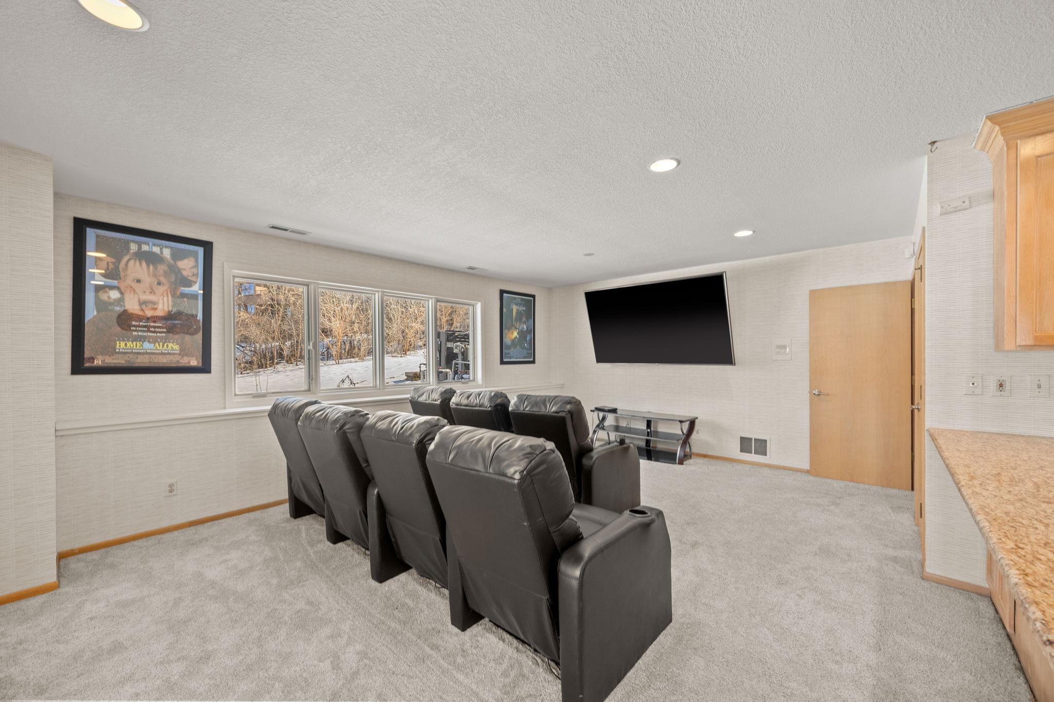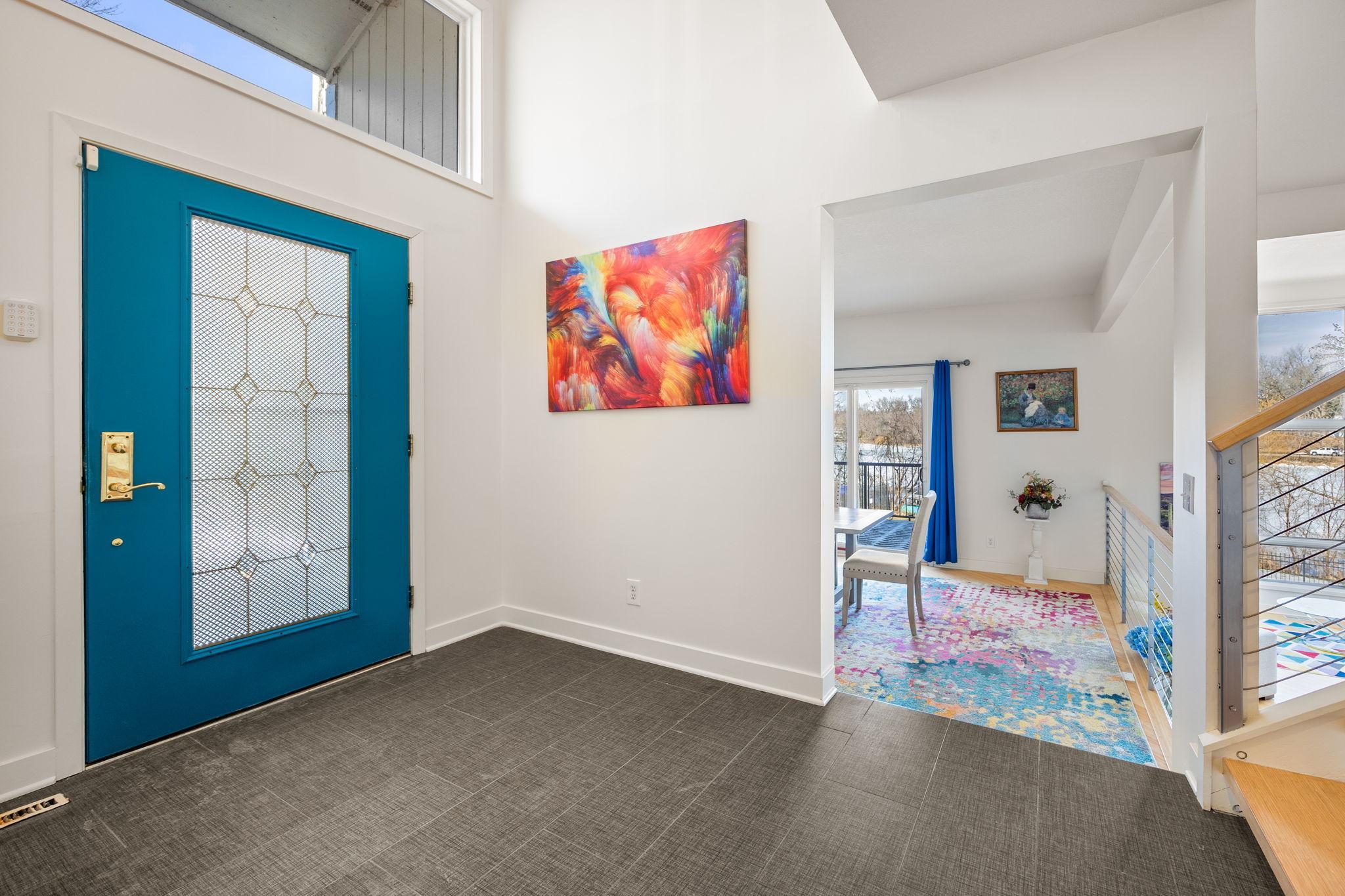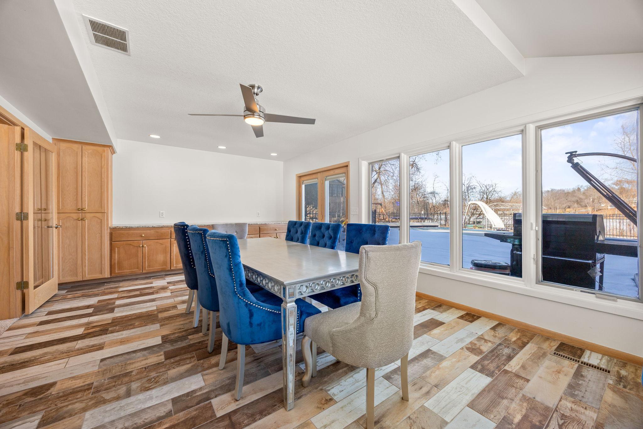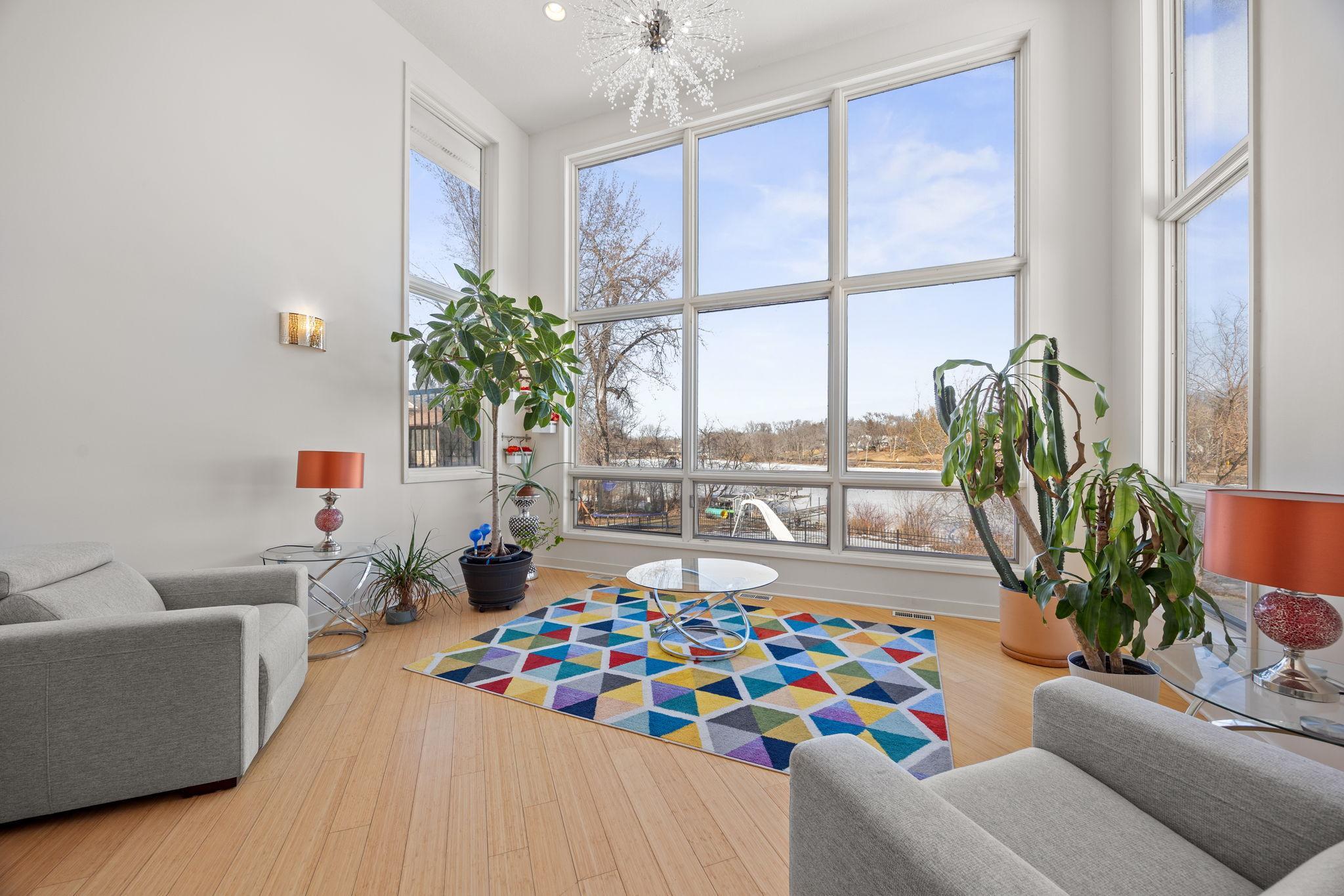 Tucked at the end of a quiet cul-de-sac, this architecturally designed lakefront property brings a private, resort-style feel right in the heart of the metro. From the moment you walk in, youre hit with natural light, soaring 20 ft ceilings, and uninterrupted views of the pool and lake from nearly every room.This home was built to entertain. Open-concept layout, multiple gathering spaces, and seamless indoor-outdoor flow make it ideal for hosting or just enjoying the space year-round.The kitchen is dialed in with a massive island, breakfast bar, recycled glass countertops, custom cabinetry, high-end appliances, and heated tile and bamboo floorseverything youd expect at this level.Upstairs, the primary suite feels like a private retreat with heated floors, a jetted tub, double vanity, and a walk-in shower.The lower level is set up perfectly with a large family room, wet bar, and a sun-filled bonus space that walks straight out to the poolthis is where summer hits different.Youve also got a spacious mudroom, dedicated home office, and a 4-stall insulated/heated garage with floor drains and two EV chargers. Solar panels already in place for added efficiency.If youve been waiting for something differentthis is it. Lake life, pool, privacy, and location all in one.