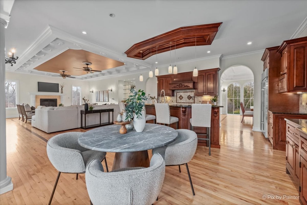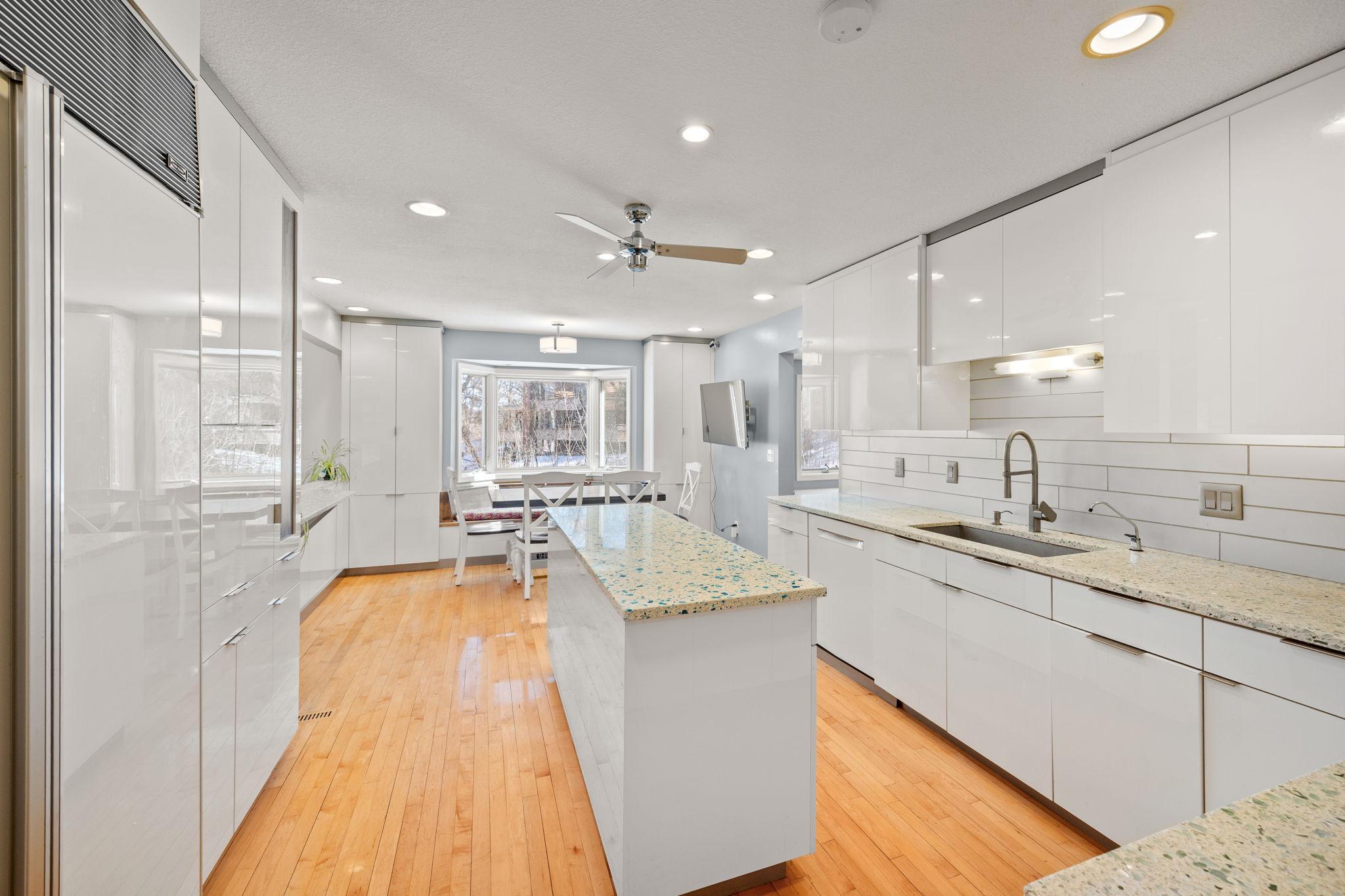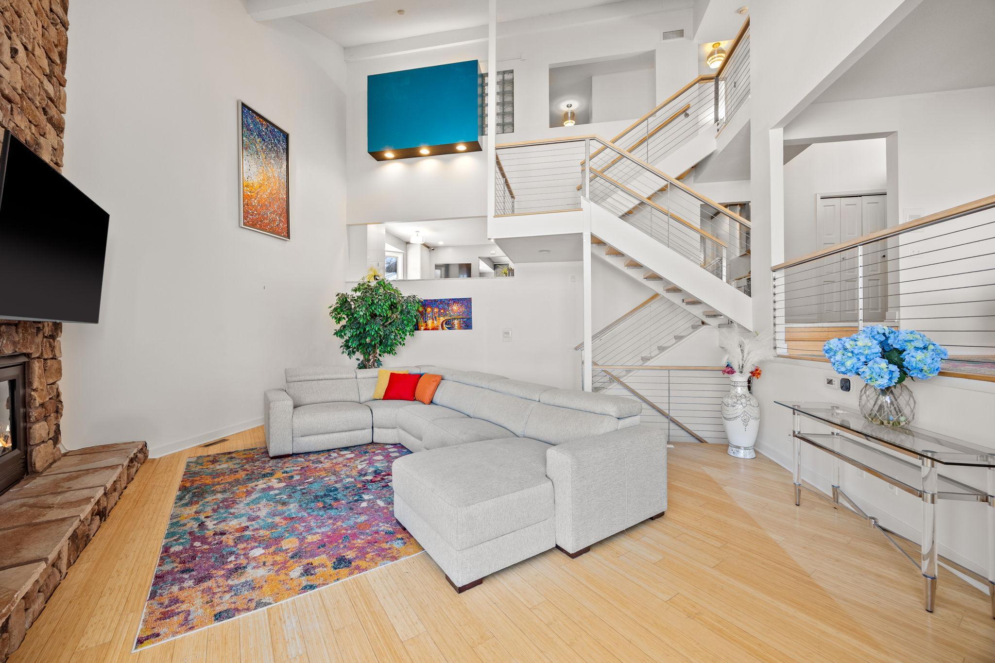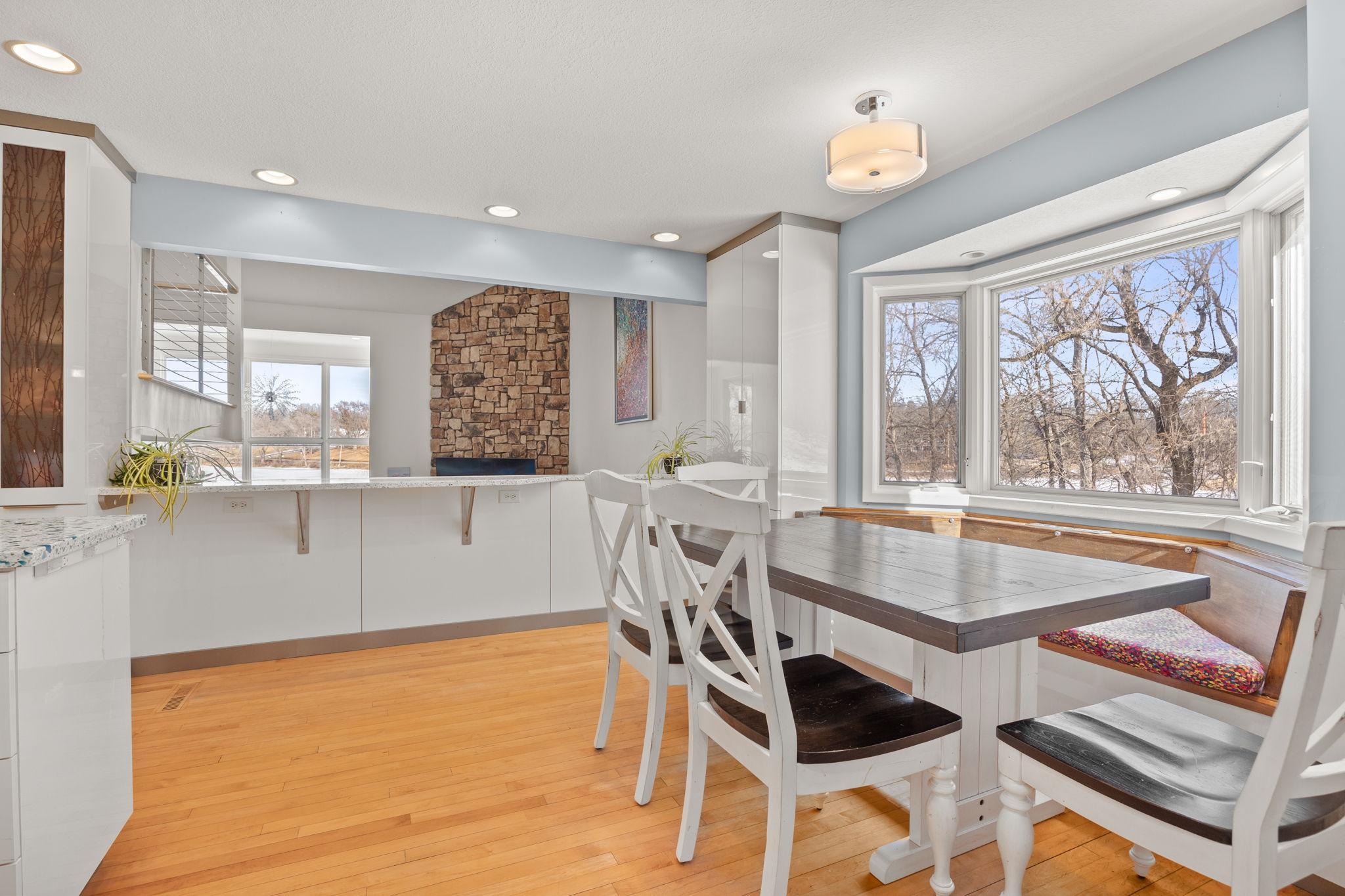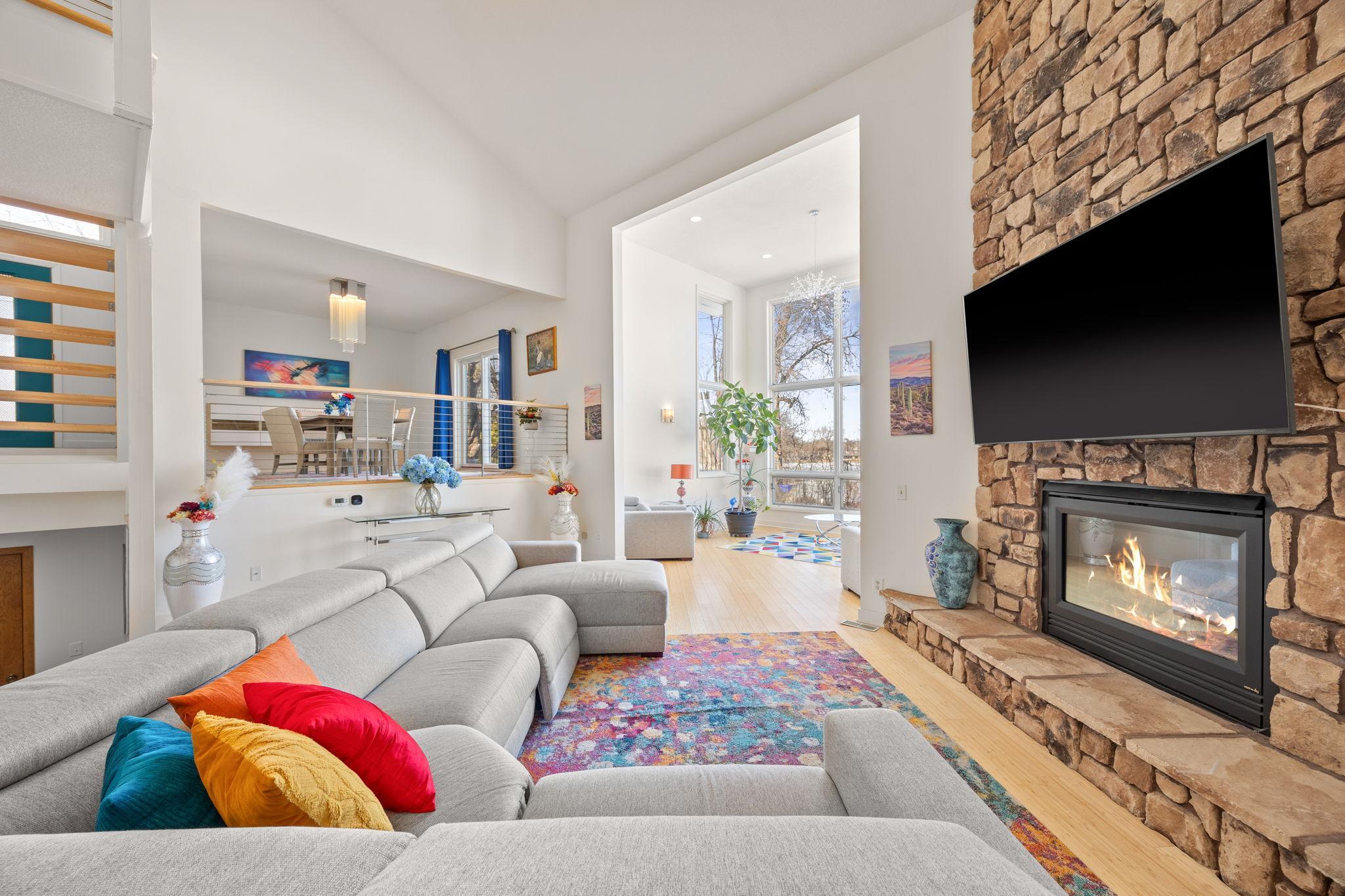 Tucked at the end of a quiet cul-de-sac, this architecturally designed lakefront property brings a private, resort-style feel right in the heart of the metro. From the moment you walk in, youre hit with natural light, soaring 20 ft ceilings, and uninterrupted views of the pool and lake from nearly every room.This home was built to entertain. Open-concept layout, multiple gathering spaces, and seamless indoor-outdoor flow make it ideal for hosting or just enjoying the space year-round.The kitchen is dialed in with a massive island, breakfast bar, recycled glass countertops, custom cabinetry, high-end appliances, and heated tile and bamboo floorseverything youd expect at this level.Upstairs, the primary suite feels like a private retreat with heated floors, a jetted tub, double vanity, and a walk-in shower.The lower level is set up perfectly with a large family room, wet bar, and a sun-filled bonus space that walks straight out to the poolthis is where summer hits different.Youve also got a spacious mudroom, dedicated home office, and a 4-stall insulated/heated garage with floor drains and two EV chargers. Solar panels already in place for added efficiency.If youve been waiting for something differentthis is it. Lake life, pool, privacy, and location all in one.