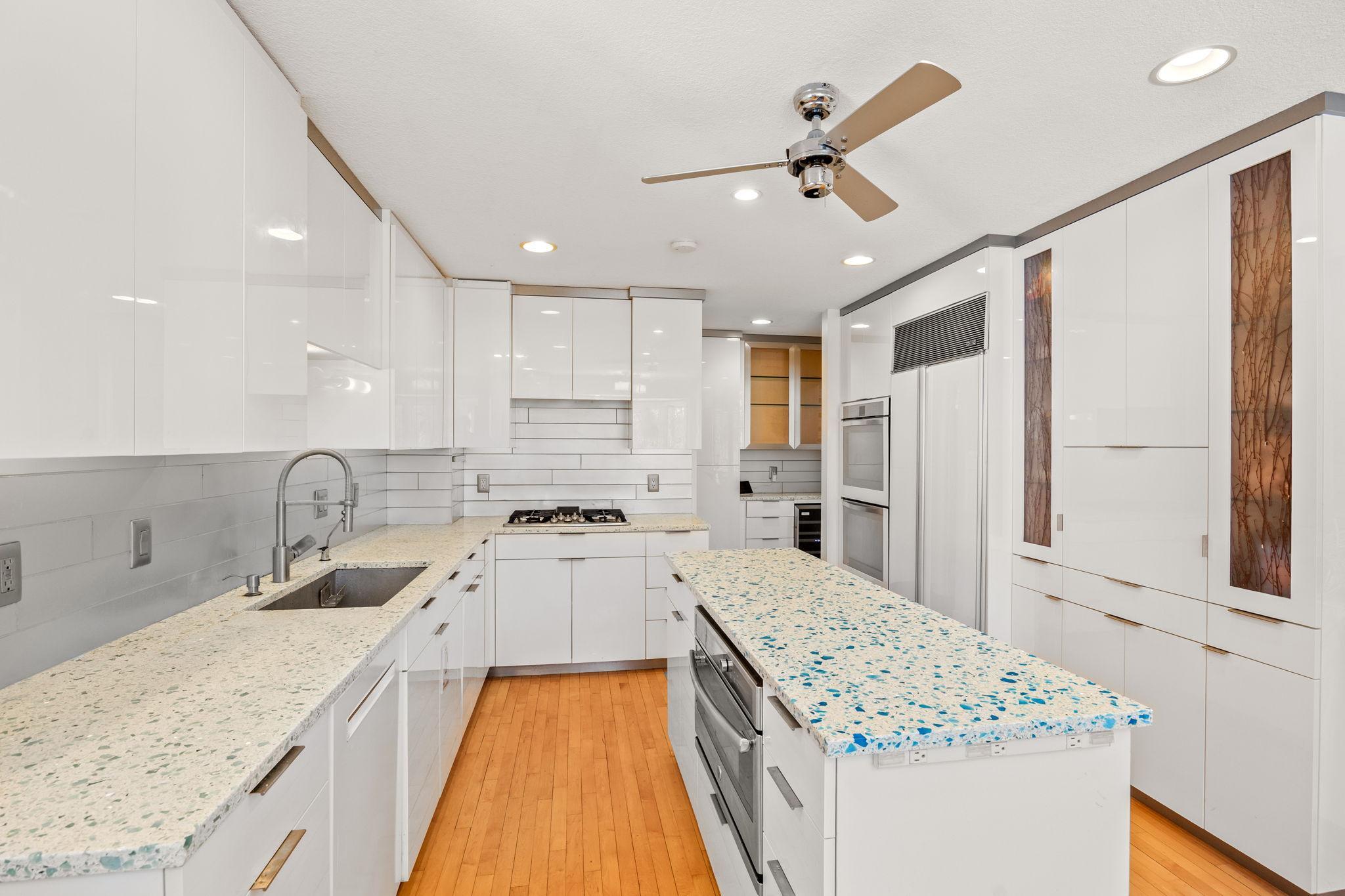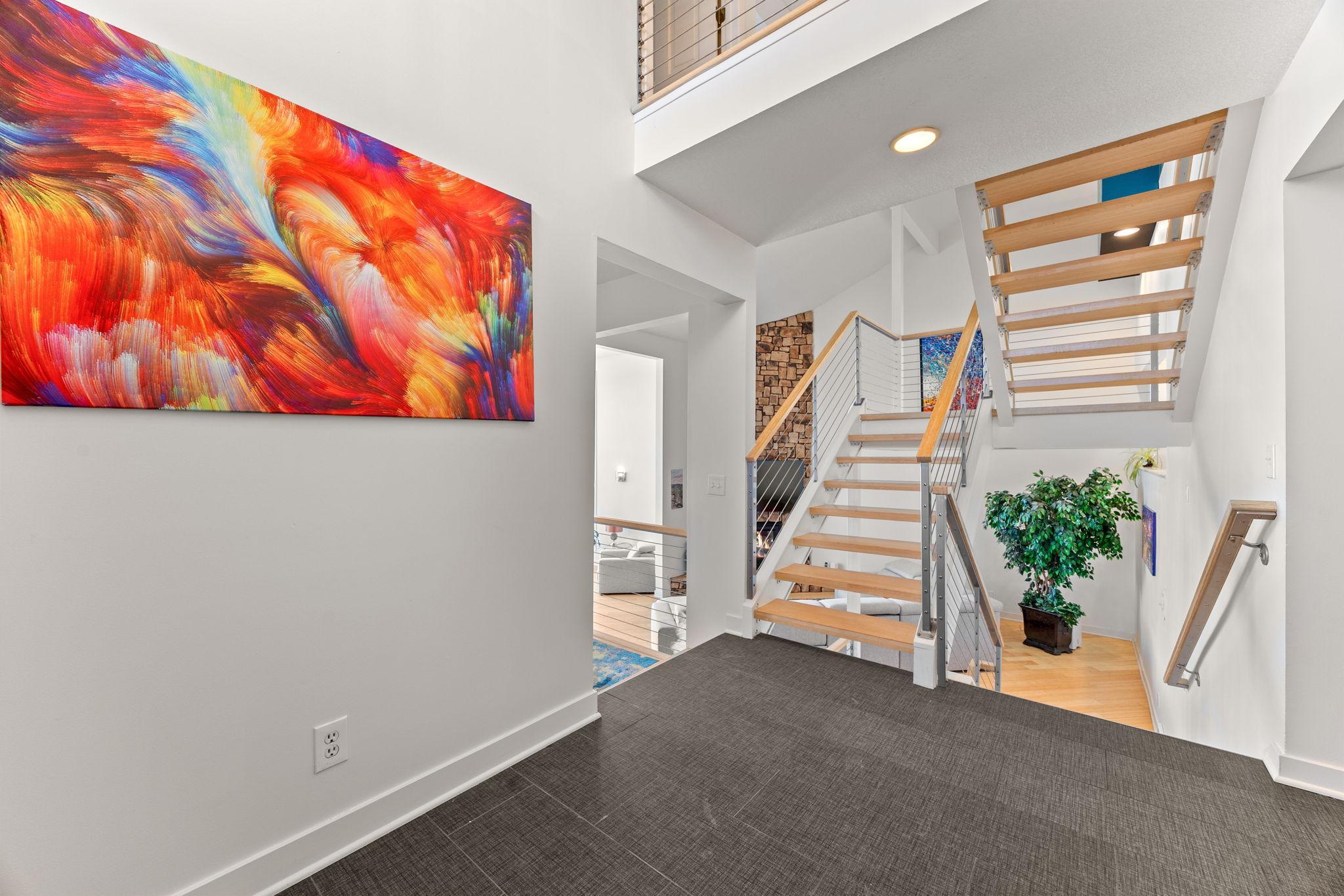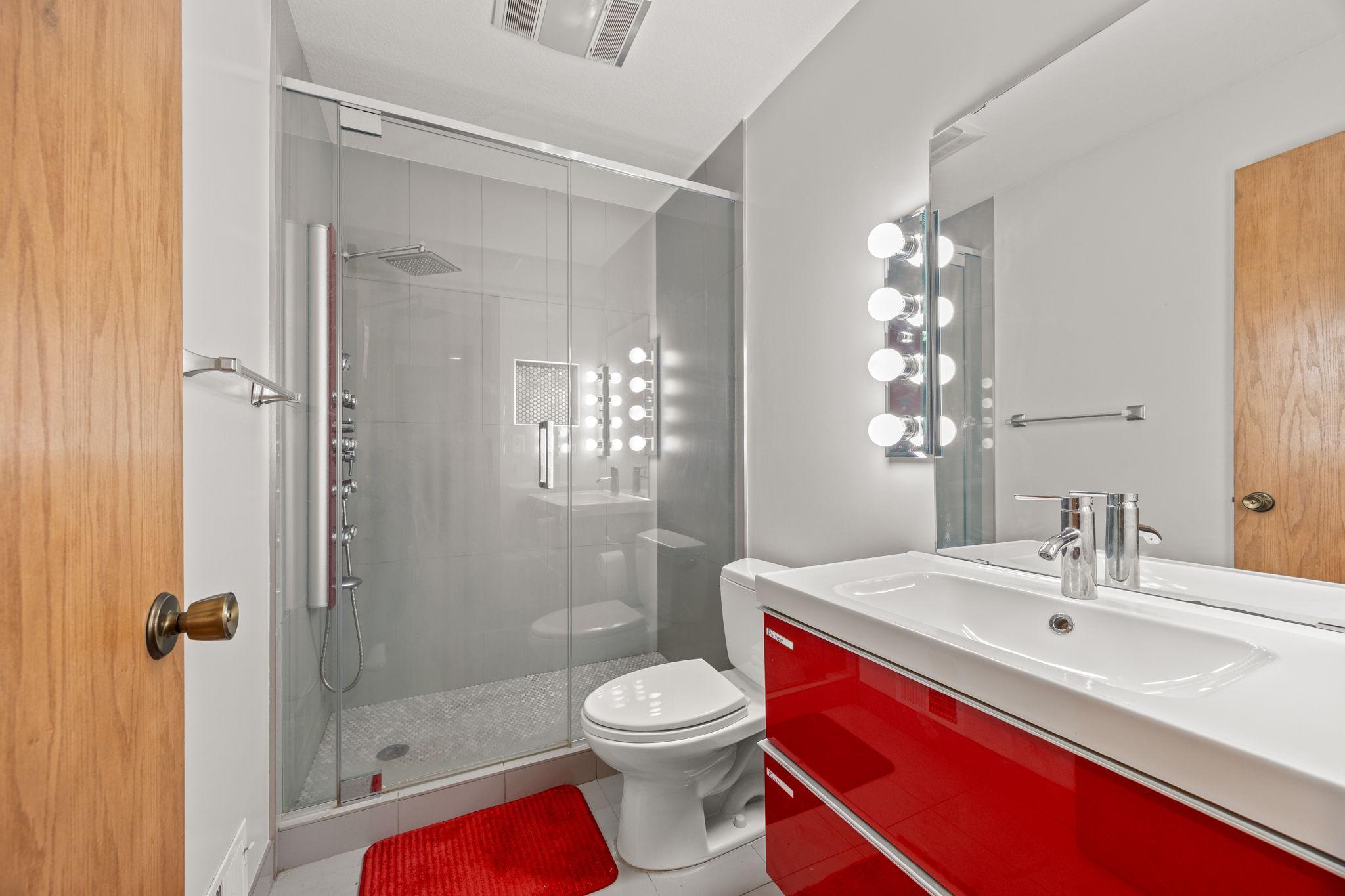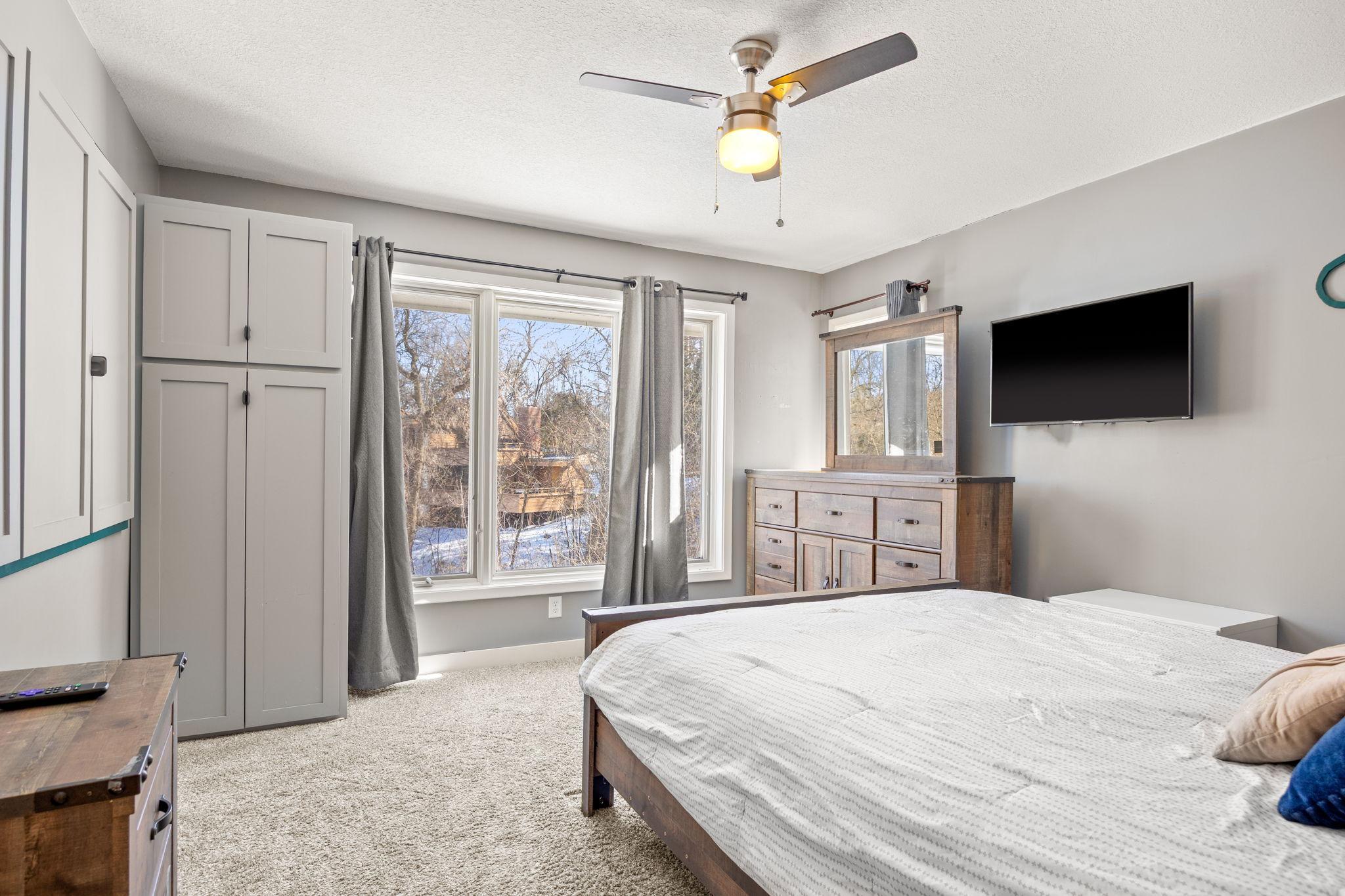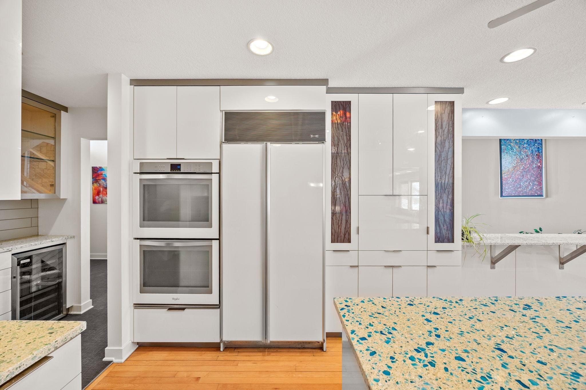 Tucked at the end of a quiet cul-de-sac, this architecturally designed lakefront property brings a private, resort-style feel right in the heart of the metro. From the moment you walk in, youre hit with natural light, soaring 20 ft ceilings, and uninterrupted views of the pool and lake from nearly every room.This home was built to entertain. Open-concept layout, multiple gathering spaces, and seamless indoor-outdoor flow make it ideal for hosting or just enjoying the space year-round.The kitchen is dialed in with a massive island, breakfast bar, recycled glass countertops, custom cabinetry, high-end appliances, and heated tile and bamboo floorseverything youd expect at this level.Upstairs, the primary suite feels like a private retreat with heated floors, a jetted tub, double vanity, and a walk-in shower.The lower level is set up perfectly with a large family room, wet bar, and a sun-filled bonus space that walks straight out to the poolthis is where summer hits different.Youve also got a spacious mudroom, dedicated home office, and a 4-stall insulated/heated garage with floor drains and two EV chargers. Solar panels already in place for added efficiency.If youve been waiting for something differentthis is it. Lake life, pool, privacy, and location all in one.