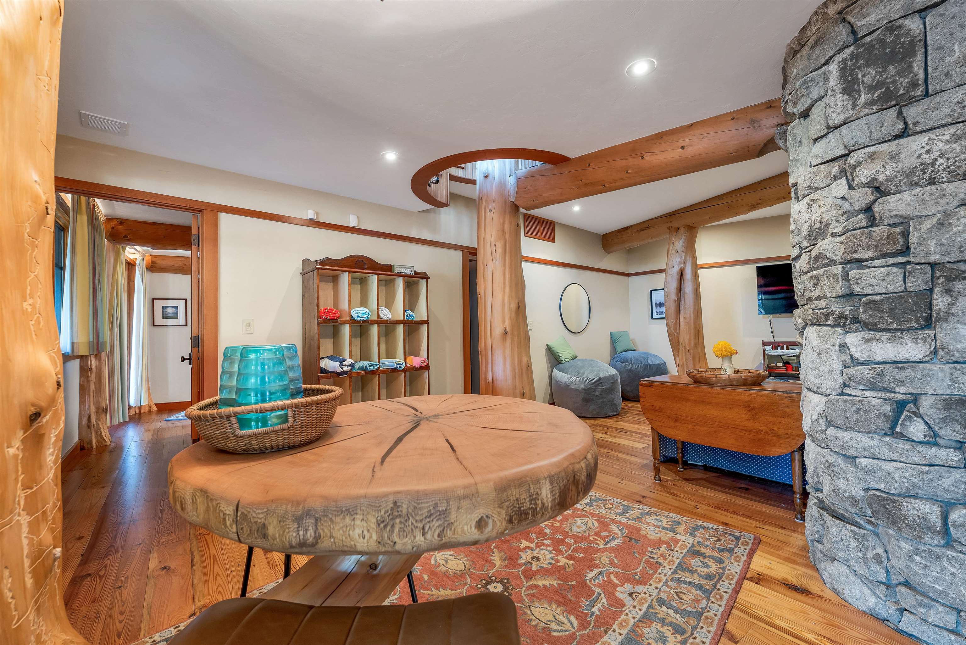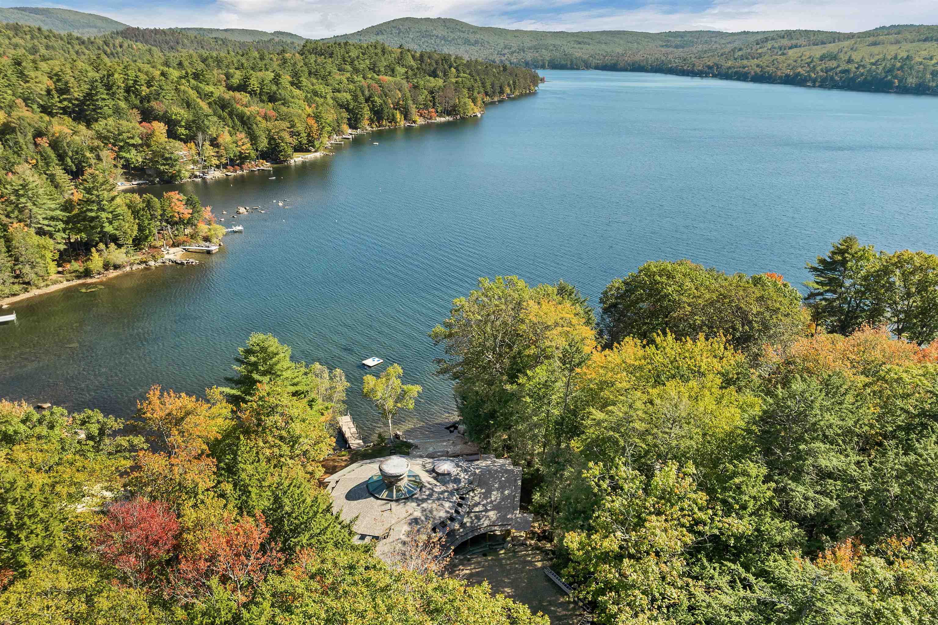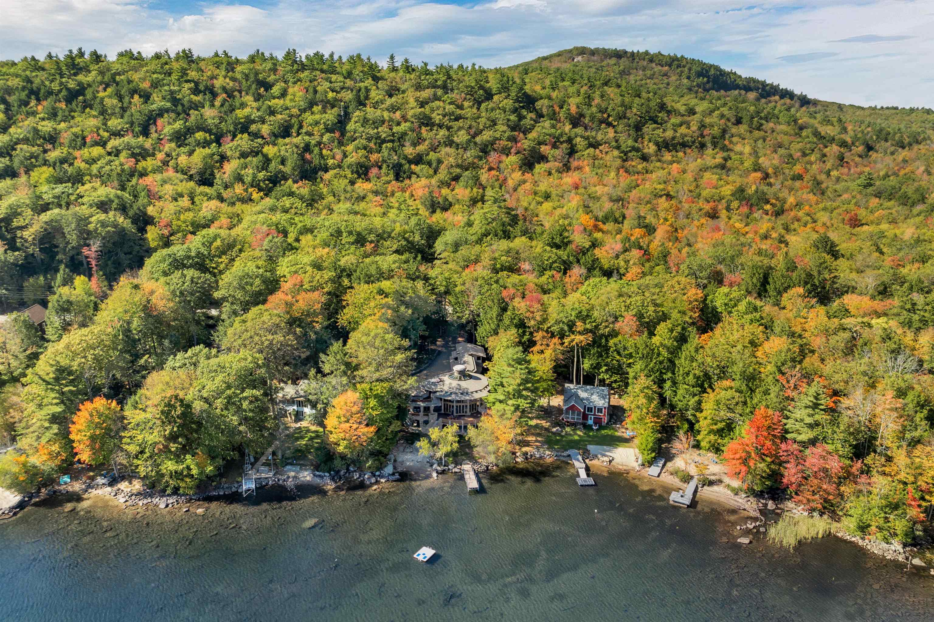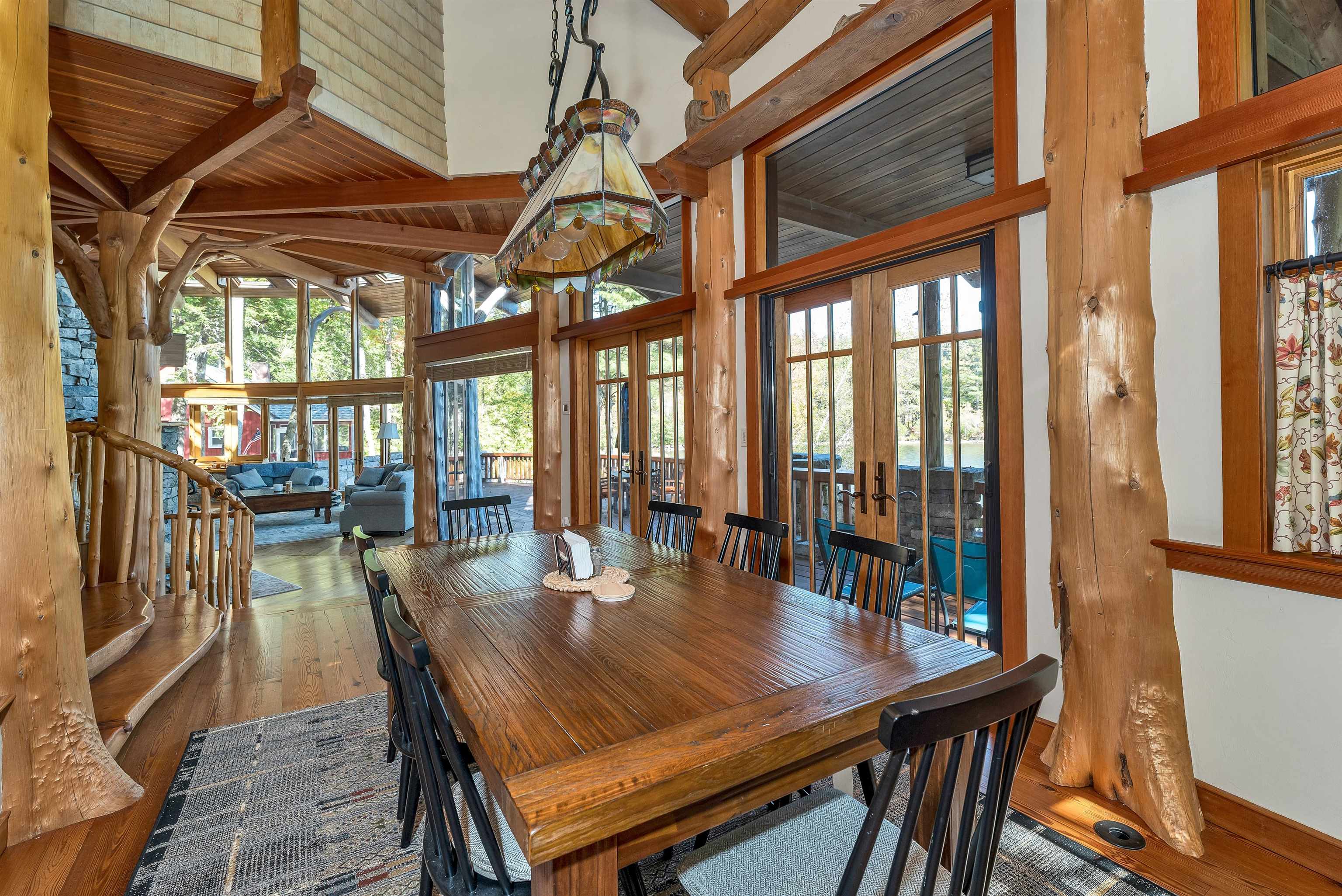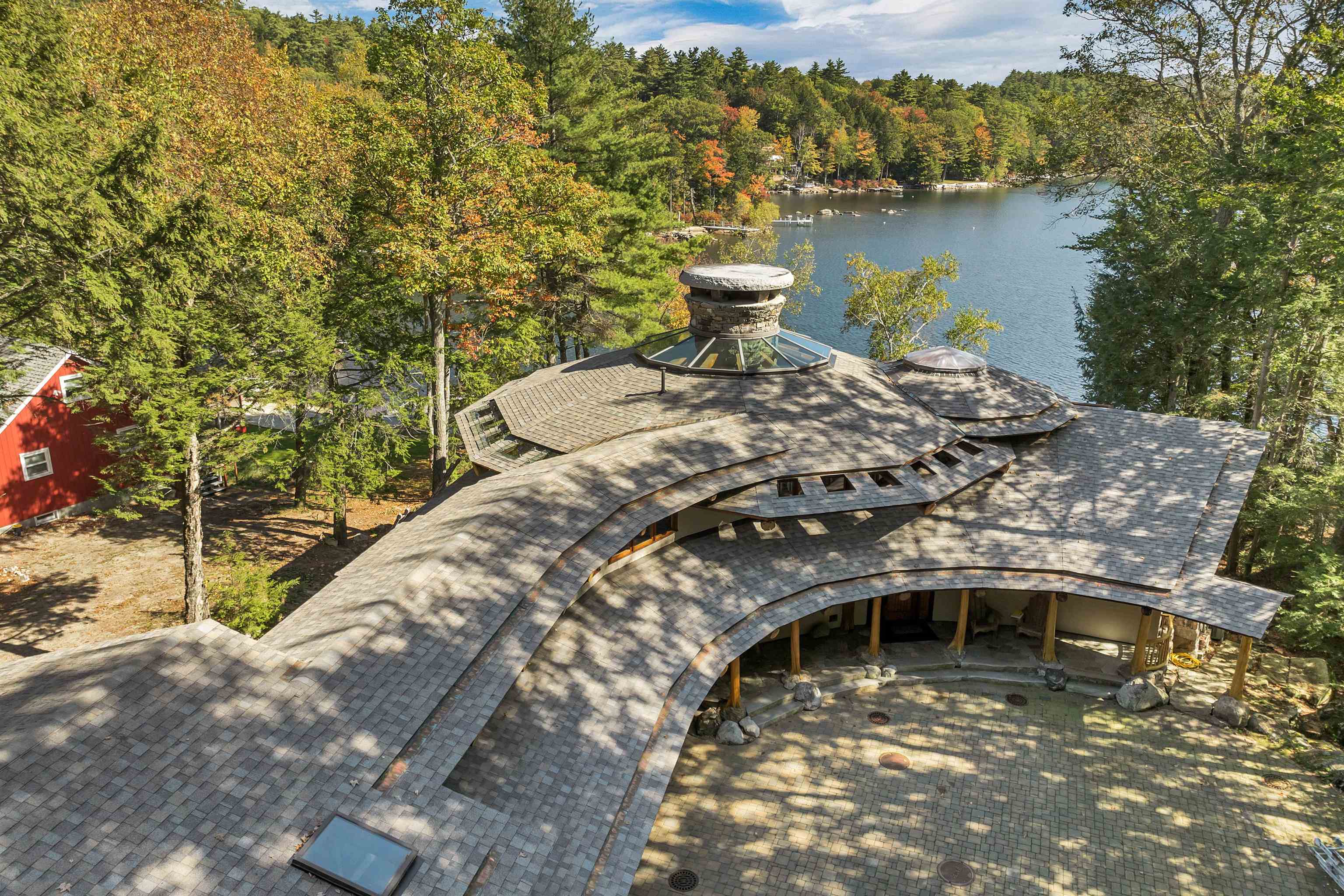 DONT MISS OPEN HOUSE ON 4/4 & 4/5/26! Spectacular ONE-OF -A- KIND Adirondack Stone & Timber style home set on the sandy shores of highly desired MERRYMEETING LAKE. Designed to be open/airy..at-one with the surrounding nature which begins at the *Great Room with 3 story stone fireplace & 20 windows. Features include a Chefs Kitchen with large island, exposed beams, cathedral ceiling & custom cabinets. Then there is the infamous special room known as The Birdhouse w/balcony appearing to be supported by a tree below. Each Bedroom has its own private bathroom. THE FOREST PATH leads to an in-law suite complete with a kitchenette, balcony & private entrance.. *Majestic South Easterly Lake Views, Dock, Raft & Sandy Beach. *Abuts 86 acres of conservation land. ARTISTIC MASTERPIECE/AMAZING CRAFTSMANSHIP ..This was the DREAM HOUSE of an Artist who SPARED NO EXPENSE in its construction.....estimated at 10 Million back in 2005. 1/- Million in MASONRY work alone. Current owners have since repaired/improved every aspect of this amazing property.......now truly in MOVE-IN CONDITION. AMONGST THE ATTACHMENTS IS A LIST OF UPDATES & FIXES MADE OVER THE PAST 3 YEARS & COMMON FEELINGS AND SENTIMENTS SHARED WRITTEN BY THE CURRENT OWNERS. Merrymeeting Lake is always a top rated NH lake known for its pristine crystal clear spring fed waters ideal for fishing, swimming & boating. NEW Durham is the gateway to the Lakes Region and a transition point between the Mountains & the Seacoast........ 90 /- minutes from Boston. No surprise that this property has been widely written about and previously been on the Realtor.com list of MOST POPULAR HOMES. Forgot to mention, the home features state of the art electronics, central air, an on-demand generator and a heated 2 care garage. Excellent Weekly Rental History..Many disappointed tenants that this special property may no longer be available to rent.