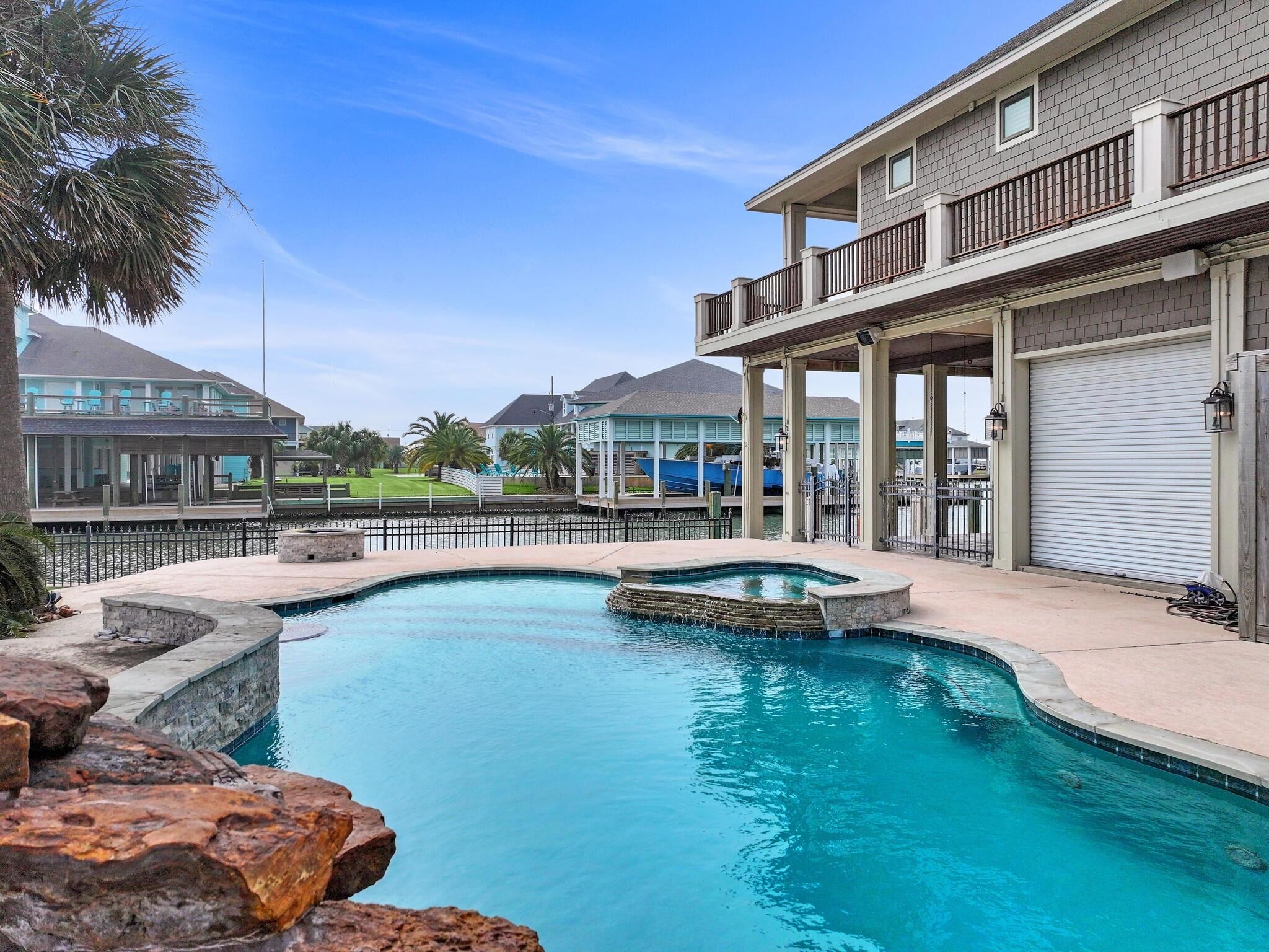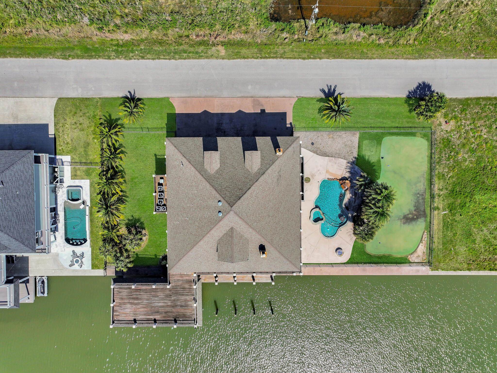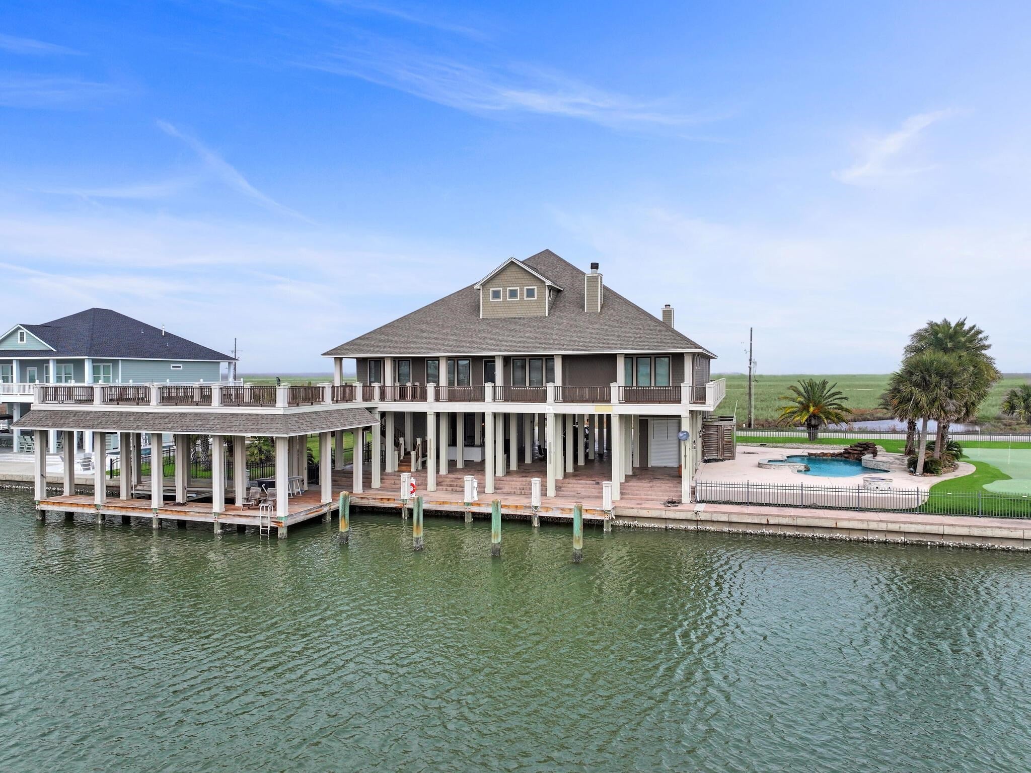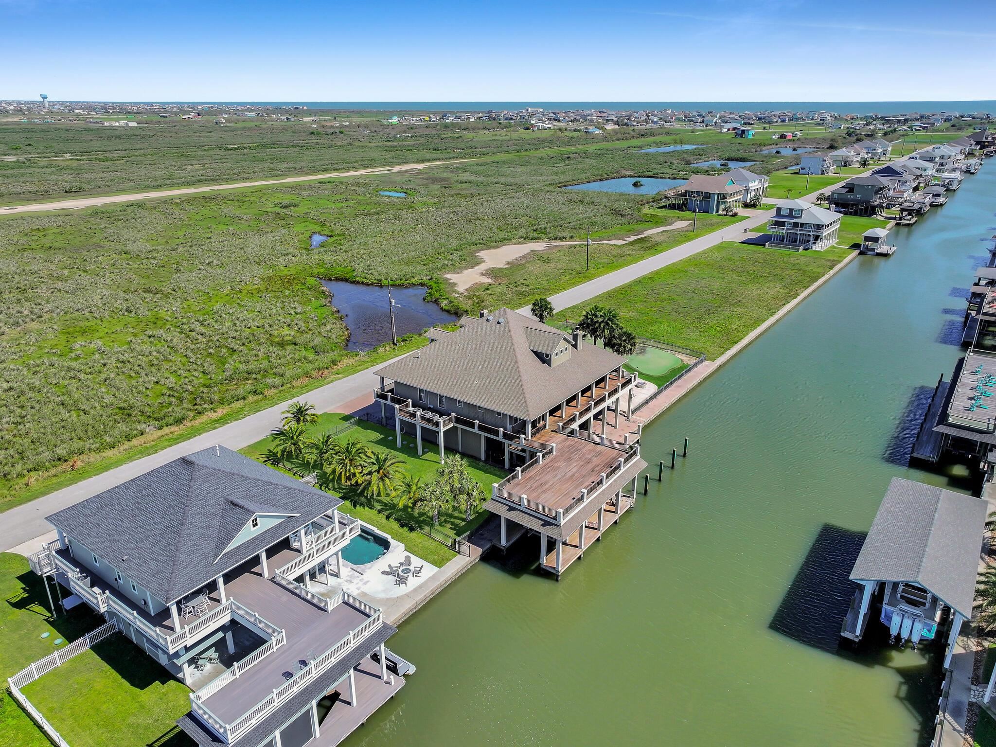 Prestigious custom-built home situated on two lots in the exclusive Waterways gated community, just minutes from the beach. Designed for both luxury and lifestyle, this stunning property features a private boat dock with lift, elevator access, and a 3,000-bottle wine room. Enjoy a dedicated home theater, a 9 hole putting green, and expansive outdoor living with a large patio, wrap-around porch. The gourmet kitchen is a showstopper with Viking ovens, granite countertops, and custom cabinetry throughout. High-end finishes, hardwood floors, and thoughtful details elevate every space. Whether youre looking for a full-time residence or a weekend retreat, this home delivers coastal living at its finest.