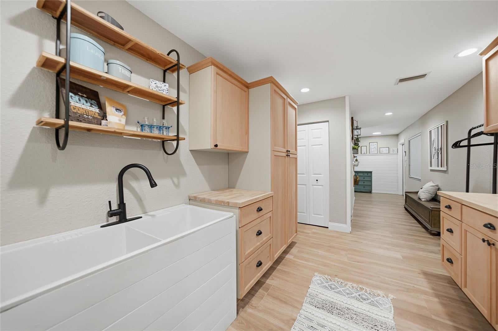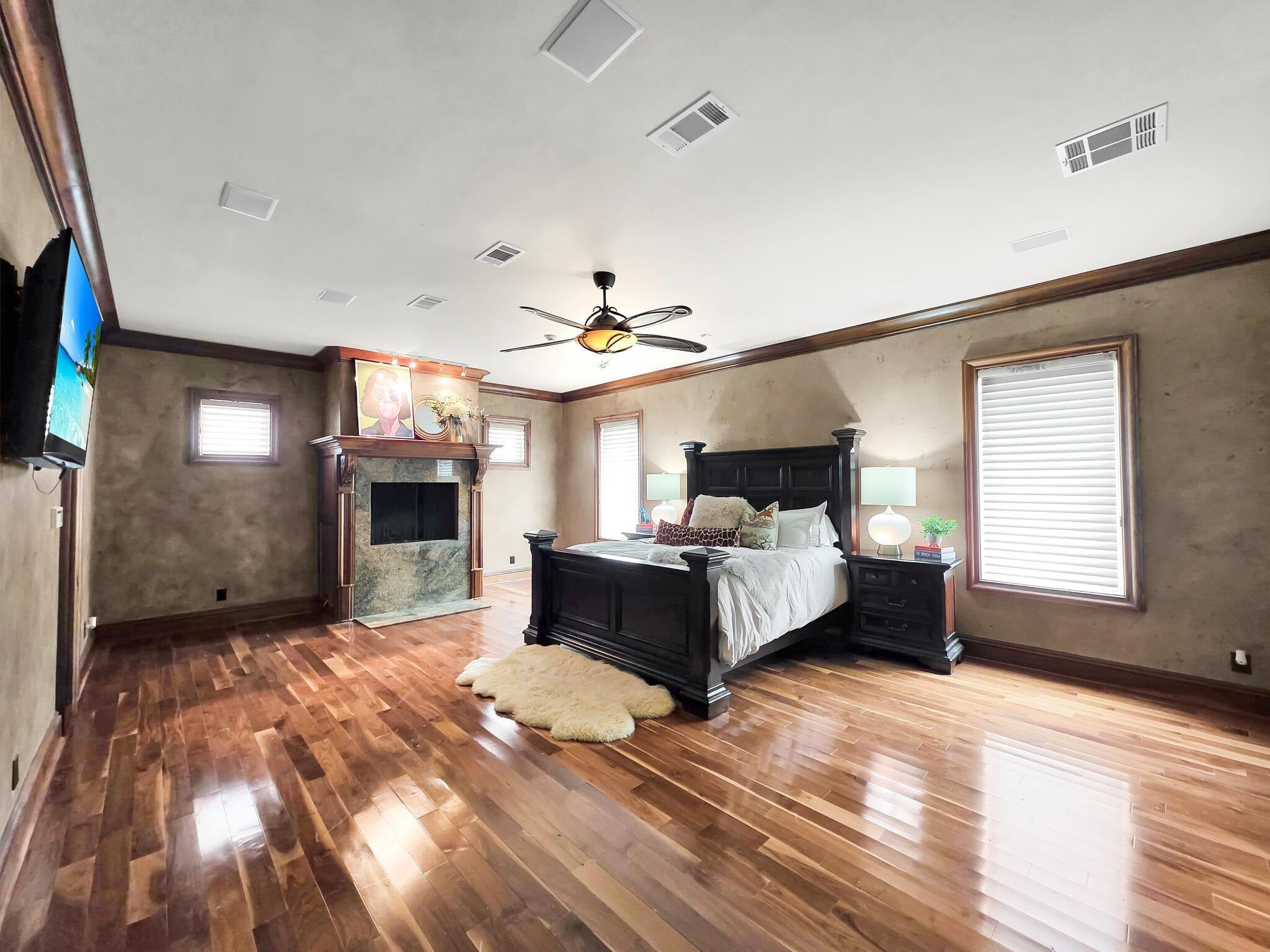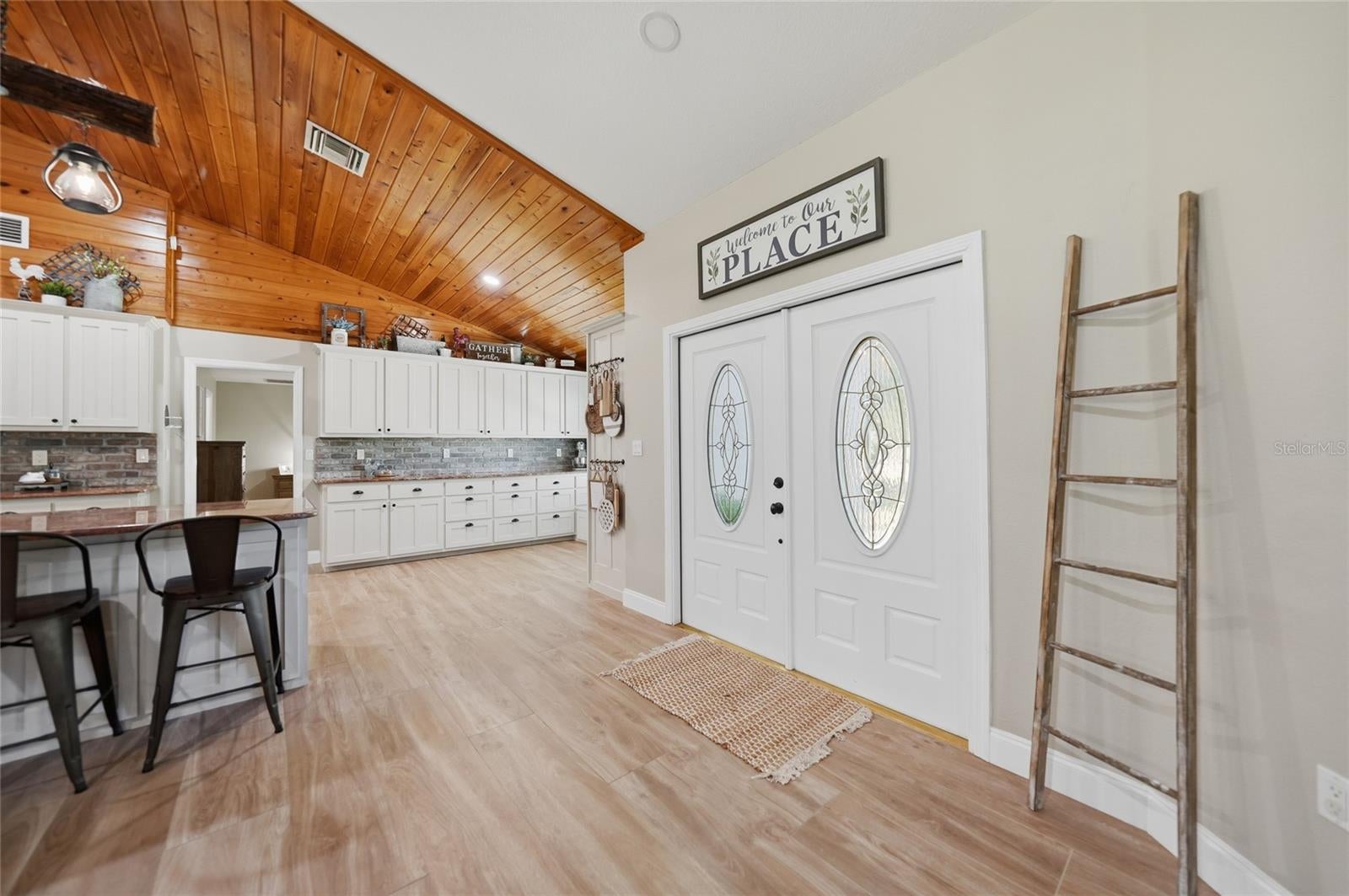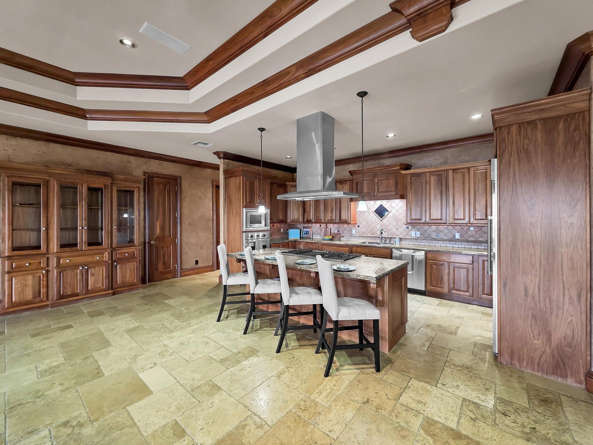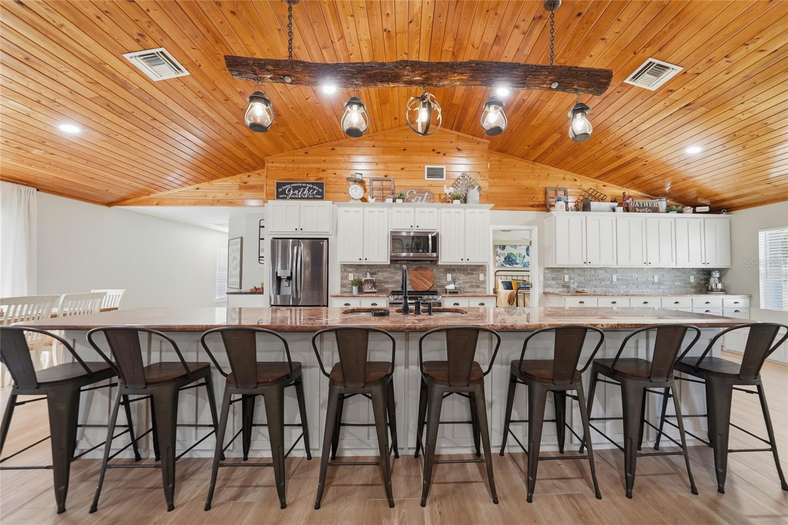 Welcome to your private country estate, perfectly situated on 12.57 acres of picturesque land designed for both luxury living and functionality. As you arrive, a long driveway leads you to this impressive two-story home offering 4,730 square feet under air and over 6,400 total square feet. A screened and covered front entry welcomes you in through grand double doors, setting the tone for the elegance found throughout. Inside, youll find a spacious open floor plan featuring luxury plank tile flooring, soaring ceilings with beautiful wood accents, and an abundance of natural light pouring in through French doors that showcase peaceful views of the backyard. The living area is centered around a striking wood-burning fireplace with custom accent shelving, creating a warm and inviting focal point for gathering and entertaining. The bakers kitchen is truly the heart of the home, designed with both style and function in mind. A massive 16-foot island provides seating for eight, complemented by extensive cabinetry with all lower cabinets featuring convenient pull-outs or drawers. Enjoy ample counter space for cooking and baking, black stainless steel appliances, and an oversized pantry complete with pull-out drawers for maximum organization. The primary suite offers a luxurious retreat with tall ceilings, French doors, and a thoughtfully designed en suite bathroom featuring dual sinks and a walk-in shower. The impressive 26-foot-long walk-in closet with built-ins provides exceptional storage. A guest bedroom offers the flexibility of a second primary suite with its own private bathroom and walk-in closet, while all additional bedrooms are generously sized with walk-in or built-in closets. A dedicated office space includes dual built-in desks, storage, and filing cabinetsperfect for working from home. The well-appointed laundry room offers extensive cabinetry, counter space, a double bowl mop sink, and the convenience of an additional full bathroom. Upstairs, youll find additional bedrooms sharing a bathroom along with a large living or theater area ideal for entertaining or relaxing. The exterior of the property is just as impressive, featuring a four-car attached garage along with a detached two-car garage and workshop. The land is thoughtfully laid out with cross fenced pastures surrounding a large pond, making it ideal for animals or agricultural use. Additional features include an artisan well, an 1,850 square foot concrete pad for storage, and a second power pole with separate service and RV hookup with additional septic tank. This home is loaded with upgrades, including two recently replaced HVAC units, a whole-home reverse osmosis system for exceptional water quality, and beautifully updated bathrooms throughout. Whether youre looking for space to spread out, bring animals, or simply enjoy peaceful country living, this extraordinary property offers it all. Schedule your private showing today!