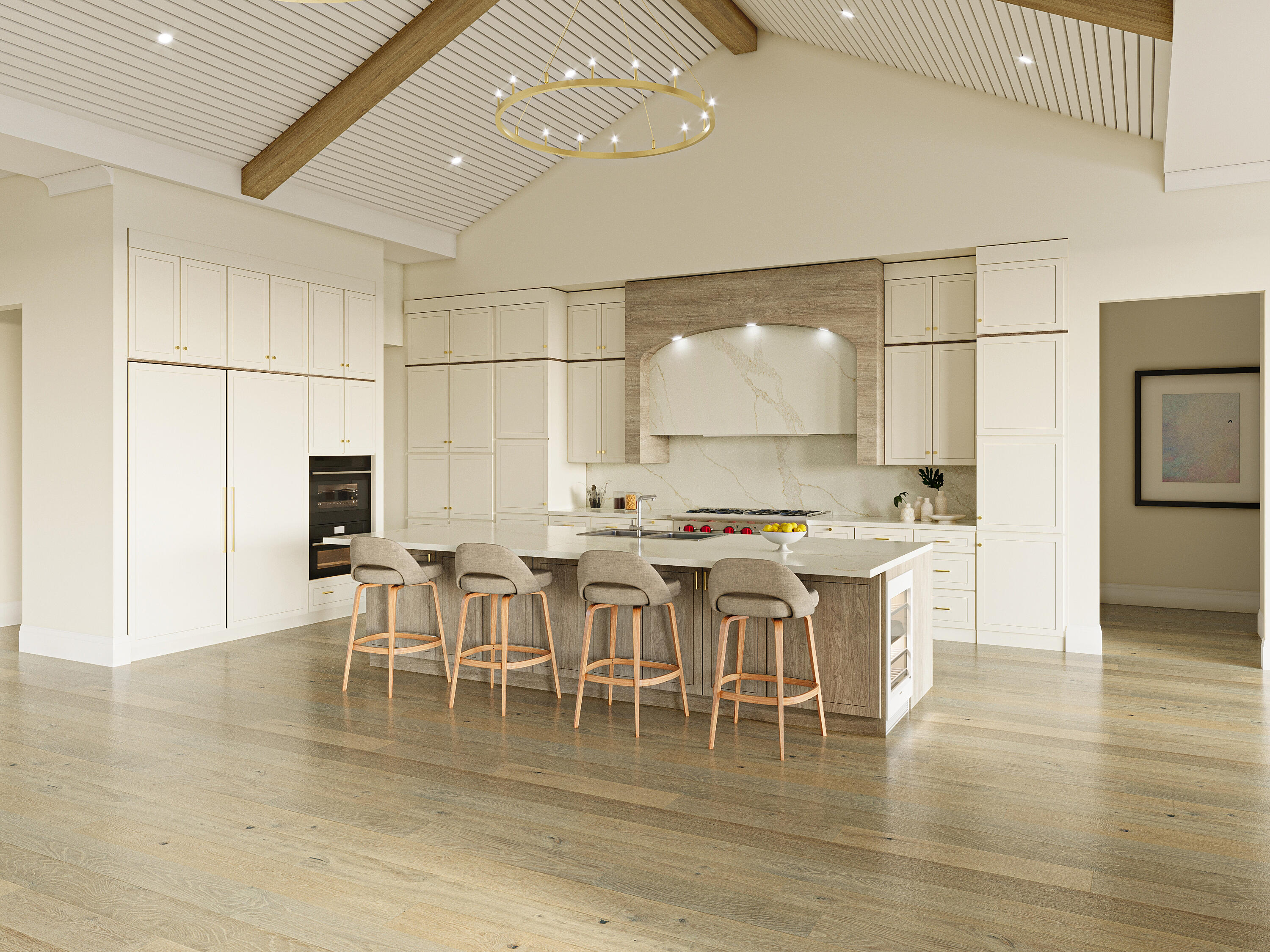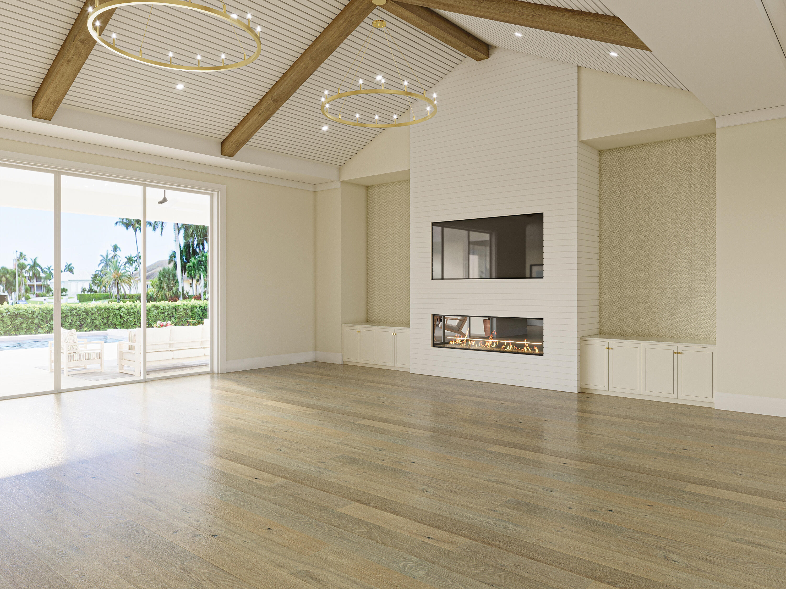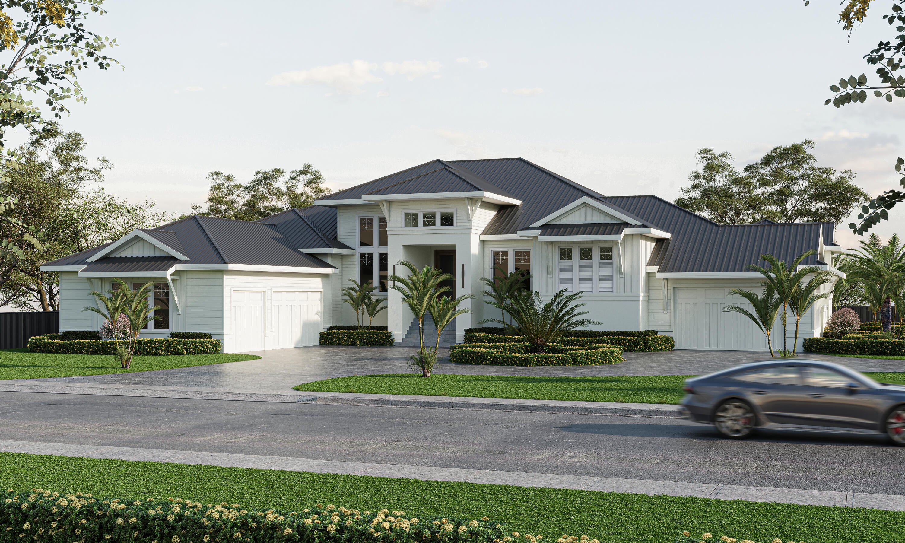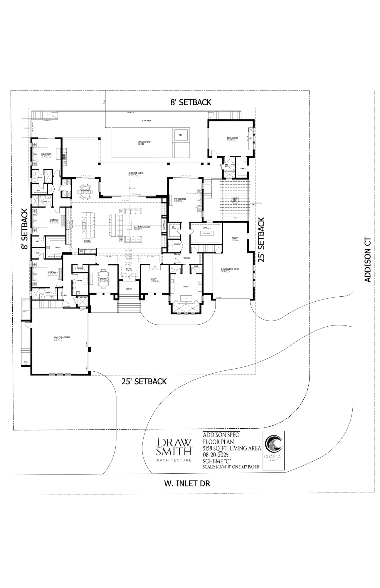 Pre-construction designer coastal estate conceived for open-plan luxury living on an expansive 0.49-acre homesite. Offering approximately 5,473 SF A/C 8,193 SF total, this 5 Bed 6.5 Bath residence delivers exceptional scale, privacy, and architectural presence in the prestigious Estates section of Marco Island. Featuring 18-foot volume ceilings, wood beam tray ceilings, and a standing-seam metal roof, the refined coastal exterior blends board-and-batten, horizontal Hardie siding, and stucco--creating a timeless architectural profile with modern coastal elegance. The dramatic 30 x 25 great room anchors the open-concept layout, highlighted by a striking interior linear fireplace and flowing effortlessly into a dine-in chefs kitchen overlooking an expansive lanai and resort-style pool. The kitchen is appointed with Sub-Zero and Wolf appliances, a statement island with sink and dishwasher, 48-inch cooktop, walk-in pantry, and flexible dining spaces suited for both everyday living and elevated entertaining. All bedrooms are en-suite, offering privacy and comfort for family and guests. The primary suite is envisioned as a private retreat, featuring dual oversized closets, a boutique-style dressing room with center island, secondary walk-in closet, dedicated laundry, attached study, and a secluded private courtyard with pergola and firepit--creating a serene, resort-inspired escape. A separate wing accommodates the remaining four en-suite bedrooms and includes a second dedicated laundry for added convenience. Outdoor living is a defining feature, highlighted by a 71-foot covered lanai, resort-style pool and spa, and a fully equipped pool house (approx. 335 SF) with wet bar, refrigerator, sink, storage, and full bath--ideal as a guest cabana, entertaining pavilion, or private retreat. A pavered circular drive, generous motor court, and lush tropical landscaping enhance both arrival and privacy. Car enthusiasts will appreciate garage capacity for up to six vehicles across two structures, including additional workshop space. Additional features include a private elevator, tankless water heater, 500-gallon buried LP gas tank, whole house generator readiness and a hollow-core foundation with concrete slab floor providing access to an immense walk-in storage area beneath the home. Designer-selected fixtures, finishes, and materials will be thoughtfully curated throughout, with a detailed specifications package available outlining the level of quality and craftsmanship to be delivered. Built by Coastal Build LLC, led by Matt Barhoum, a respected Marco Island luxury builder known for crafting distinctive high-end coastal residences with exceptional attention to detail, this offering represents a rare opportunity to secure a newly built estate of this scale and caliber in one of Marco Islands most sought-after neighborhoods.