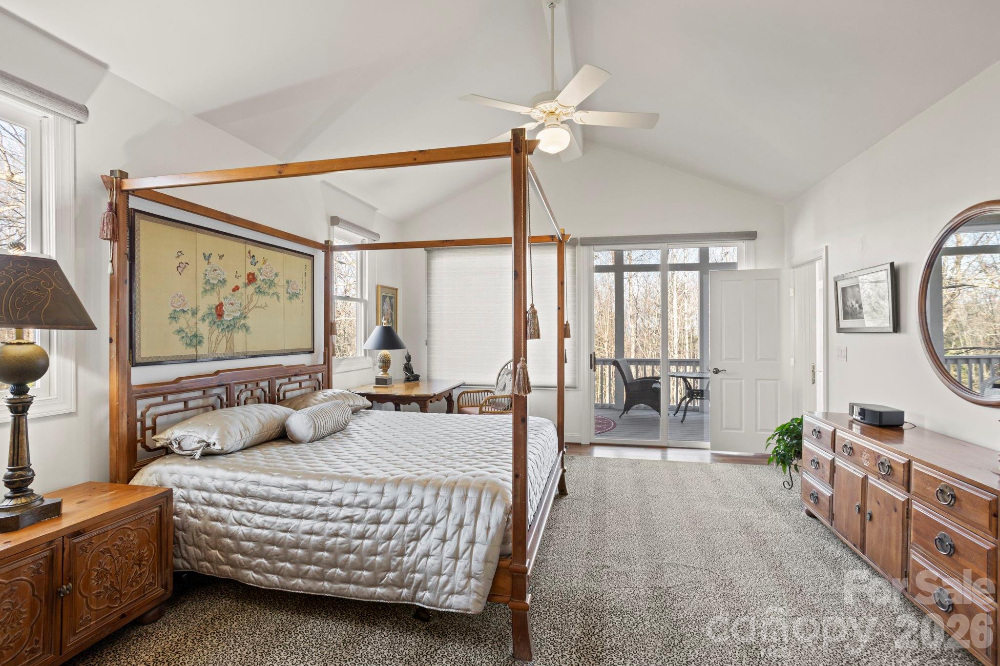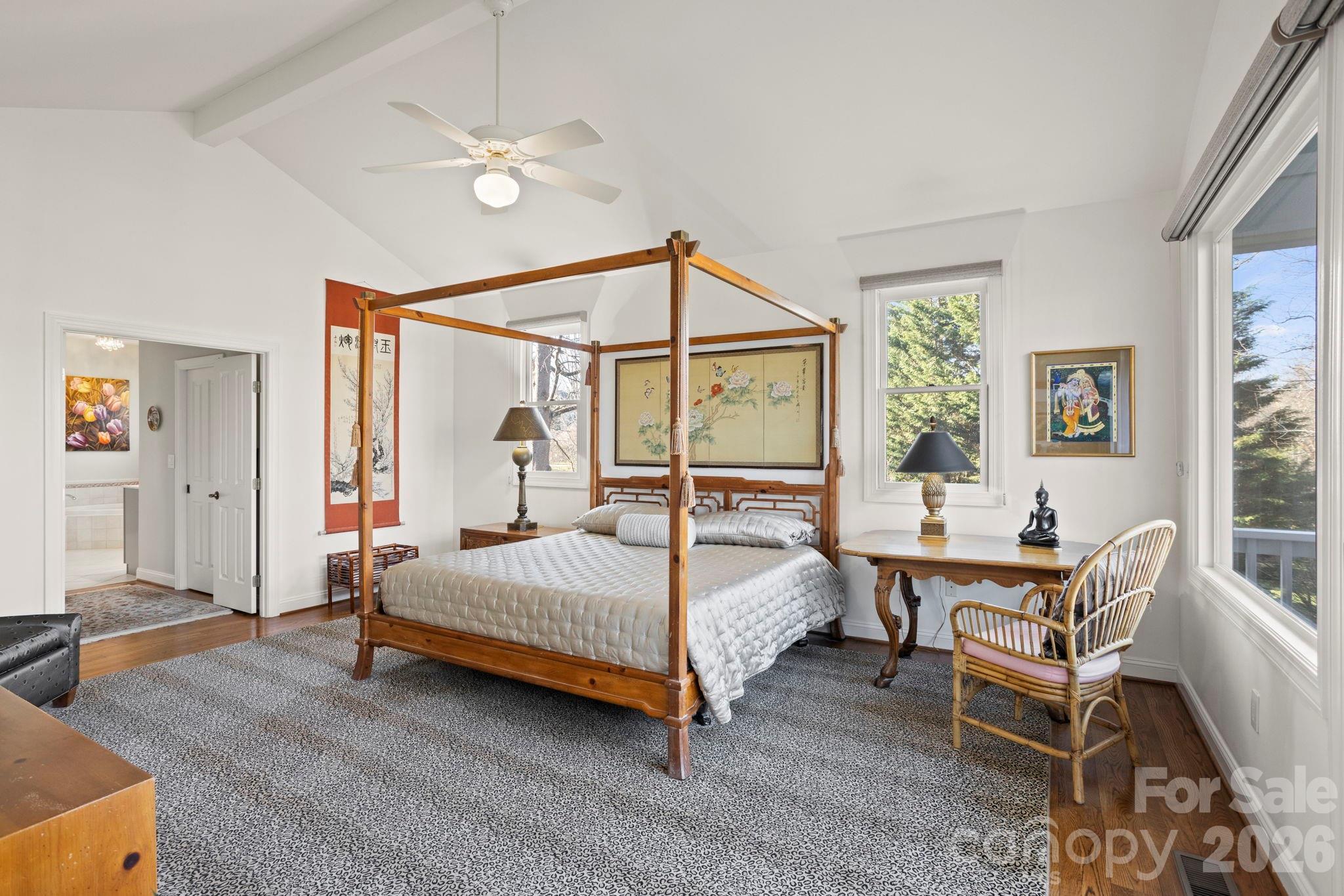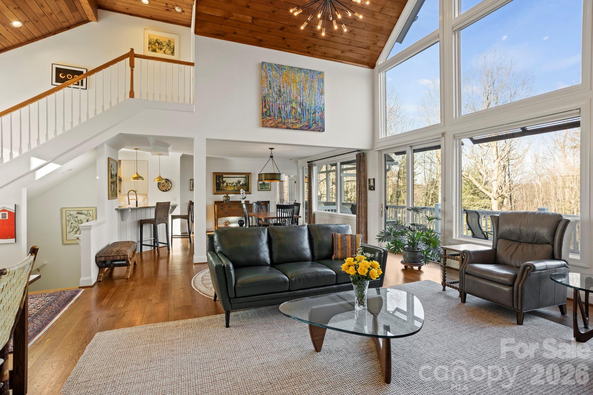 A Stunning Private Mountain Retreat in Prestigious Kenmure. Exceptional living awaits in this stunning home, gracefully situated on over an acre of pristine, professionally landscaped grounds in one of the most desirable sections of Kenmure, a gated golf course community. Backing to a protected conservancy, this property offers an extraordinary level of privacy in a truly majestic setting. From the moment you arrive via the level paver driveway, youll be captivated by the homes natural beauty and serene surroundings. Inside, the main level showcases gleaming hardwood floors, an open and light-filled floor plan and a dramatic great room featuring vaulted tongue-and-groove wood ceilings with exposed beams, a striking floor-to-ceiling stone gas fireplace and a wall of windows framing the lush landscape beyond. The great room flows seamlessly into the dining area and spacious kitchen, designed for both everyday living and entertaining. The kitchen is a chefs dream with granite countertops, decorative tile backsplash, abundant cabinetry, stainless steel appliances, a dual-fuel gas range with custom copper hood, pantry and breakfast bar. The primary suite is a true retreat offering a cathedral ceiling with beam detail, private access to the covered deck, dual walk-in closets and a spa-inspired bath complete with a tiled walk-in shower, jetted tub, dual vanities and custom built-in storage. Also on the main level: a versatile study or guest bedroom with full bath, and a well-appointed laundry room with cabinetry and sink. Upstairs, a private bonus suite provides an ideal guest space with a bedroom featuring cathedral ceilings, large windows, walk-in closet and full bath. The lower level offers a warm and inviting family room with another floor-to-ceiling stone fireplace, a wall of windows and access to the patio. This level also includes an additional bedroom or office with en-suite bath, plus a flexible bonus room with closet and private access to a charming secret rock garden with flagstone and moss accents. Outdoor living is simply exceptionalenjoy peaceful mountain surroundings from the cathedral-ceiling covered deck (easily screened), expansive open deck, lower patio or private slate terrace surrounded by exquisite hardscaping. The grounds are a masterpiece, featuring dogwoods, a weeping cherry tree, specimen plantings, rock gardens and a multi-zone irrigation system. Additional features include a generator and radon mitigation system for peace of mind. A rare offeringthis is truly a one-of-a-kind mountain sanctuary with a picture-perfect setting.