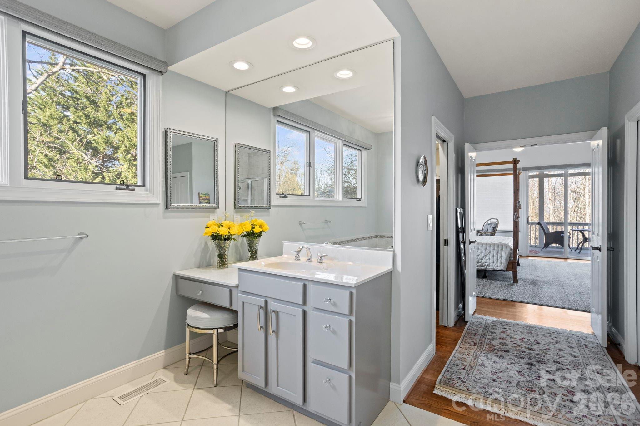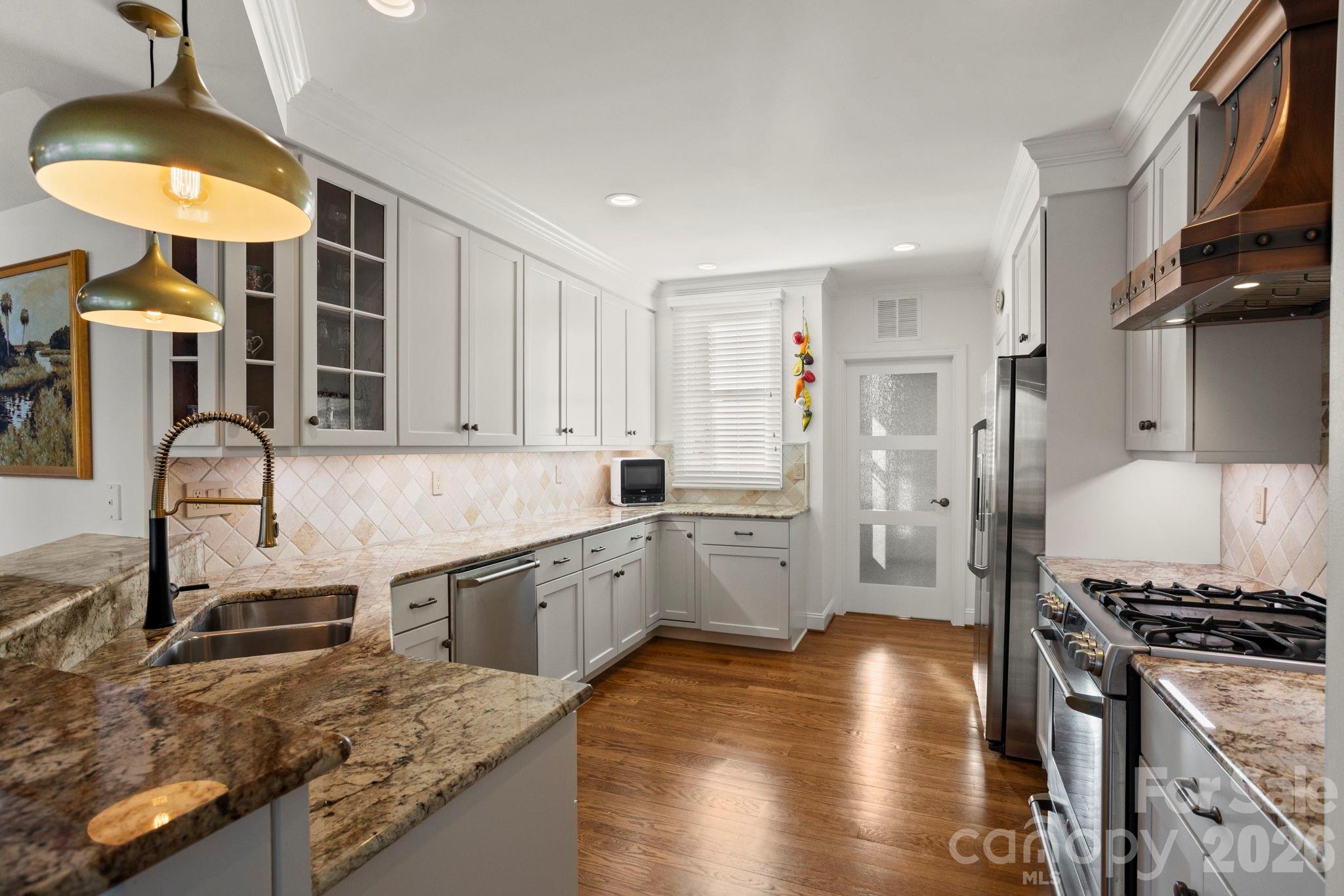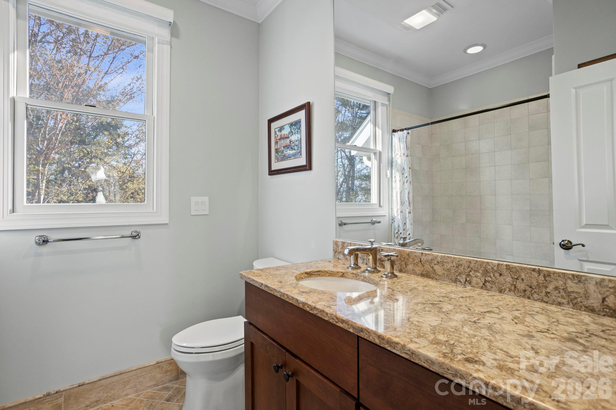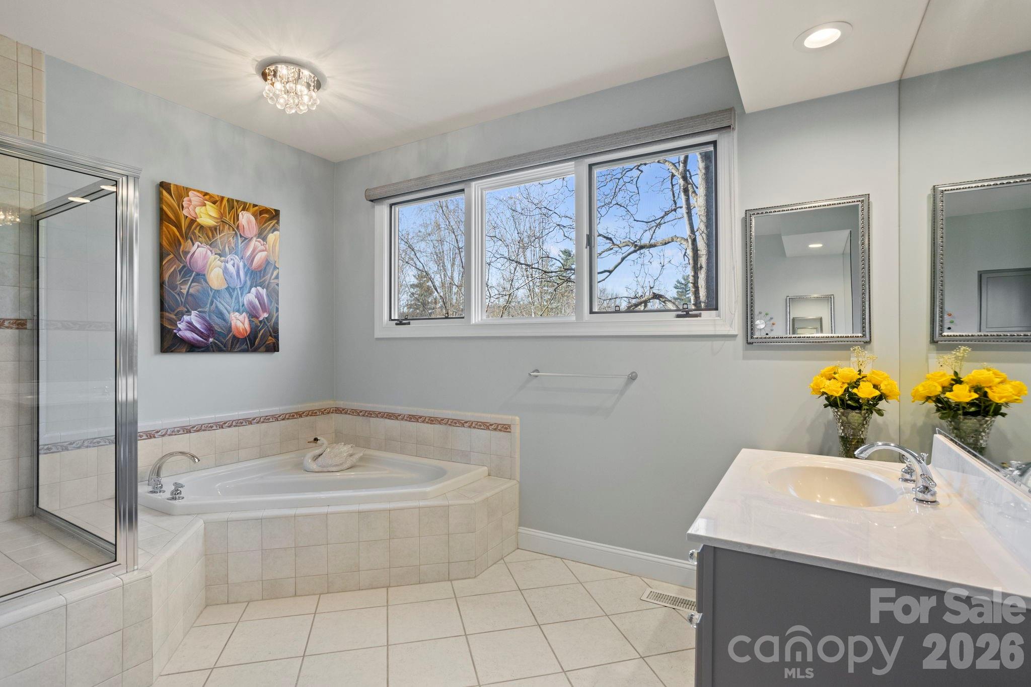 A Stunning Private Mountain Retreat in Prestigious Kenmure. Exceptional living awaits in this stunning home, gracefully situated on over an acre of pristine, professionally landscaped grounds in one of the most desirable sections of Kenmure, a gated golf course community. Backing to a protected conservancy, this property offers an extraordinary level of privacy in a truly majestic setting. From the moment you arrive via the level paver driveway, youll be captivated by the homes natural beauty and serene surroundings. Inside, the main level showcases gleaming hardwood floors, an open and light-filled floor plan and a dramatic great room featuring vaulted tongue-and-groove wood ceilings with exposed beams, a striking floor-to-ceiling stone gas fireplace and a wall of windows framing the lush landscape beyond. The great room flows seamlessly into the dining area and spacious kitchen, designed for both everyday living and entertaining. The kitchen is a chefs dream with granite countertops, decorative tile backsplash, abundant cabinetry, stainless steel appliances, a dual-fuel gas range with custom copper hood, pantry and breakfast bar. The primary suite is a true retreat offering a cathedral ceiling with beam detail, private access to the covered deck, dual walk-in closets and a spa-inspired bath complete with a tiled walk-in shower, jetted tub, dual vanities and custom built-in storage. Also on the main level: a versatile study or guest bedroom with full bath, and a well-appointed laundry room with cabinetry and sink. Upstairs, a private bonus suite provides an ideal guest space with a bedroom featuring cathedral ceilings, large windows, walk-in closet and full bath. The lower level offers a warm and inviting family room with another floor-to-ceiling stone fireplace, a wall of windows and access to the patio. This level also includes an additional bedroom or office with en-suite bath, plus a flexible bonus room with closet and private access to a charming secret rock garden with flagstone and moss accents. Outdoor living is simply exceptionalenjoy peaceful mountain surroundings from the cathedral-ceiling covered deck (easily screened), expansive open deck, lower patio or private slate terrace surrounded by exquisite hardscaping. The grounds are a masterpiece, featuring dogwoods, a weeping cherry tree, specimen plantings, rock gardens and a multi-zone irrigation system. Additional features include a generator and radon mitigation system for peace of mind. A rare offeringthis is truly a one-of-a-kind mountain sanctuary with a picture-perfect setting.