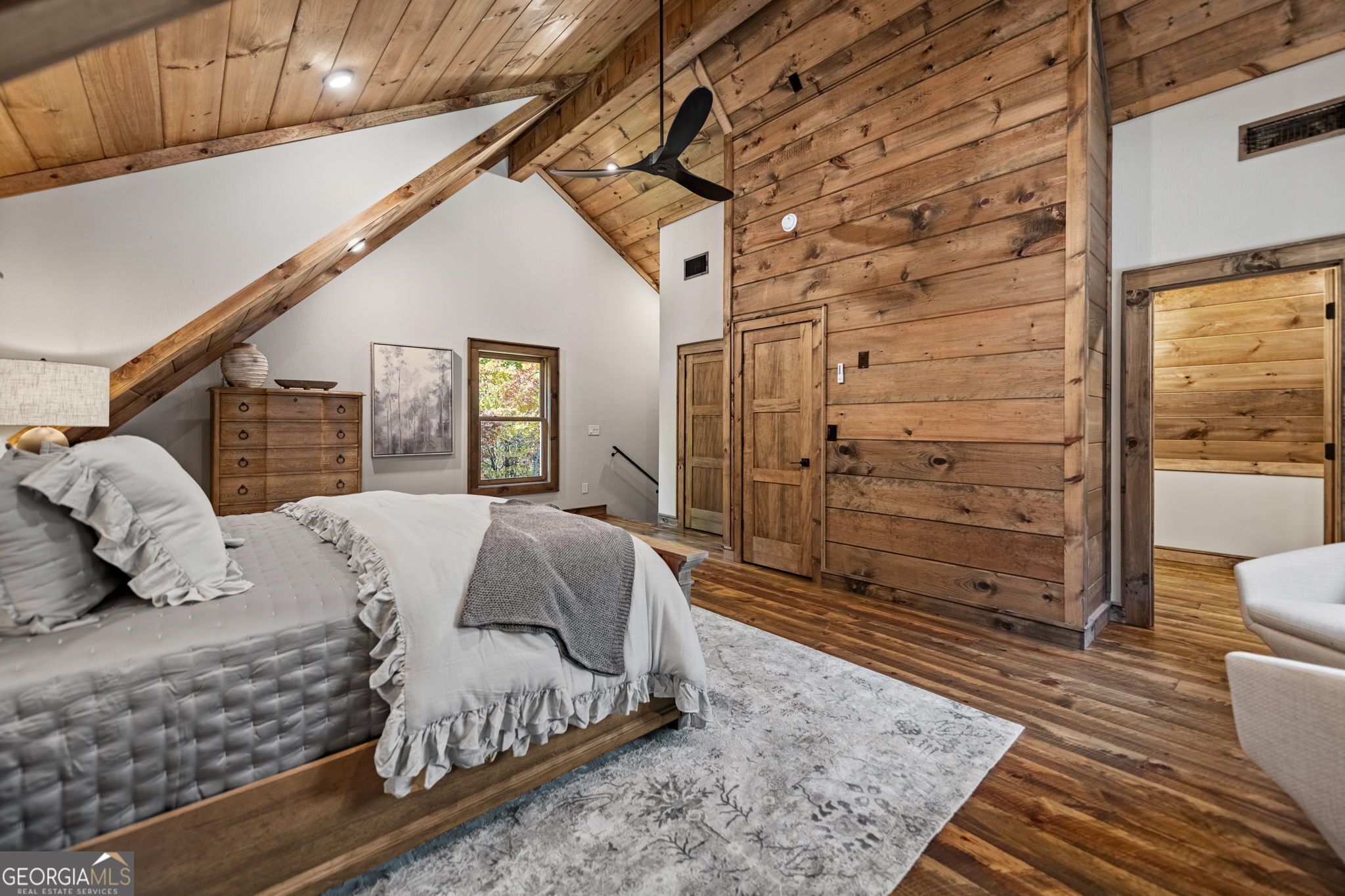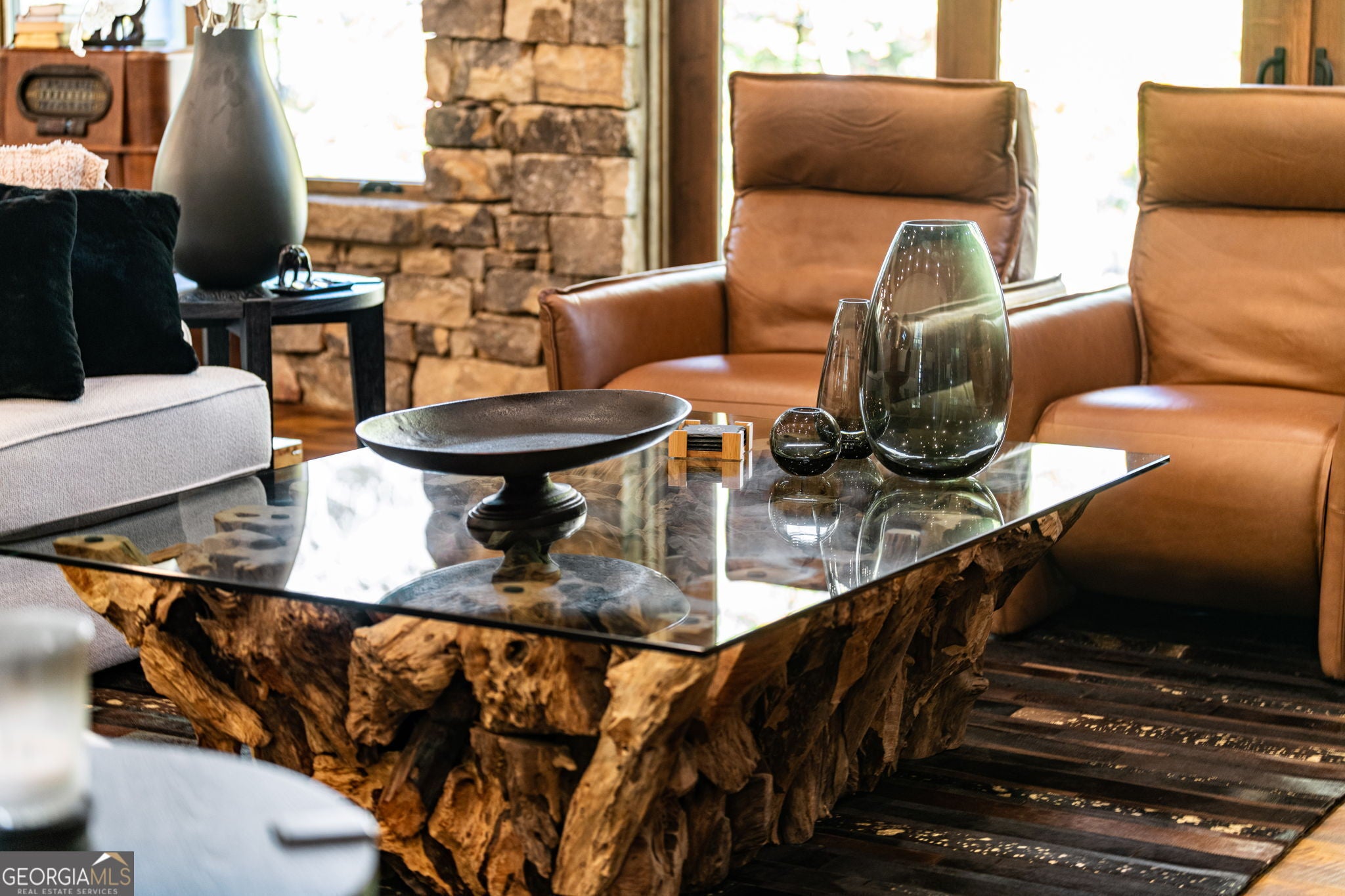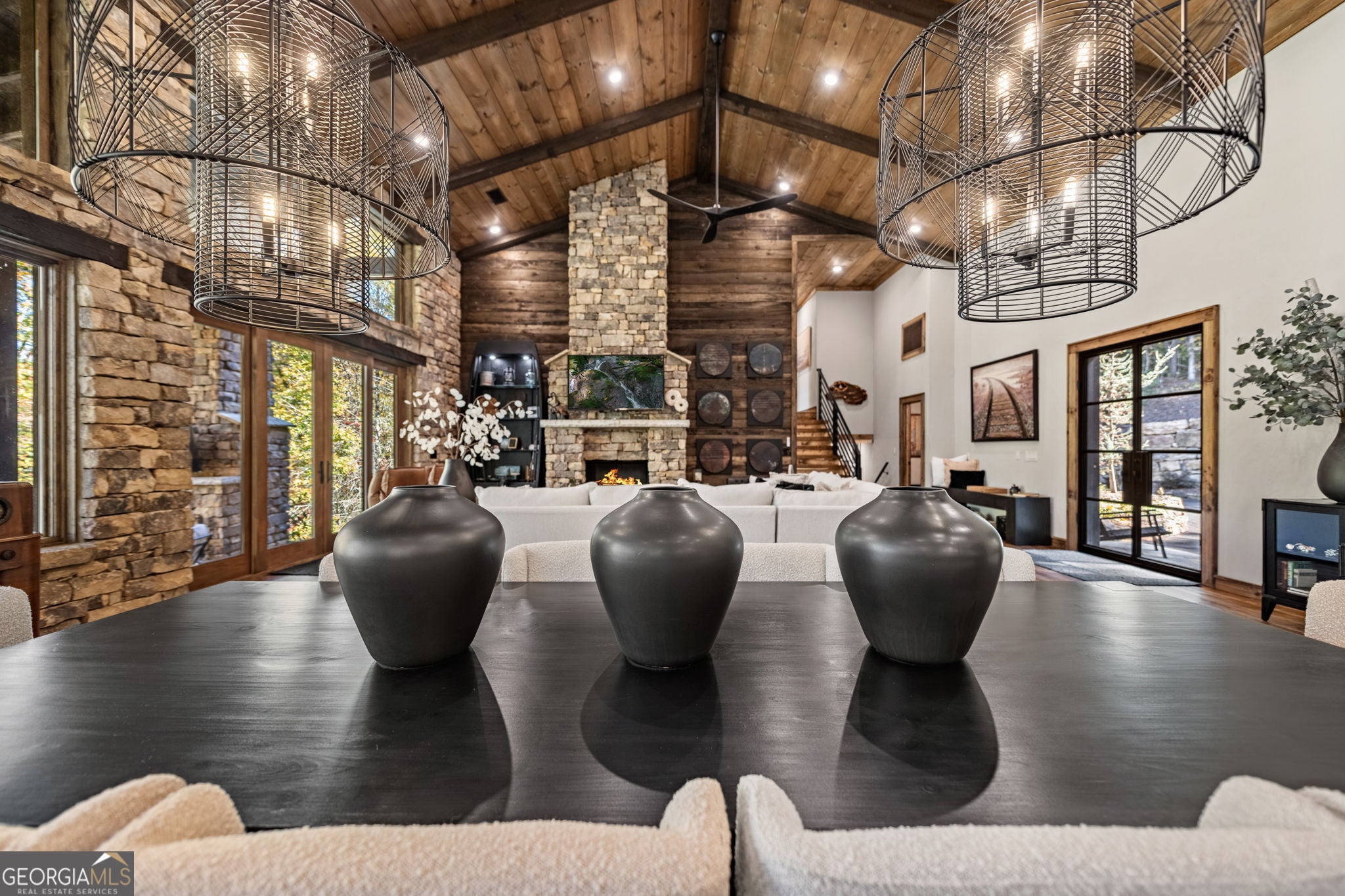 Welcome to your dream mountain retreat in the heart of Blue Ridge, Georgia! Nestled on a sprawling 7-acre estate with breathtaking frontage on the serene Fightingtown Creek, this exquisite 4 bedroom, 4.5-bathroom mountain modern home offers the perfect blend of luxury, tranquility, and natural beauty. As you enter, youll be captivated by the open-concept living space, featuring soaring ceilings, expansive windows, and rich hardwood floors that seamlessly integrate the indoor and outdoor environments. The gourmet kitchen is a chefs delight, boasting top-of-the-line stainless steel Viking appliances, custom cabinetry, and a large island perfect for entertaining. The spacious main suite is a sanctuary with a spa-like ensuite bath featuring a soaking tub, dual vanities, and a walk-in shower. Each additional bedroom is generously sized, offering its private bath, ensuring comfort and privacy for family and guests. You can go outside to discover your private oasis. The expansive patio provides the ideal outdoor dining and relaxation setting, overlooking the lush landscape and the soothing sounds of Fightingtown Creek. Whether youre enjoying a morning coffee or hosting an evening gathering, the views are simply unparalleled. This property also features multiple cozy outdoor fireplaces, perfect for stargazing and enjoying cool mountain evenings. With ample acreage, theres plenty of room for exploration, gardening, or adding additional structures. For your convenience, the home includes a spacious 2.5-car attached garage, offering ample room for vehicles, storage, and recreational equipment. Whether youre an outdoor enthusiast or need extra space for your hobbies, this garage is designed to accommodate your needs quickly. Located just minutes from the charming town of Blue Ridge, you can access boutique shopping, fine dining, and various outdoor activities, including hiking, fishing, and boating.