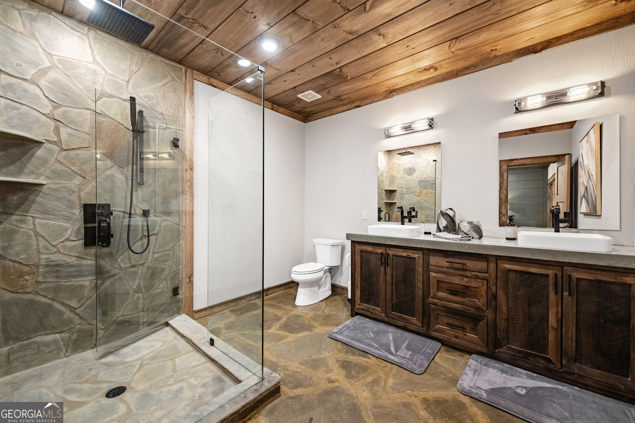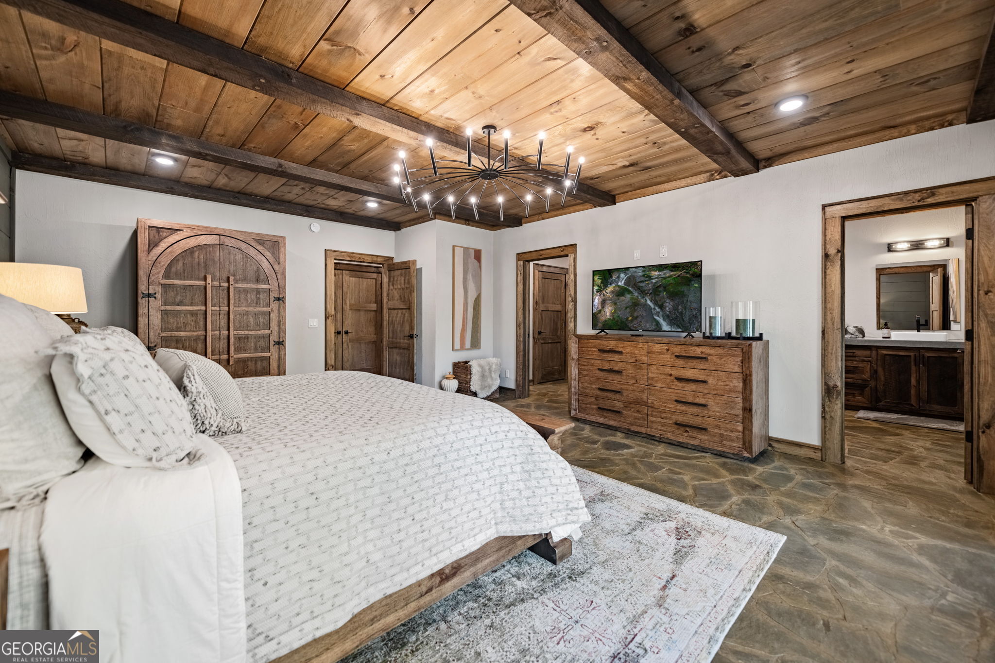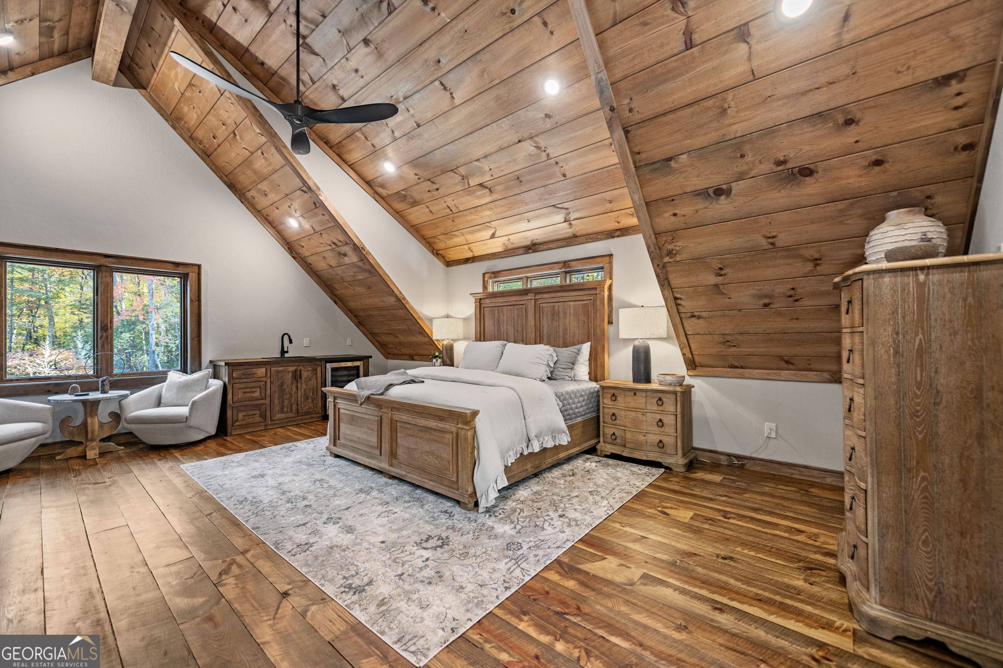 Welcome to your dream mountain retreat in the heart of Blue Ridge, Georgia! Nestled on a sprawling 7-acre estate with breathtaking frontage on the serene Fightingtown Creek, this exquisite 4 bedroom, 4.5-bathroom mountain modern home offers the perfect blend of luxury, tranquility, and natural beauty. As you enter, youll be captivated by the open-concept living space, featuring soaring ceilings, expansive windows, and rich hardwood floors that seamlessly integrate the indoor and outdoor environments. The gourmet kitchen is a chefs delight, boasting top-of-the-line stainless steel Viking appliances, custom cabinetry, and a large island perfect for entertaining. The spacious main suite is a sanctuary with a spa-like ensuite bath featuring a soaking tub, dual vanities, and a walk-in shower. Each additional bedroom is generously sized, offering its private bath, ensuring comfort and privacy for family and guests. You can go outside to discover your private oasis. The expansive patio provides the ideal outdoor dining and relaxation setting, overlooking the lush landscape and the soothing sounds of Fightingtown Creek. Whether youre enjoying a morning coffee or hosting an evening gathering, the views are simply unparalleled. This property also features multiple cozy outdoor fireplaces, perfect for stargazing and enjoying cool mountain evenings. With ample acreage, theres plenty of room for exploration, gardening, or adding additional structures. For your convenience, the home includes a spacious 2.5-car attached garage, offering ample room for vehicles, storage, and recreational equipment. Whether youre an outdoor enthusiast or need extra space for your hobbies, this garage is designed to accommodate your needs quickly. Located just minutes from the charming town of Blue Ridge, you can access boutique shopping, fine dining, and various outdoor activities, including hiking, fishing, and boating.