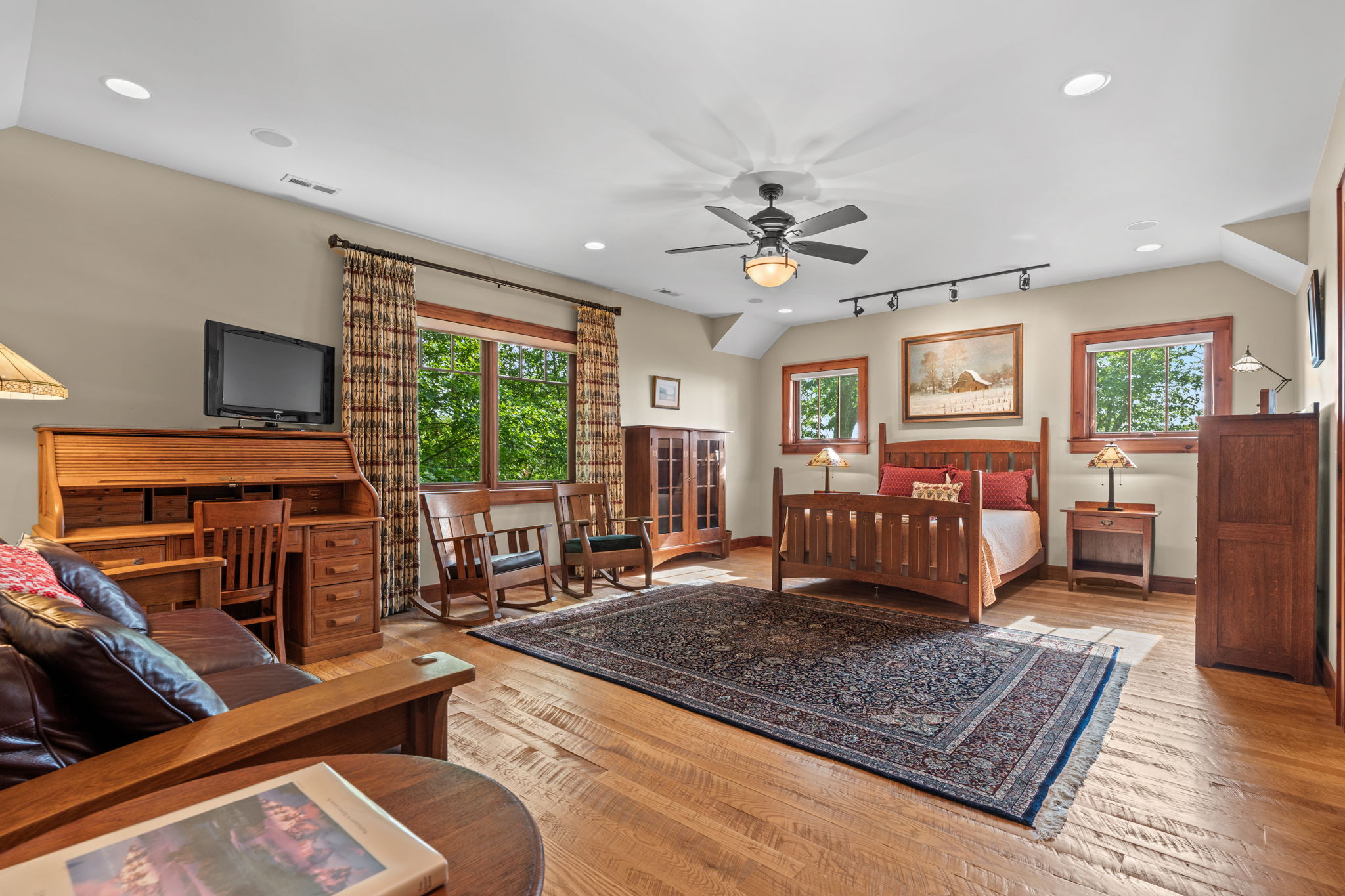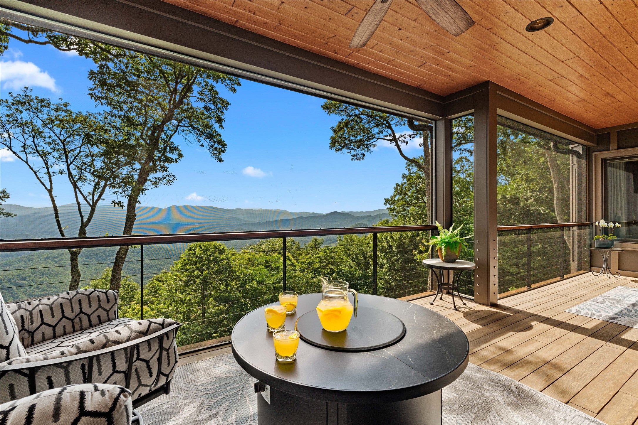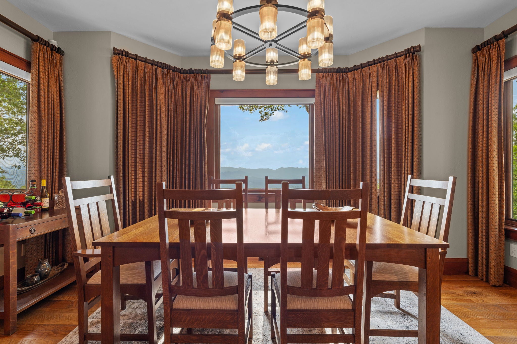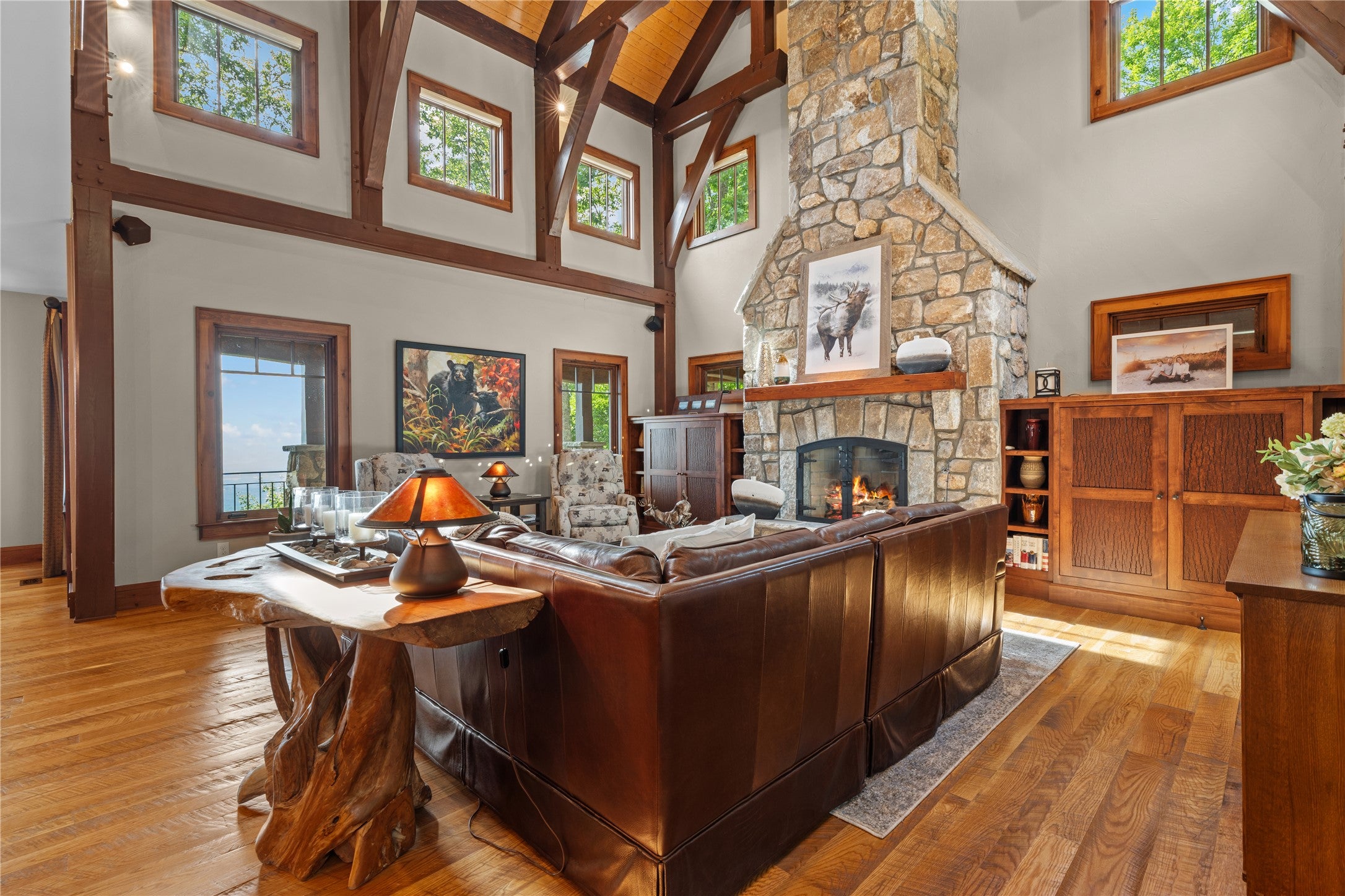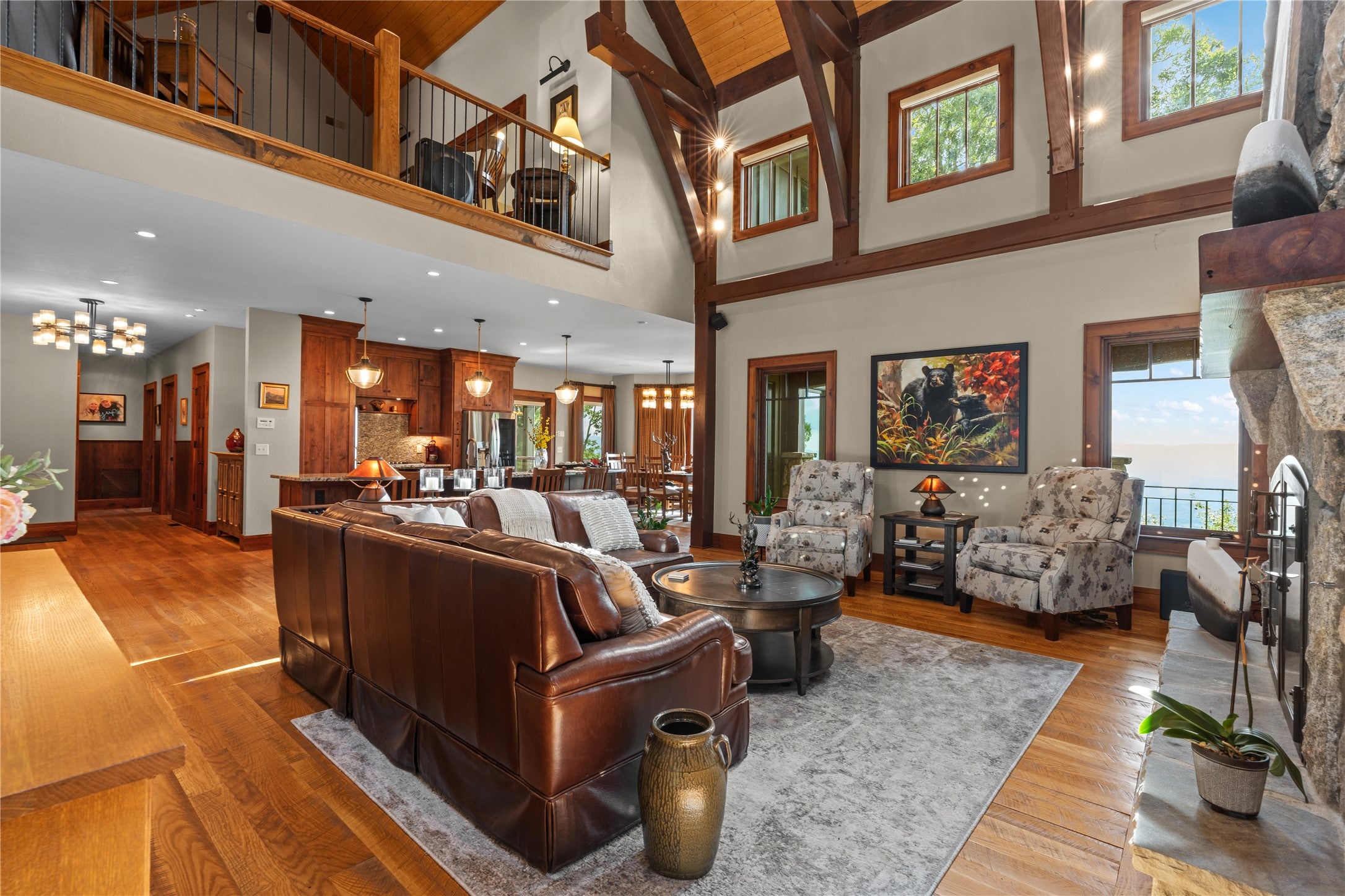 Set on nearly 10 private acres at over 3,500 feet in elevation, 315 Bears Paw Trail is a singular expression of architectural elegance and environmental integrity. One of the only residences in Macon County to achieve LEED Silver certification, this exceptional property embodies a rare balance of sustainability, craftsmanship, and seclusion. Located within an exclusive mountaintop gated community, it offers a refined high-elevation lifestyle free from the congestion and commercial footprint of nearby resort townsan enclave prized for its sweeping panoramic vistas, unspoiled natural surroundings, and peaceful sense of retreat.Inside, the home reveals a study in quiet luxury. Five spacious bedrooms, five full baths, and a half bath are thoughtfully designed within a stunning timber frame structure crafted from locally sourced southern yellow pine. Wide-plank Appalachian oak flooring, native stone fireplaces, and curated architectural details create a warm yet sophisticated atmosphere throughout. Every space reflects intentional design, from multiple library areas to a professional-grade home theater and a private guest apartment ideal for extended stays.A breezeway connects the main residence to a generous three-car garage, intentionally detached to preserve air quality within the home. For those with a passion for gardening, a separate potting shed offers dedicated space for cultivation and creativity.Engineered with both sustainability and efficiency in mind, the home is oriented along a near true north-south axis to maximize passive solar gain. A solar array and a vertical wind turbine are integrated into the grid, allowing the property to harness renewable energy and return excess power for credit. Additionally, rainwater from half the roof is collected into a 1,000-gallon reservoir, supporting landscaping needs during drier seasons.Timeless in design, private in setting, and deeply connected to its natural surroundings, this is mountain living at its most refined.