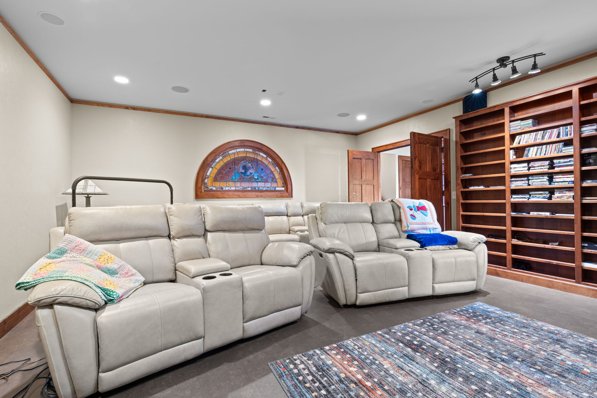 Welcome to an absolutely one-of-a-kind estate in Flint offering 4 bedrooms, 5.5 bathrooms, and a 3-car garage across 6,247 square feet, all set on expansive acreage. Tucked away in a private, serene setting, this home offers unmatched character while still being minutes from Tyler and Bullard. This home comes with a brand new composite roof and energy-efficient features including geothermal HVAC, 33kW paid solar panels, and propane backup systems. Inside, a grand entry welcomes you with a stunning fireplace and intricate details throughout. The spacious kitchen features beautiful countertops, custom cabinetry, and opens to the main living area with another fireplace and backyard views. Additional features include central vacuum, wired audio, intercom, LED cove lighting, and video security. A flexible office space and entertainment room with wet bar offer versatility, along with a dedicated gym and library. The primary suite is a true retreat with direct sunroom access, while the ensuite bath offers ample space to unwind. The sunroom includes an outdoor kitchen and furnace for year-round use. Bedrooms and bathrooms are generously sized, including a private suite with its own kitchen and exterior accessideal for guests or multigenerational living. The home includes two wood/gas fireplaces and one gas-only. Outside, enjoy agriculturally exempt acreage with chain-link and barbed wire fencing, a barn with tack room, and a private well for irrigation. A water softener and reverse osmosis system add convenience. The garage includes two EV chargers, a Tesla Gateway, and storage rooms. Additional highlights include 5G internet, tankless propane water heaters, foam insulation, zoned geothermal heating, and tile flooring throughout. This exceptional property offers space, efficiency, and privacy in a truly unique setting.