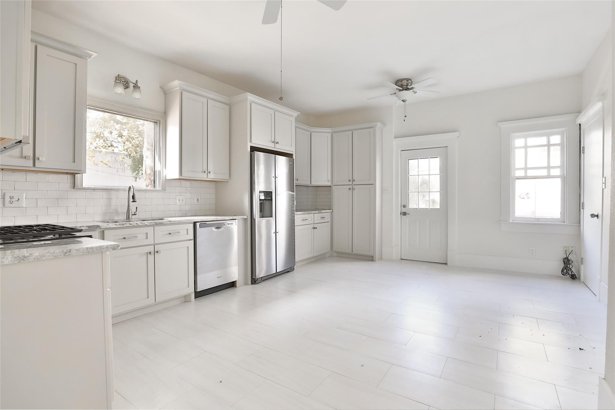 NEW ROOF 2026! INCOME PRODUCING Main house and 3 garage apartments. All current TENANT OCCUPIED. Photos are from right before current lease. The main residencea striking two-story brick homewas thoughtfully updated in 11/2022, including a remodeled kitchen and primary bath, new appliances, updated lighting, & fresh interior paint while preserving its original hardwood floors & architectural integrity. The living space is anchored by a wood-burning fireplace with custom built-ins, while a sunroom on the main level adds versatility for an office. A covered front porch & wrought iron fencing frame the property. The property features 3 garage apartments at the rearone of which has been updatedoffering strong potential for rental income. The property includes two detached garage space. A unique opportunity to own a property that functions equally well as a primary residence, office space, or income-producing asset in one of Houstons most desirable inner-loop locations.