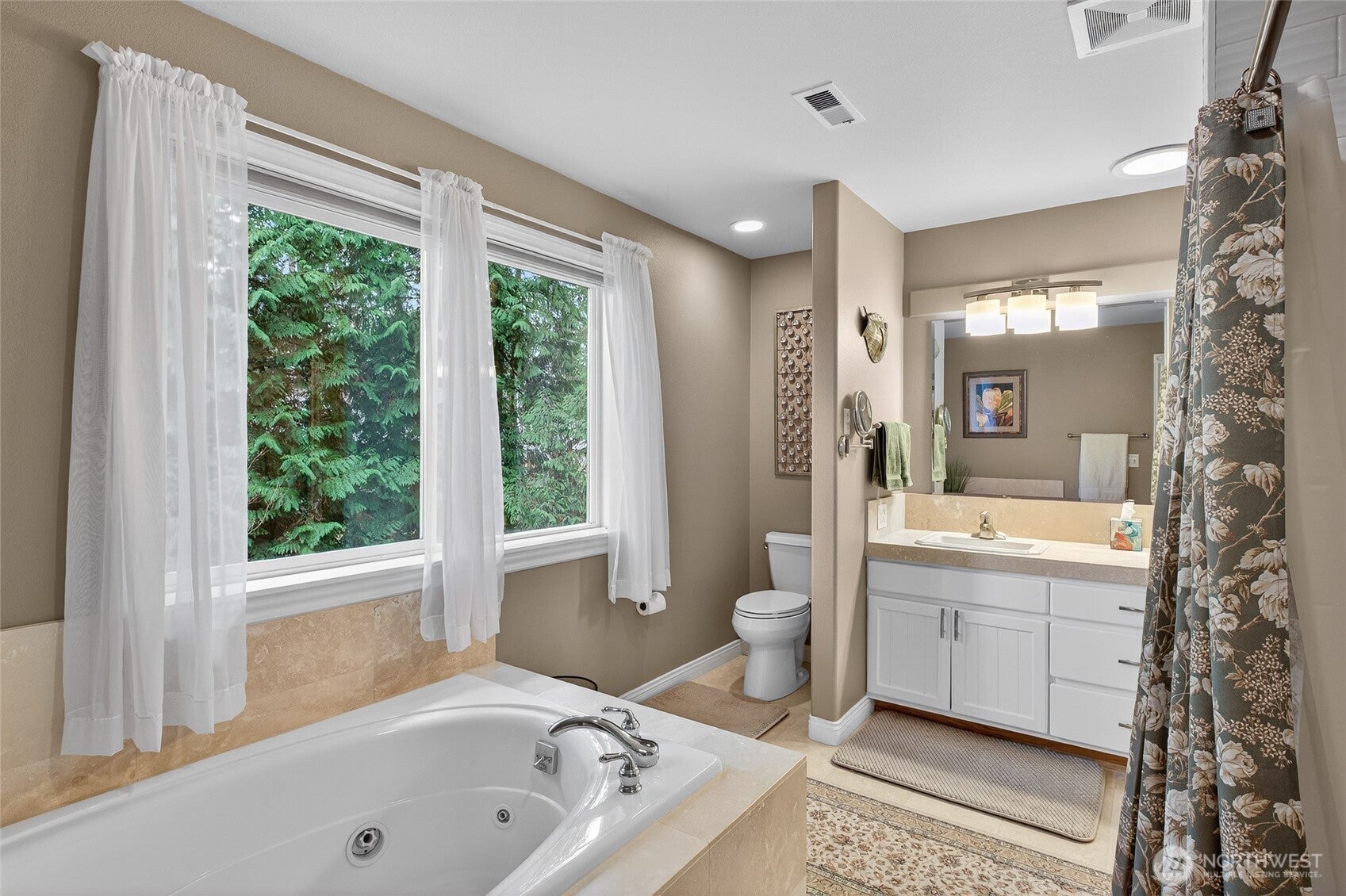 Stunningly updated and exceptionally versatile, this Semiahmoo custom home offers over 4,000 square feet of refined living space designed to accommodate a wide range of lifestyles. The centerpiece of the home is a true chefs kitchen, completely rebuilt with brand-new cabinetry, fixtures, countertops, backsplash, flooring, sink, and a new six-foot window that floods the space with natural light. Centrally located and beautifully connected to the breakfast nook and main living areas, it is both a showpiece and the functional heart of the home. With the potential for primary suite living on the main level in addition to the expansive upstairs primary, the layout offers rare flexibility, while multiple rooms allow the home to live as a 4-bedroom residence or provide space for up to 7 bedrooms or flex rooms. The upstairs primary suite features a luxurious updated five-piece bath and adjoining nursery, office, or fitness room. Outside, a full-length deck and patio overlook the fully developed, sun-drenched, low-maintenance backyard, where a pond, waterfall, and mature perennial landscaping create a private and peaceful retreat. Recent upgrades include a new roof, fresh interior and exterior paint, updated flooring, stacked-stone fireplace surround with mantle, travertine bath finishes, furnace, tankless hot water system, and updated lighting. HUGE attached 1,256 SQFT 4-car garage with shop space adds the finishing touch to this exceptional Semiahmoo offering.