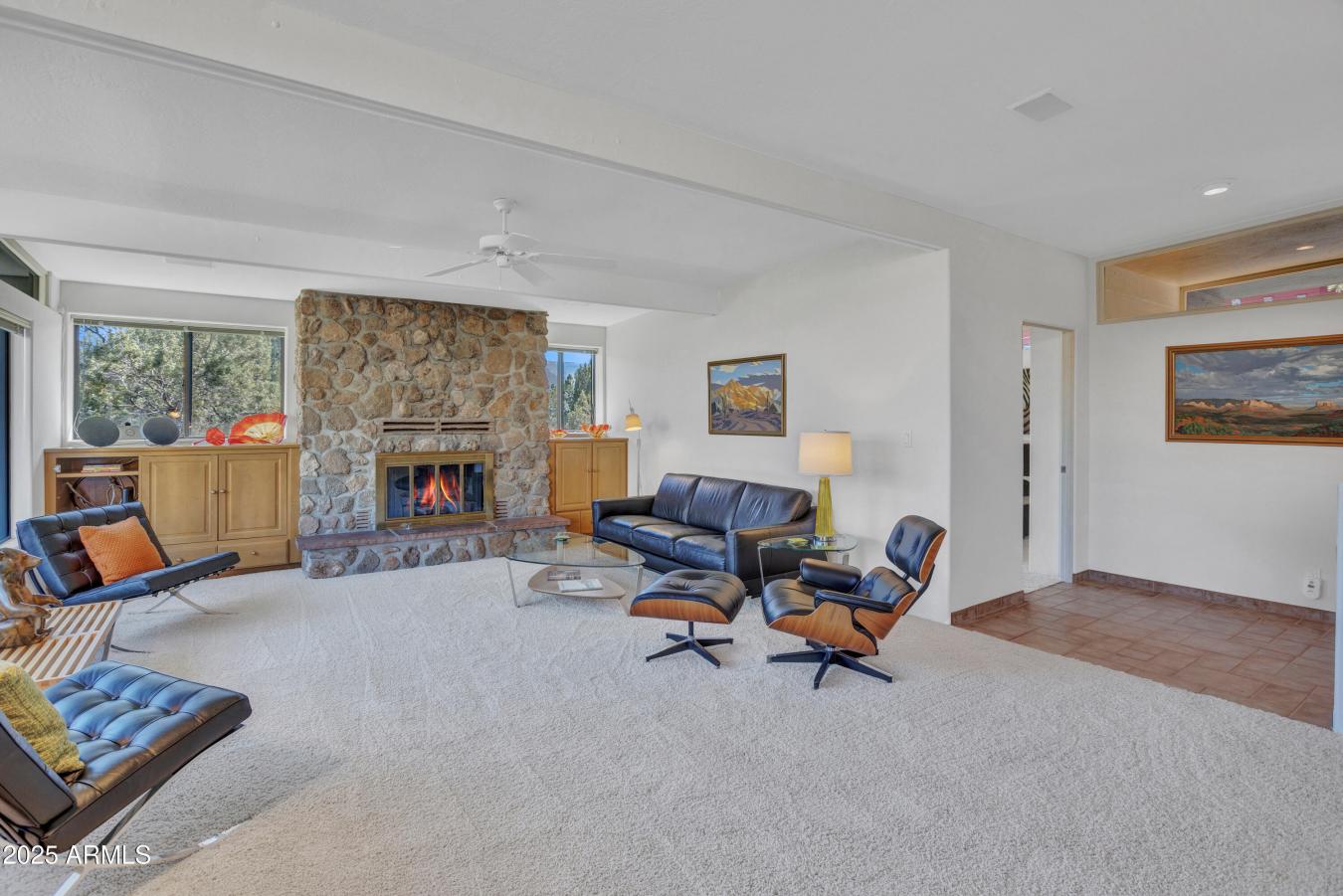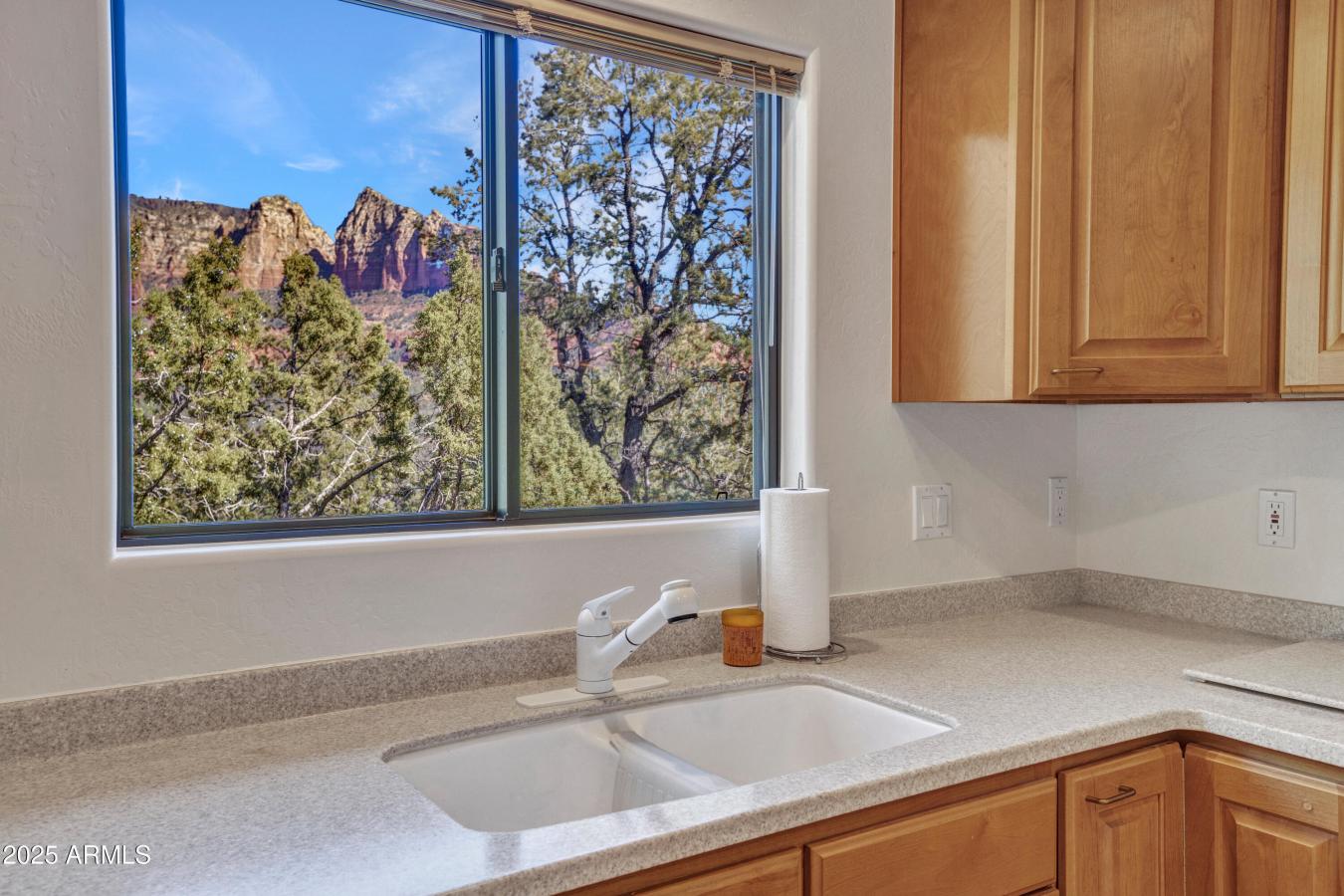 Panoramic Red Rock Views. True Mid-Century Design. Rebuilt, Not Just Remodeled. One-of-a-kind fully furnished Mid-Century Modern home with sweeping views from Cibola Mittens to Thumb Butte: unobstructed & unforgettable. Taken down to the studs in 1996 & redesigned by a renowned local architect, this home blends timeless architecture with thoughtful upgrades. Open-concept living with custom cabinetry, Corian countertops, and expansive Western windows that flood the space with natural light. Engineered for longevity, the view deck is constructed with concrete & welded steel: built to last. Two wood-burning fireplaces (with gas starters) add warmth to the clean, modern lines. Flexible bonus room with plumbing and private exterior access: ideal for a studio, hobbies, a 4th bedroom, or expanded utility space. Abundant storage throughout, plus spacious carport. Single-level living for ease and flow. Offered furnished (minus heirloom items) with curated pieces, lightly lived in as a second home. This is more than a home: its a front-row seat to Sedonas best sunsets. Cibola Hills , 30-day minimum rental restriction.