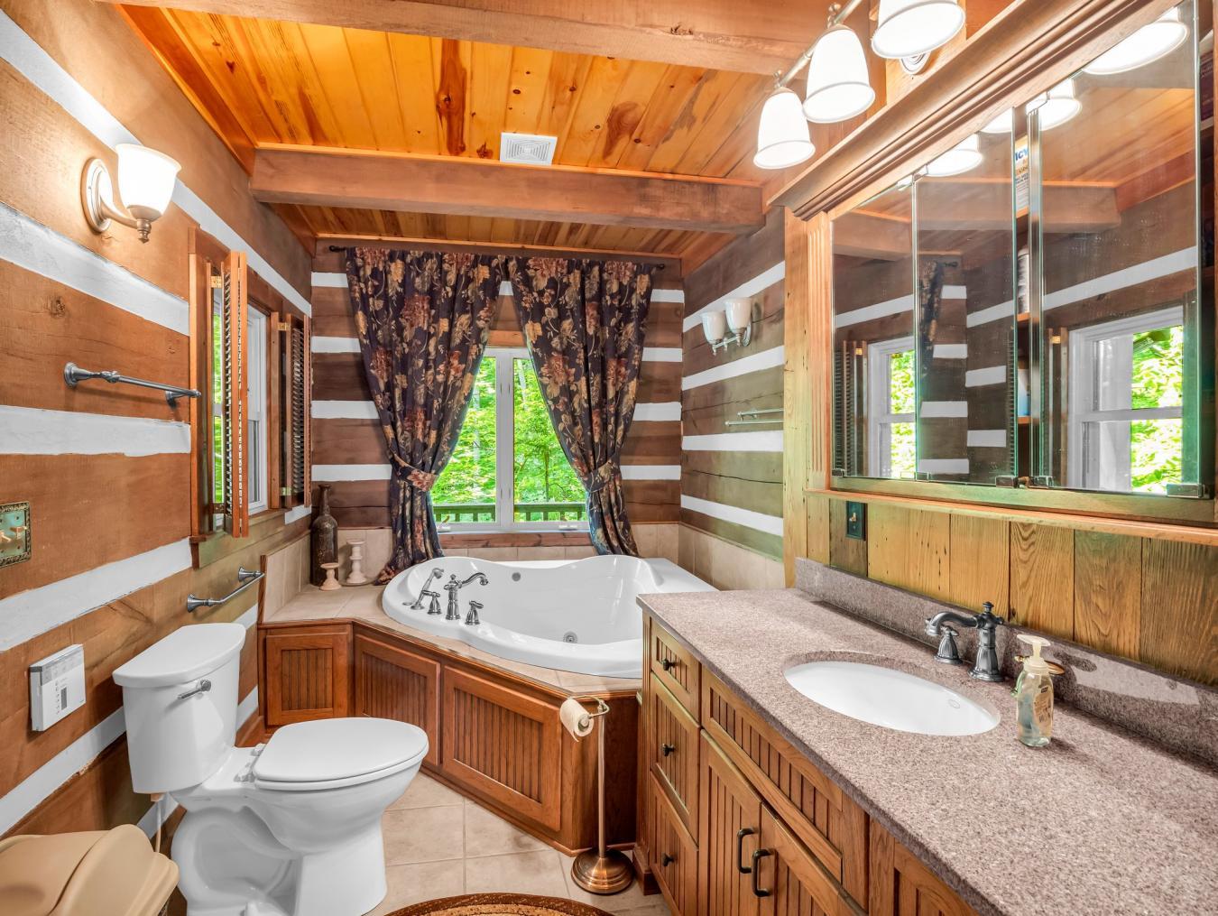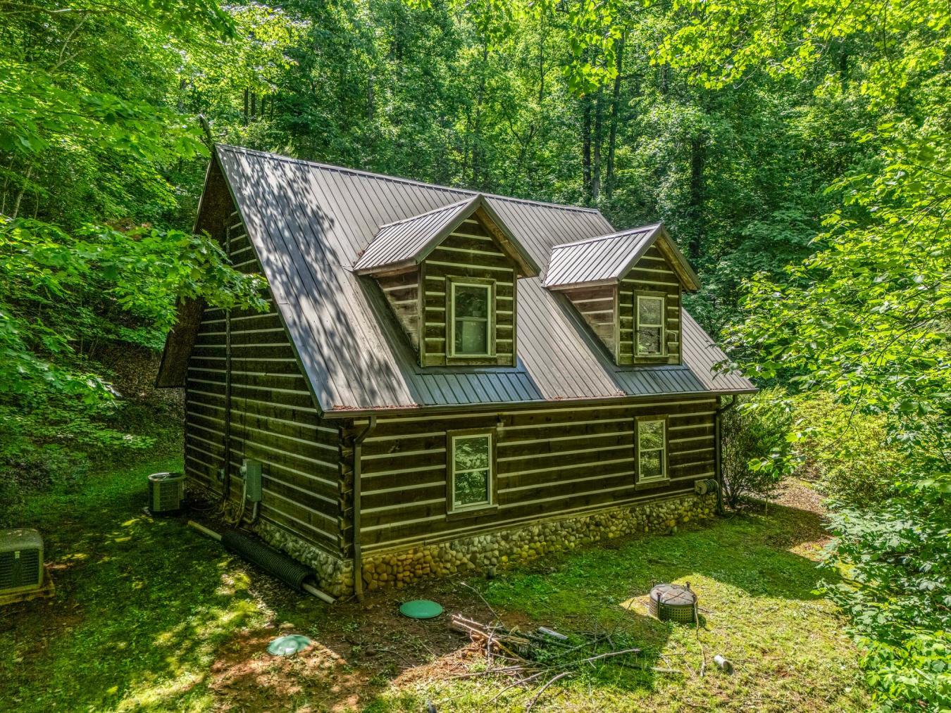 Escape to 116 acres of serene mountain privacy. The Lodge at Cane Creek is a handcrafted cabin built from 6x12 dovetail logs harvested on-site. The great room showcases an oversized stone fireplace, and the primary suite features its own cozy hearth. Enjoy two tranquil ponds, multiple streams, fruit trees, and a gated entry.