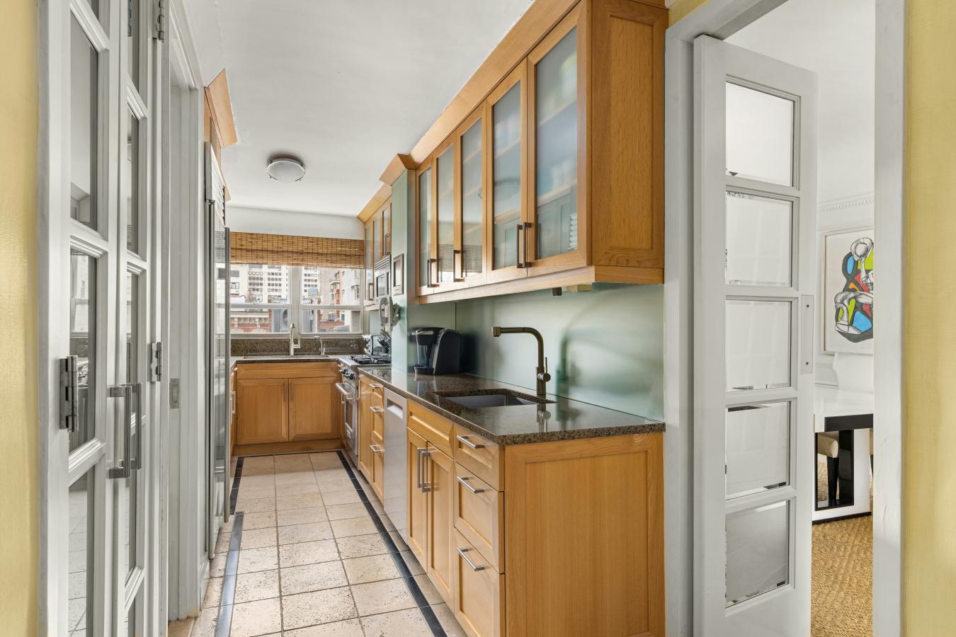 Classic Elegance Off Park Avenue: Sophistication meets grand proportions in this rare eight-room sanctuary, perfectly positioned just off Park Avenue. At the heart of this four-bedroom, plus staff/guest room, and four-bathroom residence is an extraordinary 60-foot expanse of formal entertaining space. A grand living room and formal dining room gracefully flank an expansive central gallery, creating a dramatic yet inviting setting. With stunning north and south exposures from every window, the home is bathed in natural light throughout the day. The windowed chefs kitchen is thoughtfully designed and impeccably equipped with top-of-the-line appliances, including dual sinks, a Sub-Zero refrigerator, a Wolf range, and a Bosch dishwasher and washer/dryer. Granite countertops, a striking glass backsplash, and abundant storage complete the space. Just off the kitchen, a charming staff or guest room features a newly renovated en-suite bath. Private quarters are equally refined. The generously scaled primary suite offers two walk-in closets, open northern city views, electric shades, and a well-appointed en-suite bath. Adjacent to the gallery, a versatile second bedroom includes a newly renovated en-suite bath, a large walk-in closet, and a separate linen closet. A private hallway leads to two additional oversized bedrooms that share a beautifully maintained bathroom-ideal for family or guests seeking a quiet retreat. Refined details elevate this home throughout, including extensive closet space, elegant glass-inset doors, and expansive walls of windows. Located at 114 East 72nd Street, a premier white-glove cooperative, residents enjoy a full-time doorman, concierge, and live-in resident manager. Amenities include a well-appointed fitness center, a landscaped roof terrace with breathtaking Central Park and skyline views, and a rare private garden featuring its own half-court basketball court. This pet-friendly building permits pieds--terre and offers bike and private storage. A 2% flip tax is paid by the buyer, and up to 50% financing is allowed.