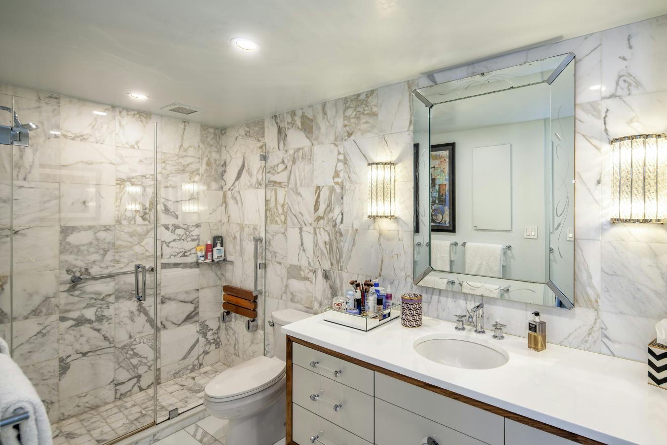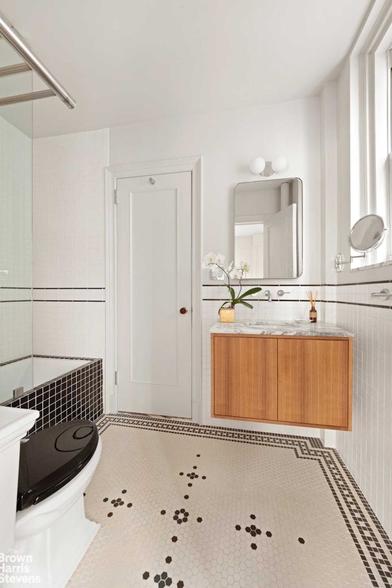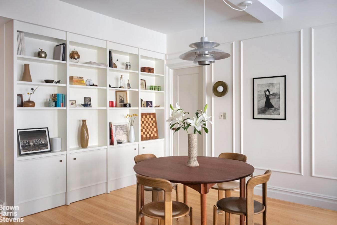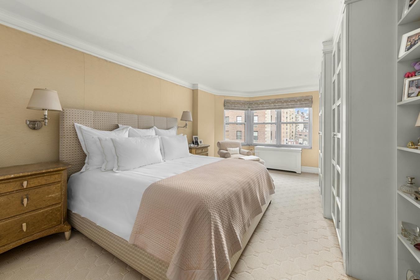 A corner two-bedroom of rare finish, tailored to the most discerning buyer. Residence 4C at 310 West End Avenue is a sun-drenched, meticulously detailed home with a distinctly European sensibility and the ease of modern city living. A gracious entry foyer sets the tone, with two closets and exquisite custom mosaic flooring with heritage detailing. Beyond, an expansive living and dining room unfolds, framed by large windows with picturesque views of tree-lined streets, high beamed ceilings, custom millwork, and intricate molding. A dedicated custom workstation adds both function and flexibility. The windowed kitchen is anchored by a generous island with seating for three, marble countertops and backsplash, custom cabinetry, and a full suite of premium appliances including a Bertazzoni refrigerator, Bosch dishwasher, and Fisher & Paykel induction range. The primary suite is a quiet retreat with excellent light, generous proportions, custom molding, and two walk-in closets. The corner second bedroom offers dual exposures, open city views, and equally generous proportions. Both bedrooms share a beautifully finished bathroom with mosaic tilework, a walnut vanity, Grohe fixtures, and a deep soaking tub with glass enclosure. A powder room serves the entertaining spaces with equal care. Additional features include wide-plank flooring, custom built-ins, and thoughtful storage. Built in 1927 by Emory Roth, 310 West End Avenue is a full-service co-op with a 24-hour doorman, live-in superintendent, private storage, bike room, and laundry facilities. Pet-friendly and located one block from Riverside Park, with convenient access to playgrounds, bike paths, dog runs, express transportation, neighborhood markets including Fairway and Citarella, and the Upper West Sides dining and retail corridors. Assessment: 462.29/month through 2030.