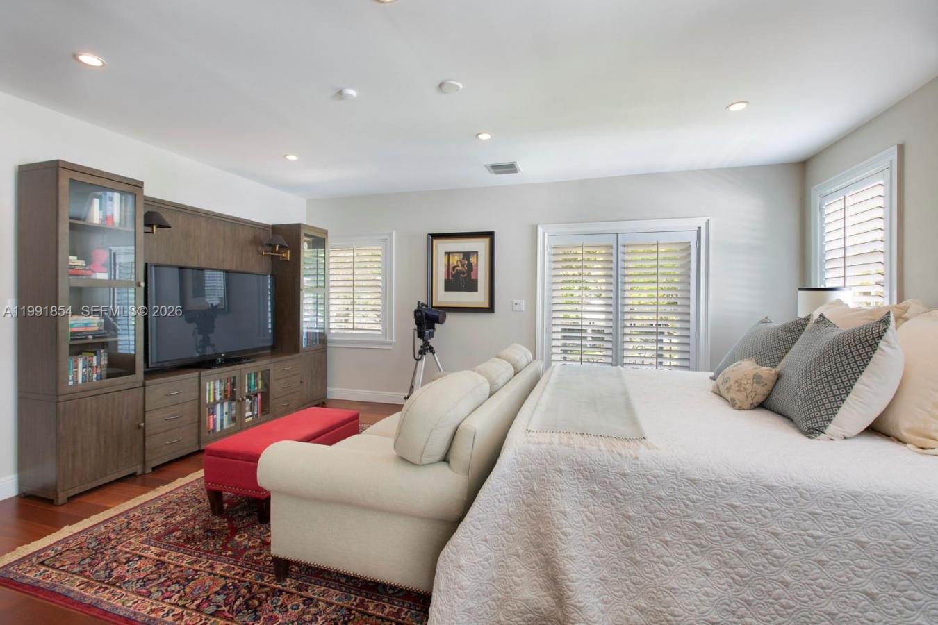 Perfectly positioned on a majestic, oak-lined lot along one of Coral Gables most prestigious and sought-after streets, this immaculate, fully renovated 5/4.