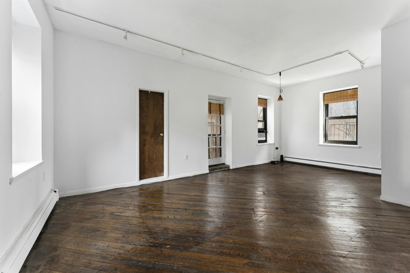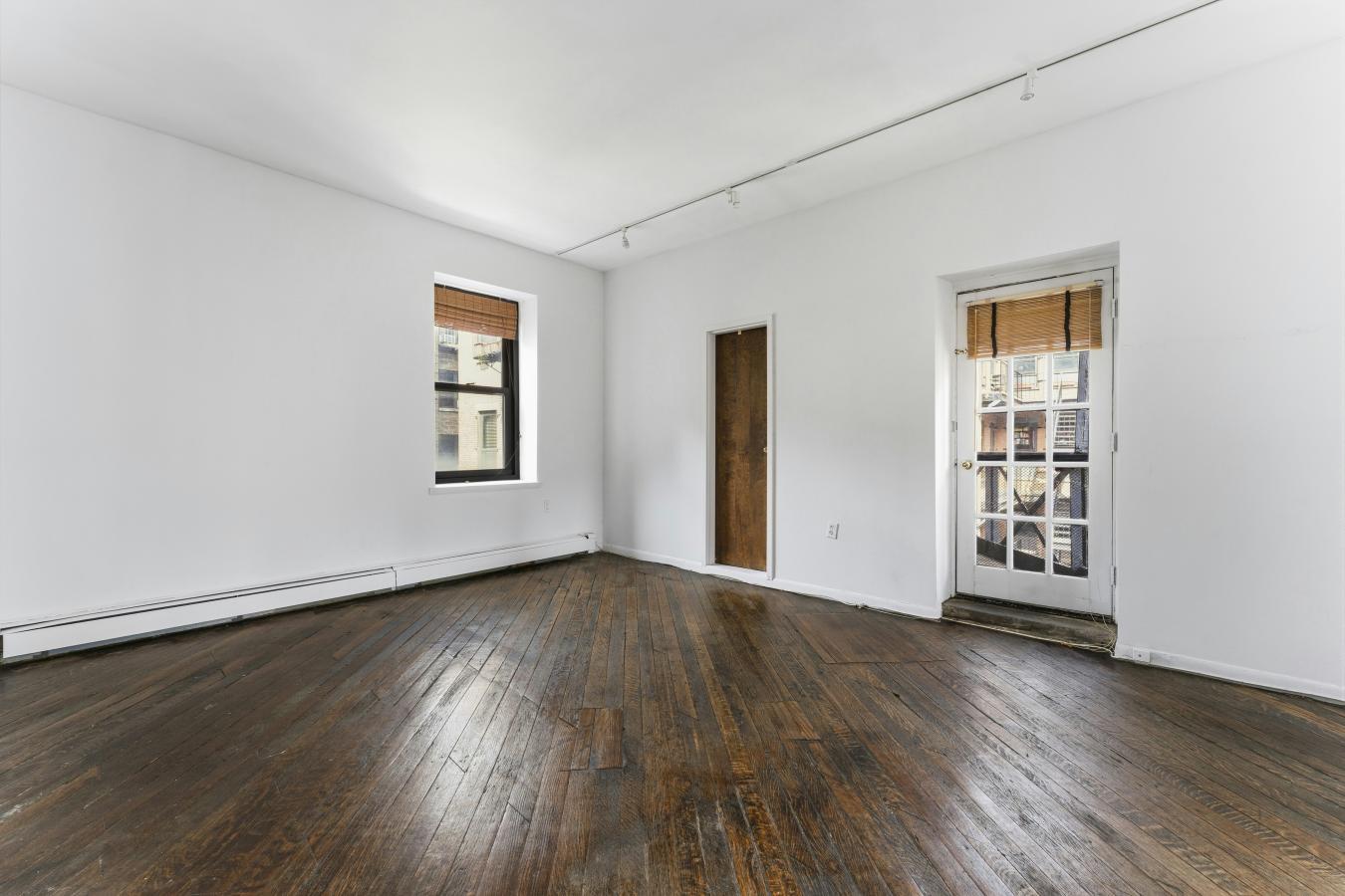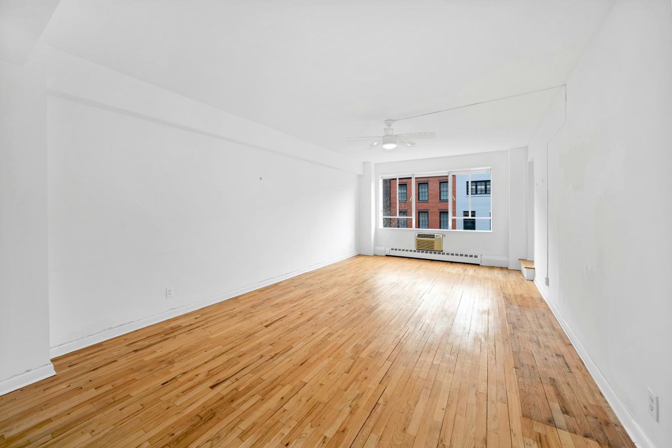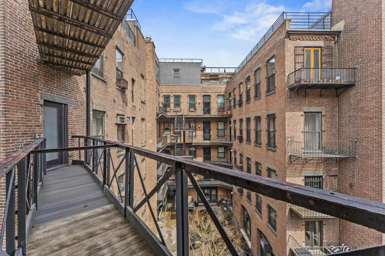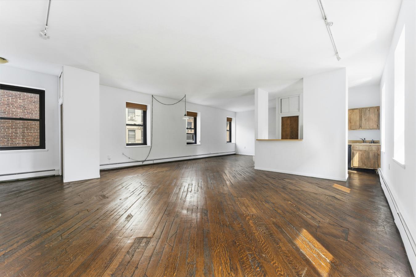 This is a sunny, loft-like one-bedroom apartment at the renowned cooperative complex The Piano Factory, located in the Theater District/Clinton area of Manhattan. This good-estate-condition apartment can be lived in right away (all appliances and utilities are fully functional) or updated to suit your requirements. There is plenty of space (approximately 1200 square feet including the outdoor area), enough room for additional bedrooms, and a good location for a washer/dryer. There are three exposures: north, east, and west; eleven windows; and a windowed door that leads to a private balcony/catwalk. With all that glass there are loads of natural light, and with nine-and-a-half-foot ceilings there is a bright, airy feel to this unique space. The coop complex is unique too-it really was a piano manufacturing facility back in the 1800s, and the industrial bones of the complex will charm you and your guests the first time you enter the courtyard. There is a European-like feel to the common outdoor spaces (which can be reserved for your private use) with restored ironwork, beautiful landscaping, and romantic city views. This small (just over forty units) well-run coop has its own website and is managed ably. The apartment is currently vacant (the photographs on the listing have been virtually staged) and ready for your visit.