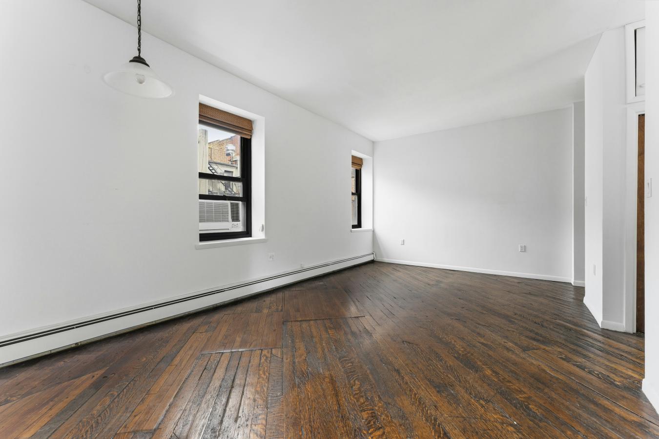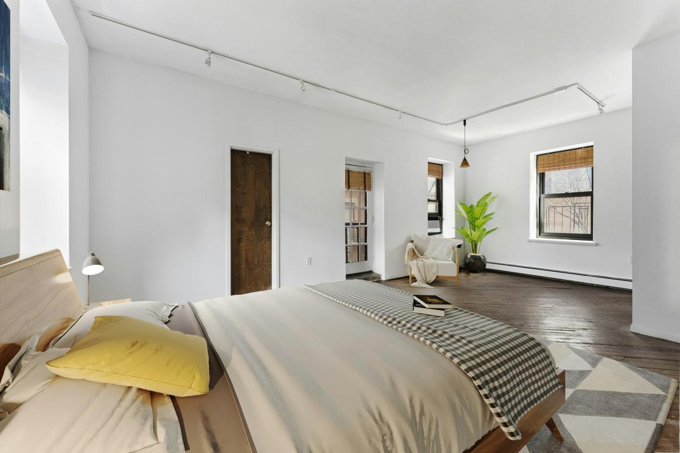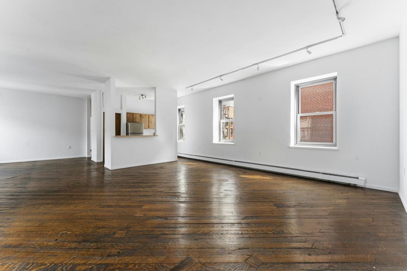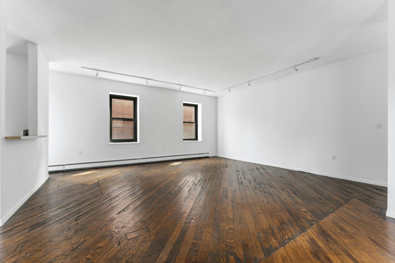 This is a sunny, loft-like one-bedroom apartment at the renowned cooperative complex The Piano Factory, located in the Theater District/Clinton area of Manhattan. This good-estate-condition apartment can be lived in right away (all appliances and utilities are fully functional) or updated to suit your requirements. There is plenty of space (approximately 1200 square feet including the outdoor area), enough room for additional bedrooms, and a good location for a washer/dryer. There are three exposures: north, east, and west; eleven windows; and a windowed door that leads to a private balcony/catwalk. With all that glass there are loads of natural light, and with nine-and-a-half-foot ceilings there is a bright, airy feel to this unique space. The coop complex is unique too-it really was a piano manufacturing facility back in the 1800s, and the industrial bones of the complex will charm you and your guests the first time you enter the courtyard. There is a European-like feel to the common outdoor spaces (which can be reserved for your private use) with restored ironwork, beautiful landscaping, and romantic city views. This small (just over forty units) well-run coop has its own website and is managed ably. The apartment is currently vacant (the photographs on the listing have been virtually staged) and ready for your visit.