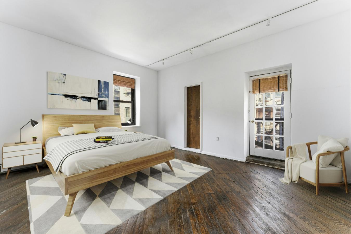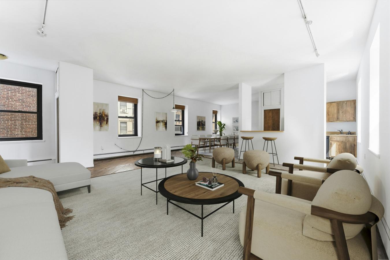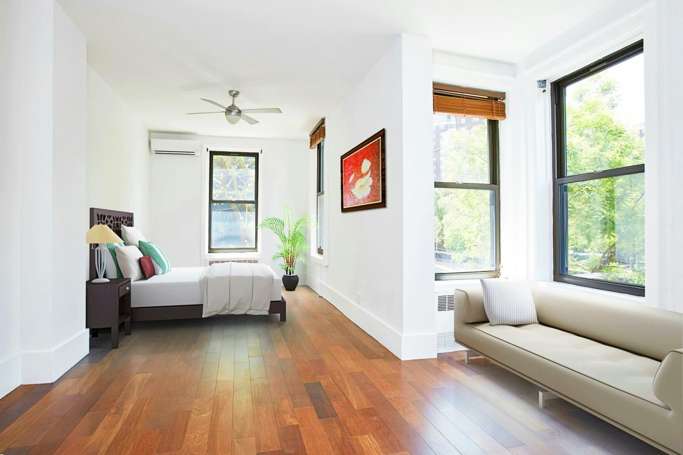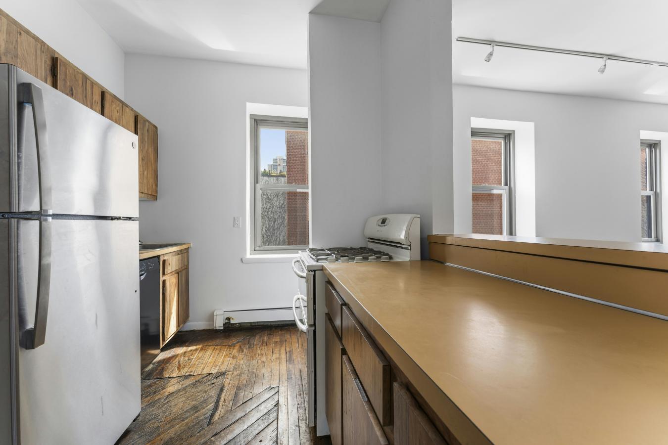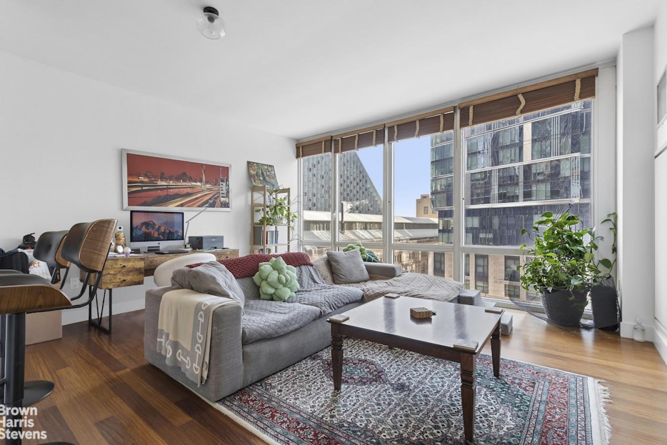This is a sunny, loft-like one-bedroom apartment at the renowned cooperative complex The Piano Factory, located in the Theater District/Clinton area of Manhattan. This good-estate-condition apartment can be lived in right away (all appliances and utilities are fully functional) or updated to suit your requirements. There is plenty of space (approximately 1200 square feet including the outdoor area), enough room for additional bedrooms, and a good location for a washer/dryer. There are three exposures: north, east, and west; eleven windows; and a windowed door that leads to a private balcony/catwalk. With all that glass there are loads of natural light, and with nine-and-a-half-foot ceilings there is a bright, airy feel to this unique space. The coop complex is unique too-it really was a piano manufacturing facility back in the 1800s, and the industrial bones of the complex will charm you and your guests the first time you enter the courtyard. There is a European-like feel to the common outdoor spaces (which can be reserved for your private use) with restored ironwork, beautiful landscaping, and romantic city views. This small (just over forty units) well-run coop has its own website and is managed ably. The apartment is currently vacant (the photographs on the listing have been virtually staged) and ready for your visit.