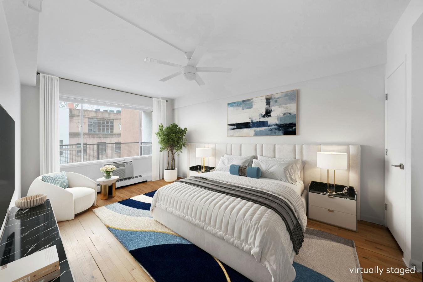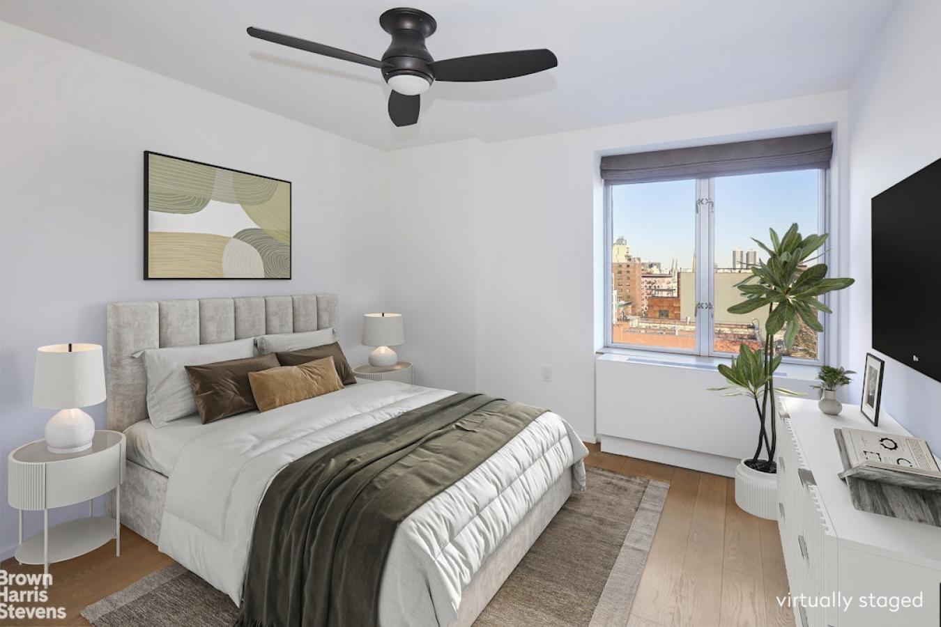 Welcome to apartment 9F at the premier condominium, 10 West End Avenue. This spacious and modern residence is filled with western-facing light and beautiful city views from its floor-to-ceiling windows. The open floor plan blends seamlessly from living to dining and will wow you at every turn. The chefs kitchen is equipped for serious cooking, featuring a 36" Sub-Zero refrigerator, a Viking range with a convection oven, a Bosch dishwasher, and a U-Line wine chiller. Premium finishes include black granite countertops, a Veneto glass backsplash, and custom wood cabinets with glass-front doors. The bedroom is generously scaled, with western exposure, open city views, and a large walk-in closet. The marble-appointed bathroom offers a 21" deep soaking tub and an upgraded mist-ring shower system. Throughout the home youll find Italian-imported Pianeta Legno Aformosia hardwood floors. Additional conveniences include an in-unit Bosch washer and dryer, excellent closet space, and central air. 10 West End is a true white-glove condominium. The building has just completed a top-of-the-line renovation to the fitness center as well as the 50-foot glass-enclosed pool. Residents enjoy a 24-hour doorman, concierge, and live-in superintendent. There is a childrens playroom created by the Childrens Museum of Manhattan, three different types of storage (regular, bike & cold), on-site dry-cleaning drop-off, as well as a valet-service garage. Note: some photos were virtually staged